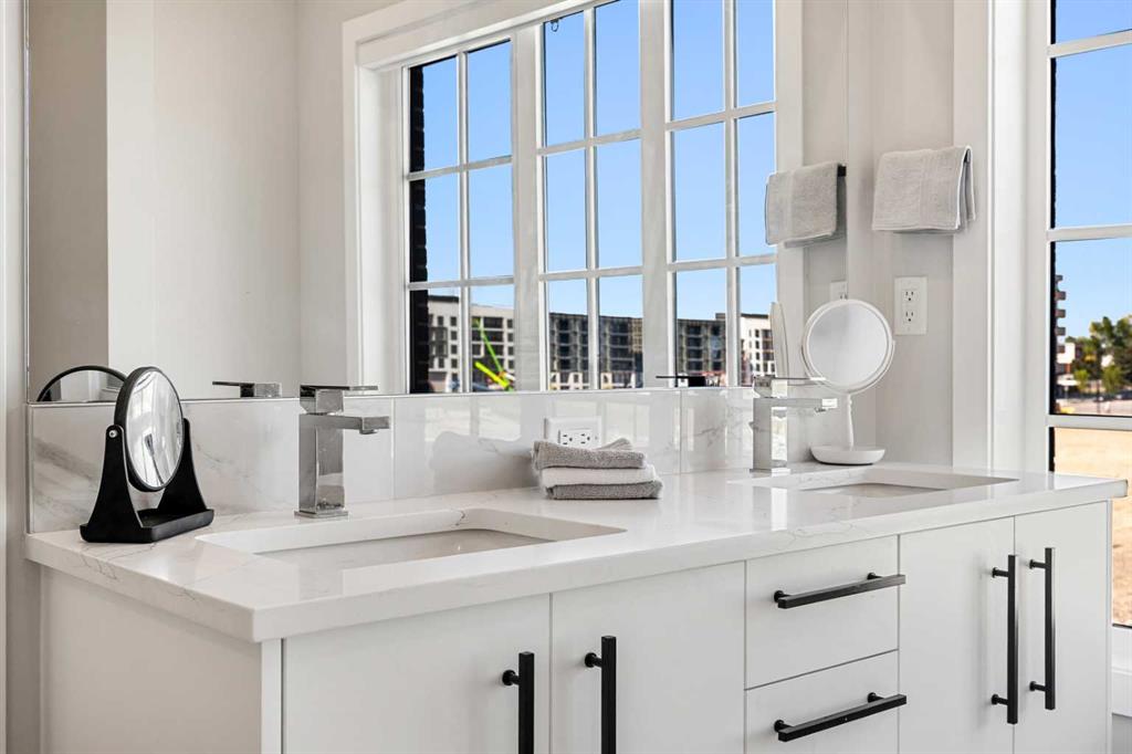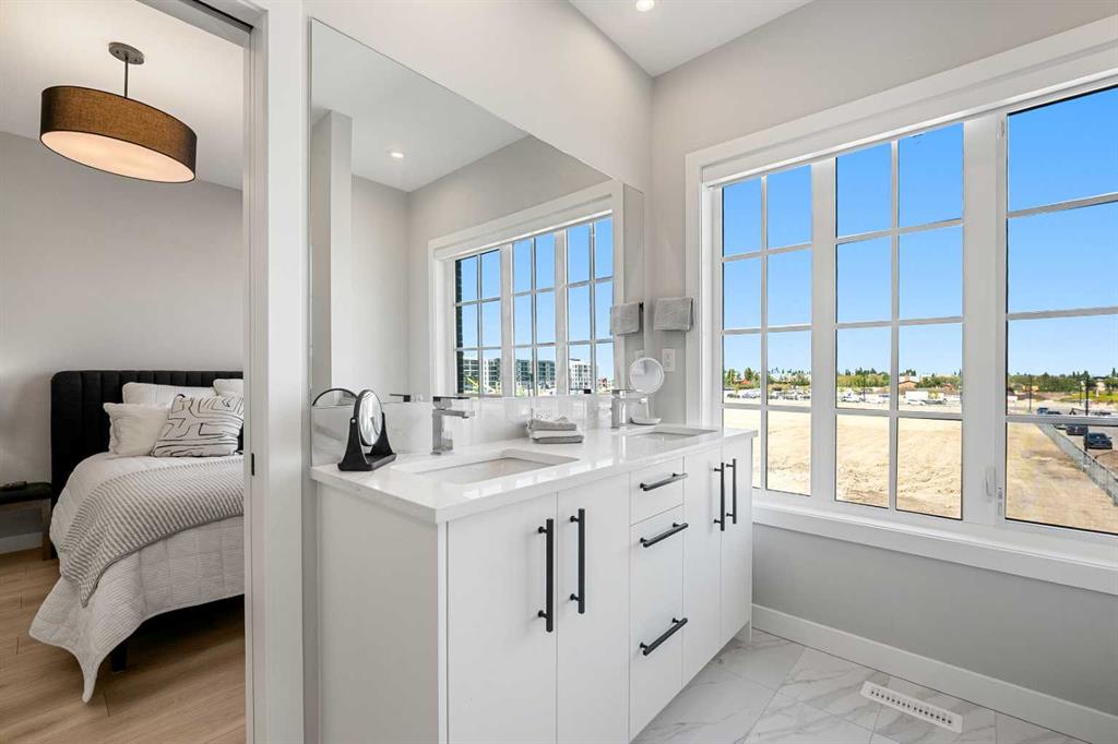 Upstairs, discover TWO SPACIOUS DUAL PRIMARY BEDROOMS, each complete with its own PRIVATE ENSUITE for ULTIMATE COMFORT AND PRIVACY. The PRIMARY SUITE is a true sanctuary, showcasing LARGE WINDOWS and a SPA-INSPIRED FIVE-PIECE ENSUITE featuring a DEEP SOAKING TUB, DUAL VANITIES, and a GLASS-ENCLOSED 10M SHOWER.