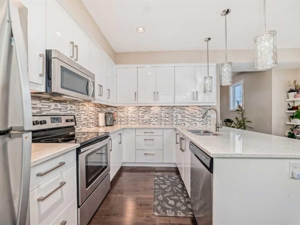 District Towns by TRUMAN – Experience upscale living in this stunning 3-Bedroom Townhome, ideally located in the growing and vibrant West District. Surrounded by parks, pathways, and premium shopping, this dynamic neighborhood offers both convenience and community. This beautifully crafted residence features 3 spacious Bedrooms, 2.5 luxurious Bathrooms, and an attached Double Heated Garage. On the main floor, you’ll find a versatile Flex Room perfect for a home office. Inside, elegant finishes abound, including sleek wide plank flooring and soaring ceilings that enhance the open-concept design. The Kitchen is a culinary masterpiece with Full-Height Cabinetry, Soft-Close Doors, Gas Range, Fridge, Built in Microwave, and a convenient Pantry. The large Eat-Up Bar, accented with Quartz countertops, is ideal for casual dining or entertaining guests. The Primary Suite is a private oasis, boasting a generous walk-in closet and a 3-piece Ensuite. The upper floor also includes two additional Bedrooms, a stylish 4-piece Main Bathroom, and the convenience of an upper-floor laundry. Bright, airy, and move-in ready, District Towns offer a sophisticated lifestyle where you can truly live better. Don’t miss your chance to own this remarkable home! Photo Gallery of Similar Home*