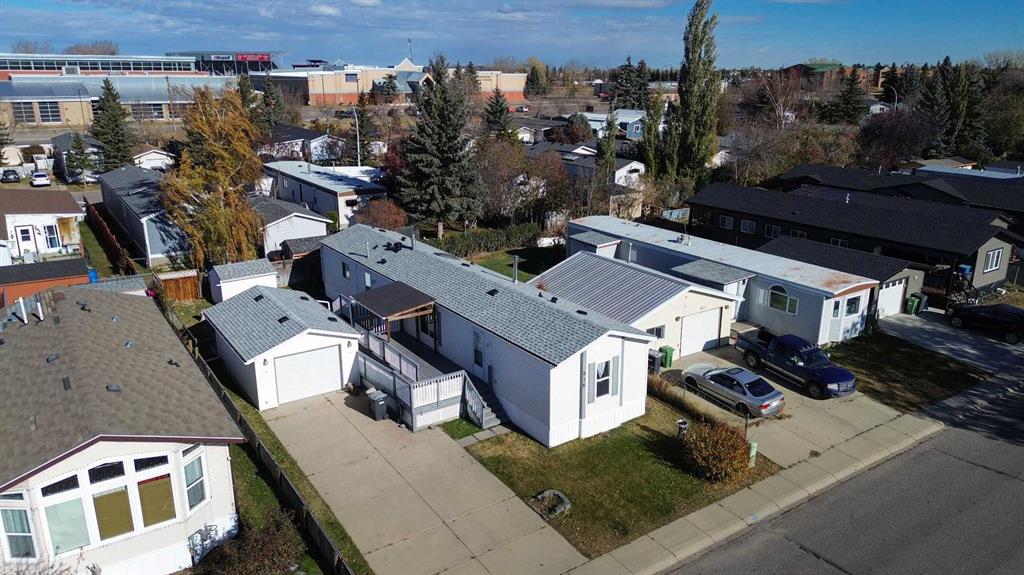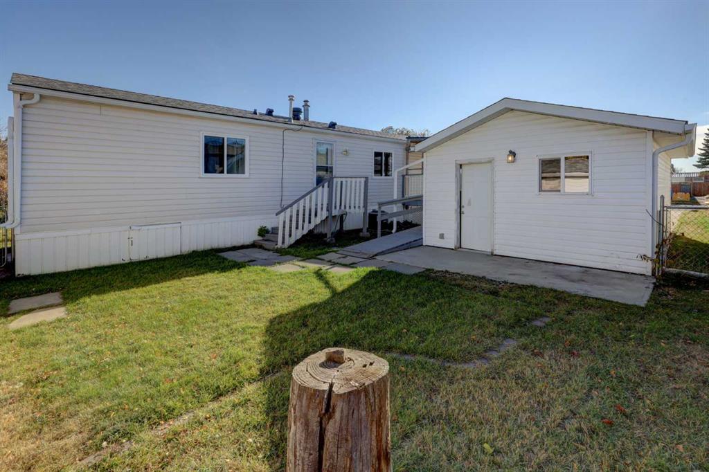 What a fantastic opportunity to own your own home on your own TITLED LOT with a detached garage! Situated on 43×100 FT lot within walking distance to schools and recreation facilities, this 3 bedroom 2 bathroom home is waiting for you! There is 1178 sf of living space in this 2000 Moduline featuring an open concept floorplan. The kitchen has upgraded granite countertops and all appliances are included, even the washer and dryer. The home has beautiful large windows facing West keeping your space bright with all the natural light. In summers you have the luxury of central air to keep you cool! The property has been fitted for a wood stove if you prefer using it as a means of heat in the winter months. The primary bedroom is large enough to accommodate a king bedroom suite and there is a full en suite. There is a second full bathroom adjacent to the second and third bedrooms. If you prefer spending more of your time outdoors, perhaps the covered deck has caught your eye. The yard has inground sprinklers and room for a garden or space to throw around the ball (Baseball fever right now). The detached garage can be used for parking or a shop for hobbies, as there is additional room on the paved parking pad for 2 vehicles. This home is available for a quick possession. I have included the floorplan in the photos for your convenience. NOTE: The shingles on home and garage new as in 2025. Call your Realtor® to book a showing for this property and move in before its officially winter!