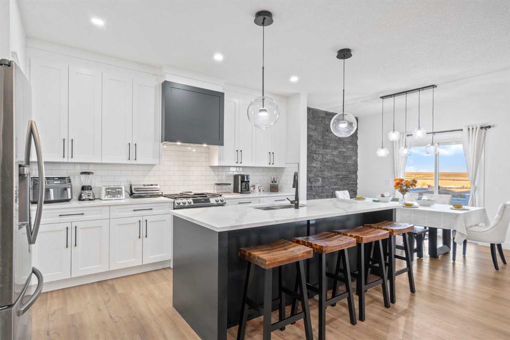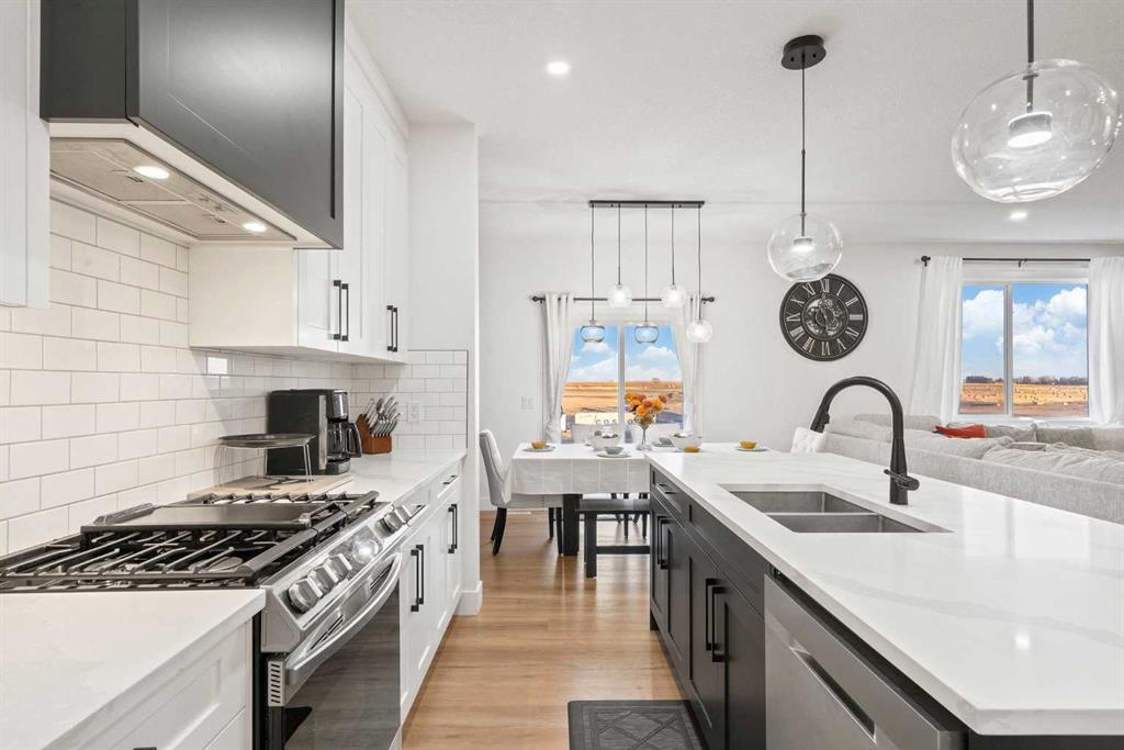 This beautifully designed two-storey home delivers the perfect mix of contemporary style and everyday practicality. The open-concept main level is bright and welcoming, anchored by a crisp white kitchen with quartz countertops, streamlined cabinetry, and a large island that’s perfect for casual dining or entertaining. The adjoining eating nook seamlessly connects to the cozy living area, highlighted by a sleek electric fireplace. A versatile main floor flex room offers endless possibilities — ideal as a home office, formal dining space, or playroom. Upstairs, you’ll find four generously sized bedrooms, including a spacious primary retreat featuring a walk-in closet and a spa-inspired 5-piece ensuite. A central bonus room creates the perfect hangout for movie nights or quiet relaxation, while the upper-level laundry room with sink adds everyday convenience. The fully developed basement offers even more flexibility with a separate entrance and an illegal suite complete with its own kitchen, bedroom, 3-piece bath, laundry, and large recreation area — ideal for extended family, guests, or a home-based business setup. Outside, the sunny backyard is ready for summer enjoyment with a deck and swimming pool — and the pool can remain for the new owners to enjoy. With its thoughtful layout, income potential, and modern finishes throughout, this home offers exceptional value and versatility.