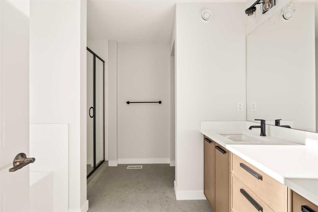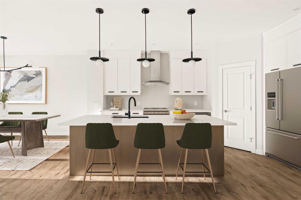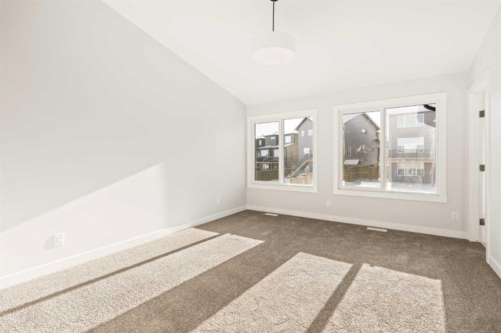 This Farmhouse elevation Robson 24 built by Brookfield Residential is a stunning brand new home in the heart of Livingston. Featuring 2 living areas, 3 bedrooms, 3 bathrooms and a home office / flex space on the main level that could be a 4th bedroom, this home has plenty of living space for a growing family + an undeveloped basement that awaits your imagination with ample space for a second living area, fourth bedroom and full bathroom. The home has a grand foyer with a front office space that could also be used for a children’s play space, reading room or 4th bedroom – with a full bathroom located just outside the space. The centre of the main floor features a stunning spiral staircase that leads to the second level – offering unique design features rarely seen in a home of this size. The gourmet kitchen includes a built-in range hood and lower built-in microwave and is complete with a large corner pantry providing endless storage for those that like to cook and entertain. The timeless kitchen has white cabinets with a warm wood accent island and it overlooks both the living and dining areas – making this the perfect space to host guests. A wall of south-facing windows in both the living and dining rooms allow for natural light to pour through the space all day long. The main floor has a full bathroom and is complete with 9′ ceilings creating a more open space. The spiral staircase leads to the second level where you’ll find a central bonus room that separates the primary suite from the secondary bedrooms. The primary suite has vaulted ceilings and is complete with a 5 pc en suite including dual sinks, walk-in shower, and a soaker tub with window for added natural light – in addition to its incredibly large walk-in closet. Two more bedrooms, a full bathroom and a laundry room complete the second level. The basement is undeveloped and awaits the new owner’s imagination – complete with bathroom rough-ins in place. Completing this home is a large and private south-facing backyard that provides optimal natural light and sunshine, both inside and outside, all year long. The 23′ wide deep double attached garage is the perfect space to keep your vehicle and valuables safe all year long. Builder new home warranty & Alberta New Home Warranty are included with the purchase of this brand new home. Located in desirable Livingston, with an incredible HOA, this property is fully move-in ready and perfect for a growing family.