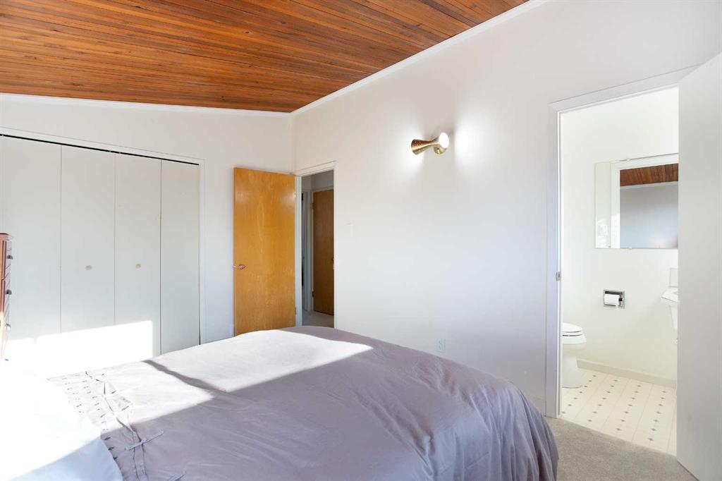Amazing midcentury modern 4 level split home in family friendly Southwood in SW Calgary! This home has only had 2 owners. This 4 bedroom, 1 full bath, 2 half bath home comes with a double detached garage and the basement has a separate entrance leaving room for many possibilities. The upper level has 3 bedrooms, including the primary bedroom with a 2 piece ensuite. Upper level also features a 4 piece bathroom. The main floor features a kitchen with a breakfast knock, a living room overlooking the front yard and a formal dining room, as well as hardwood floors. The vaulted ceiling with exposed beams is an exquisite touch. Down from the main level you will find another bedroom and a 2 piece bathroom as well as a second living room. The basement level features the laundry as well as a rec room and storage room. The double detached garage has a natural gas heater. The many upgrades include: New washer/dryer 2023, furnace and duct cleaning 2024, main and upper levels painted in 2024, new upper level carpet 2025, main and upper level new closet doors, shelving crown mouldings and baseboards 2025. Come see this classic gem while you can!