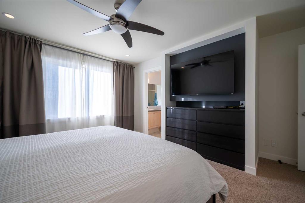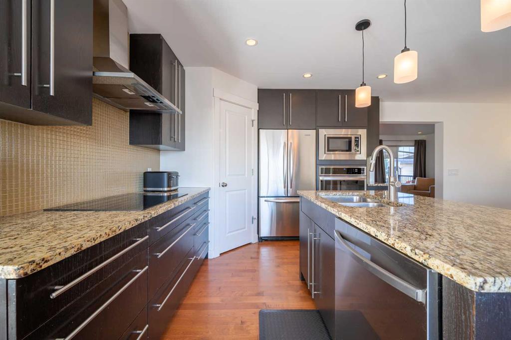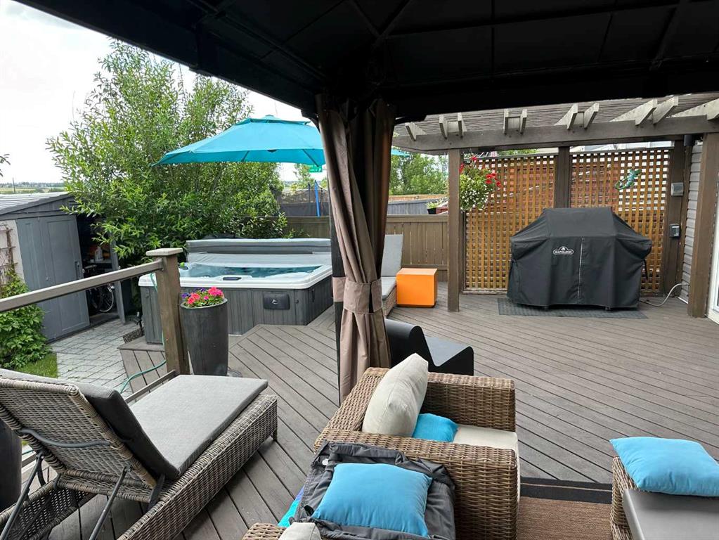 Welcome to this stunning family home in the highly desirable community of Lake Chaparral. Offering over 2,000 sq. ft. of beautifully updated living space, this property showcases a bright, modern open floor plan centered around an upgraded kitchen with a pantry, granite countertops, a large island, and clear sightlines into the cozy family room featuring a natural gas fireplace. A versatile main-floor flex room provides the ideal space for a home office or den. Upstairs, you’ll find three generous bedrooms, an oversized bonus room that can easily function as a fourth bedroom, a convenient upper-level laundry room, and a fully renovated 4-piece bathroom complete with modern fixtures, impressive tile work, heated floors, and a floating vanity. The spacious primary suite includes a walk-in closet and a luxurious 5-piece ensuite. Step outside to an exceptional backyard designed for both relaxation and entertaining. Enjoy multiple outdoor living spaces, including a large deck, BBQ area with natural gas hookups, a hot tub, and unbeatable southwest exposure offering beautiful mountain views. This home is loaded with upgrades: flat ceilings, fresh paint throughout, pot lights, air conditioning, a sprinkler system, aggregate driveway, powered storage shed, newer roof (2 years old), hardwood flooring, and several updated windows and patio doors. Located within walking distance to playgrounds, sports fields, and a school, this is the perfect family home in an unbeatable location.