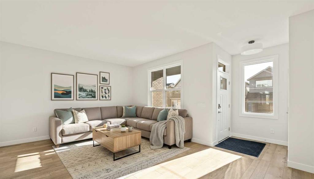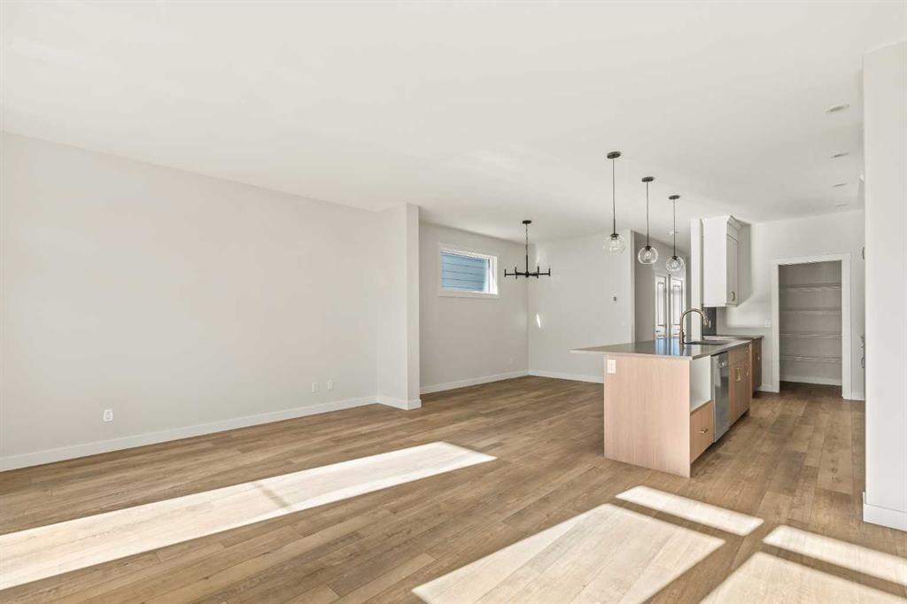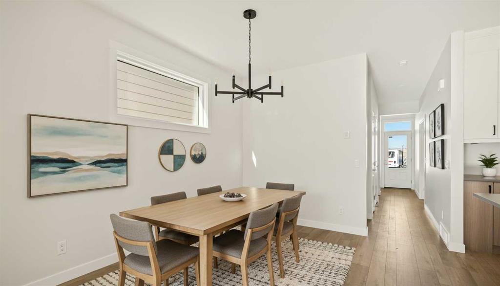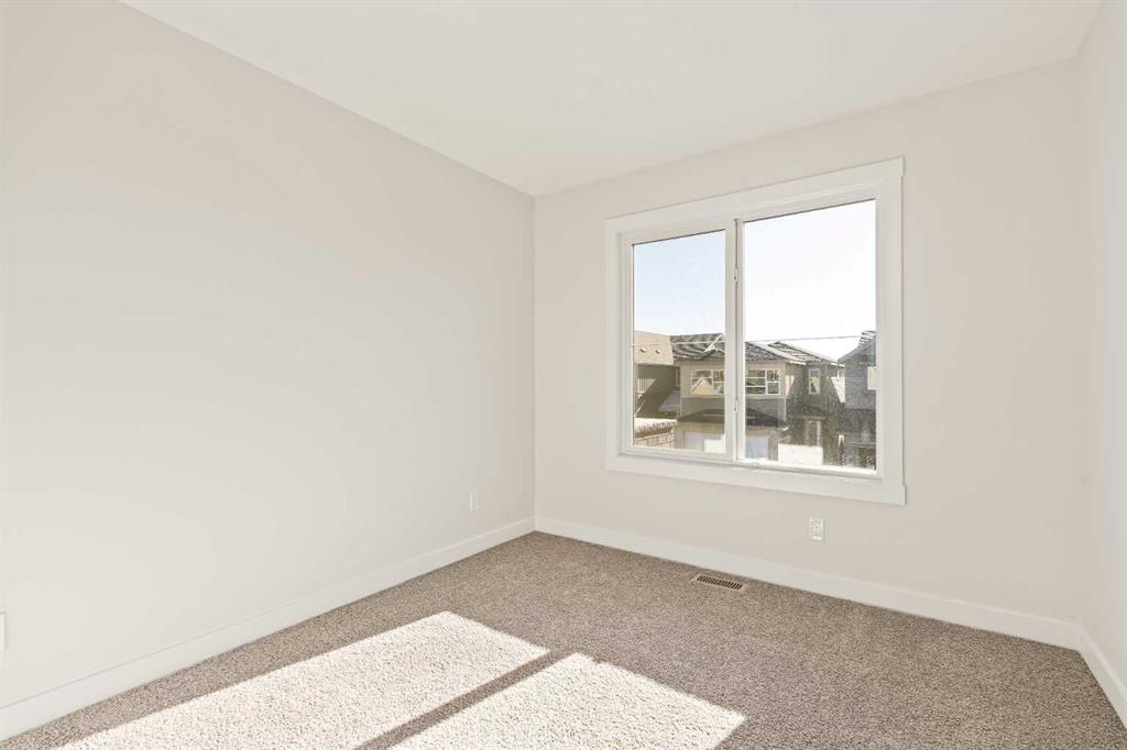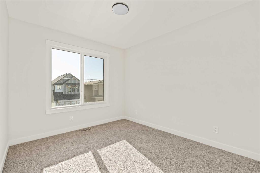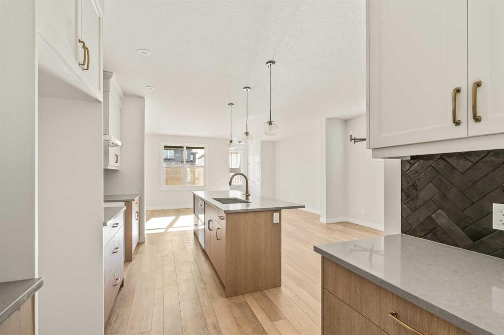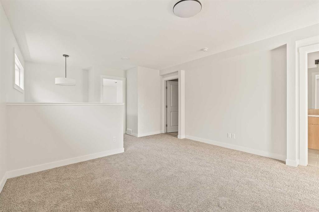 This brand new home, the ‘Oxford’, is an incredible opportunity in the desirable new community of Rockland Park and ready for immediate possesion! This home is situated on a bright and sunny lot with a southeast facing front yard – allowing natural light to pour through the main level all day long while offering west sun in the backyard during the evening. Featuring 3 bedrooms, 2.5 bathrooms and two living spaces + a home office / flex space and an undeveloped basement with a private side entrance, this property is perfect for investors, multi-generational living or those that want a large family home with space to grow! Built by Brookfield Residential, the Oxford is a stunning home boasting nearly 2,000 square ft. of living space. This open concept main floor has 9 ft. ceilings and extended height cabinets and a large island with a gourmet kitchen package including chimney hood fan, built-in microwave and gas range. The main floor features a large great room with plenty of natural light and a main floor flex space with double doors for added privacy – making it perfect for a work-from-home space! Luxurious and resilient LVP and tile flooring flow throughout the main level, making it perfect for those with children and pets. The upper level features a central bonus room that separates the primary bedroom from secondary rooms. Enjoy the luxury of this large primary suite that spans nearly 13’x13′ and is complete with a beautiful ensuite bathroom with dual sinks and a walk-in shower. Two more bedrooms, a full bathroom and a laundry room complete the second level. The basement has direct access via a side entrance and is undeveloped but includes 9′ foundation walls and rough-ins for a future suite (subject to City of Calgary approval)! Completing the home is a rear BBQ gas line for daily convenience and a double gravel parking pad with ample space to accommodate a garage if desired in the future. This home is brand new and comes with builder warranty + Alberta New Home Warranty!