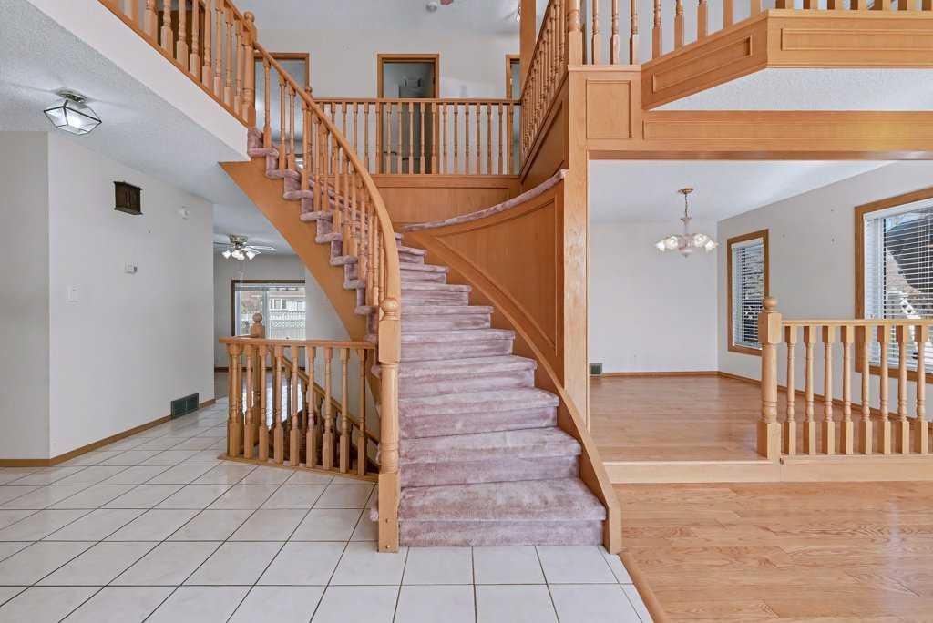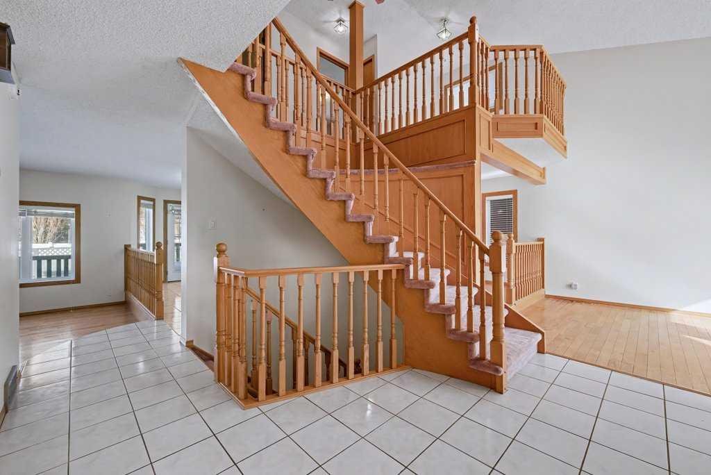 This Executive Home with 4 Bedrooms Up and 3 Bathrooms…is steps from the school! The home is perfect for a larger family needing extra space! The open living-dining room concept features vaulted ceilings to maximize light/space and the grand curved staircase offers such a magnificent “executive” feel to this large home! The kitchen is spacious and opens to the eat-in nook and adjacent great room with fireplace and bar area. The upper level showcases a loft area – perfect for a home office or homework area. With 4 bedrooms up, this home offers space that not all other homes can offer. The master suite is grand in style, with its “spa-like” ensuite bathroom, including a jetted tub and stand-up shower. Main level laundry room. Newer windows throughout. The lower level has 2 furnaces and also has “PEX” plumbing – no poly B! The large yard offers much opportunity for kids to play.