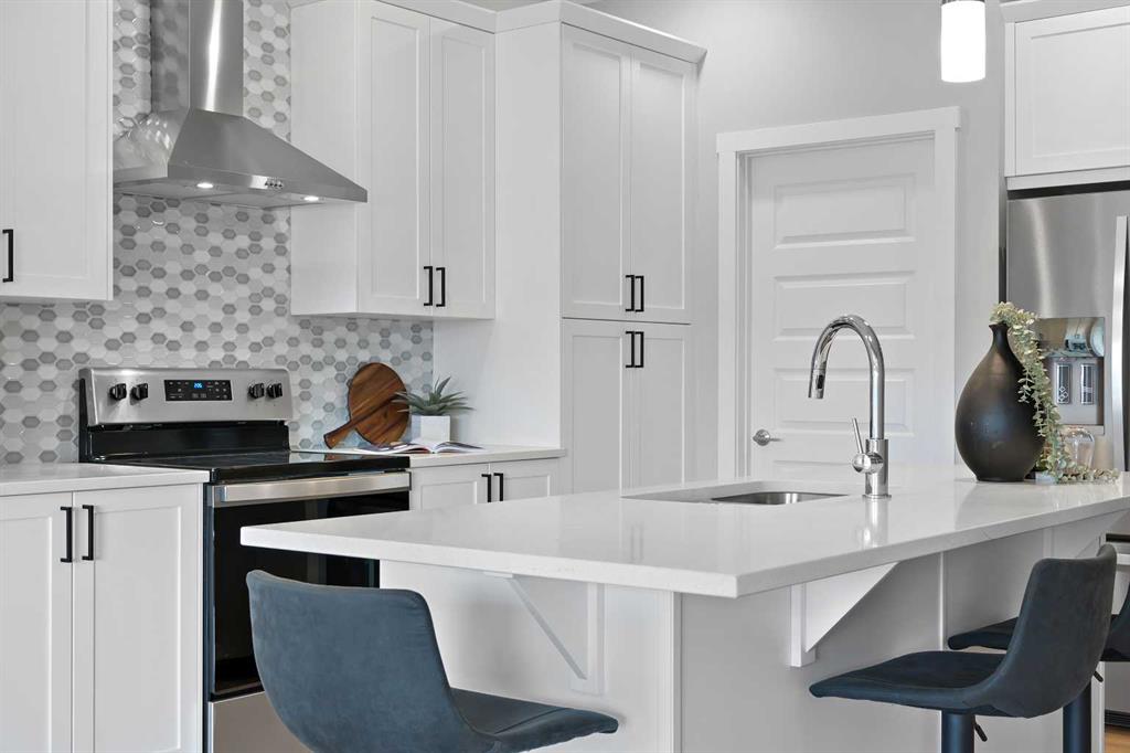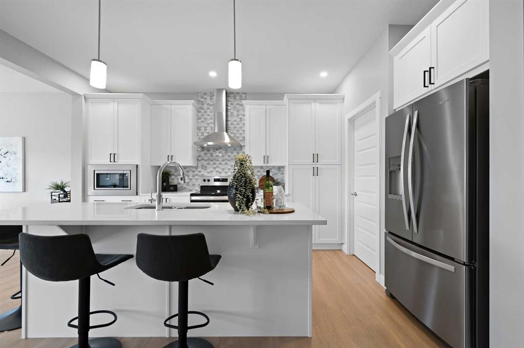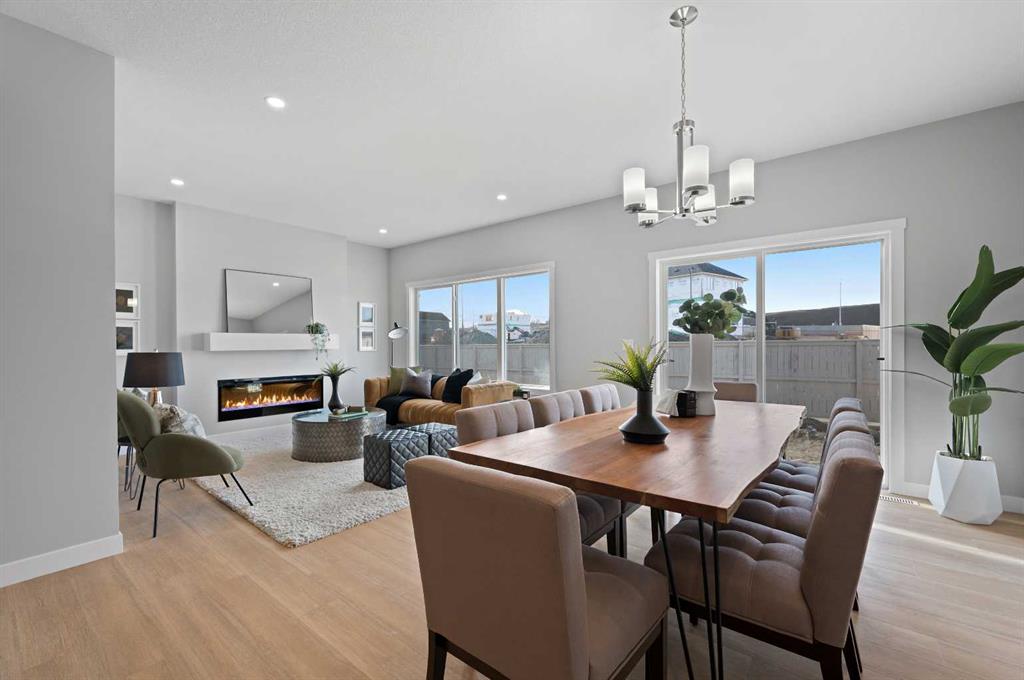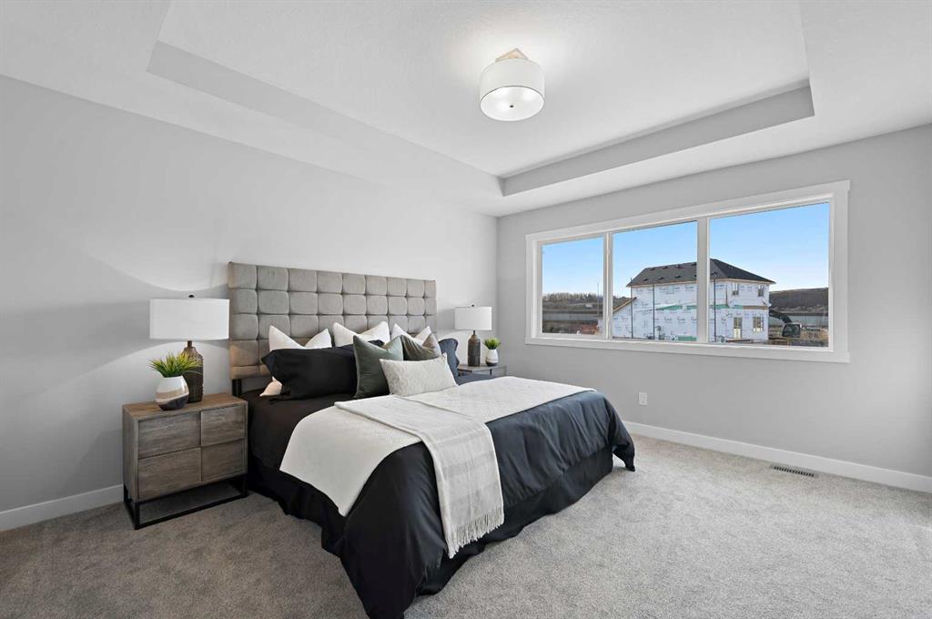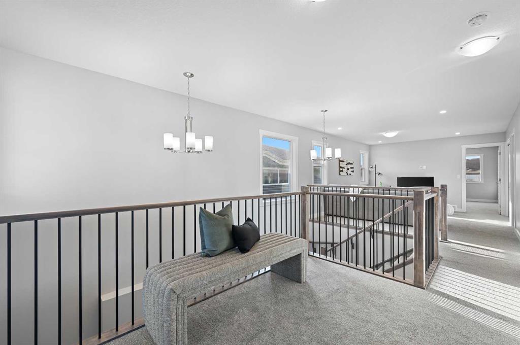 Situated in the community of Bayside, the “Mateo ll” is a thoughtfully designed home with over 2500 sq ft above grade and offers an often hard-to-find four bedrooms on the upper level. The main floor features an open-concept living space with a chef-inspired kitchen, a functional island for prep or entertaining, sleek stainless-steel appliances, and beautiful cabinetry. Not only does this home have 4 bedrooms upstairs, but it also offers a main-floor office. With this home, there is no sacrificing space. The open-concept living space is perfect for entertaining, with ample room for family dinners in the dining room and for relaxing in the living room, which features a striking focal-point fireplace. Complementing the main floor is a mudroom off the garage, which helps keep all the odds and ends organized, and a powder room nicely tucked away. Venturing upstairs, you will notice the open-to-above foyer, which adds a touch of sophistication to the home. A nice-sized loft greets you at the top of the stairs, and the primary suite offers amicable separation from the other three bedrooms, all of which have walk-in closets. The sizeable primary bedroom provides plenty of space for a king-size suite, and the spa-like ensuite offers dual sinks, a soaker tub, a separate shower, and a huge walk-in closet. Completing the upper level is a 3-piece bathroom with a tub, which makes kids’ bathtime a breeze and an upper laundry for convenience. The basement is unfinished and has a separate side entrance, 9′ ceilings, and is laid out well for future development. Bayside is one of Airdrie’s most desirable communities, known for its scenic canal system and year-round outdoor lifestyle. Residents enjoy walking paths, parks, and activities like paddle boarding in the summer and skating in the winter. With close access to schools, shopping, and everyday amenities, Bayside offers the perfect balance of nature, convenience, and community living. *PHOTOS ARE OF A PREVIOUSLY BUILT MODEL. Colours will vary. RMS has been applied to construction drawings provided by the builder. Taxes to be assessed.