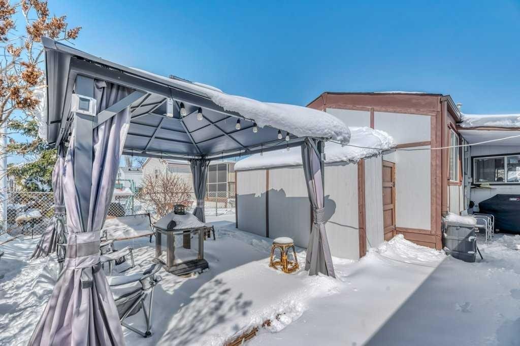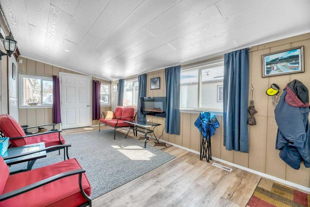 Looking for an AFFORDABLE home where you OWN the land — no pad rent? This beautifully updated manufactured home offers incredible value, space, and functionality, complete with an OVERSIZED HEATED GARAGE + WORKSHOP. This bright, spacious, open-concept home has been extensively updated and is truly move-in ready. The large living room offers plenty of space for everyday living and entertaining, with flexibility to accommodate bigger gatherings. The kitchen has been refreshed with new cupboards, stainless appliances (2020), and two solar tubes that flood the space with natural light. With the large primary bedroom and full bath on one end, and the other 2 bedrooms and bath on the other end, there is lots of privacy. Enjoy the ease of single-level living, with thoughtful upgrades throughout such as new flooring, paneling, baseboards, and new PEX plumbing throughout. Major mechanical upgrades include a new furnace and central air conditioning (2020), hot water tank (2023), shingles and eavestroughs (2021) and hardie board siding (2024). A standout feature is the oversized heated garage, wired for 220V, and connected to the home via a covered walkway leading into a heated sunroom/entryway complete with an electric fireplace — a perfect transition space year-round. There’s also a gas BBQ hookup for easy outdoor entertaining. Bright, updated and packed with value — this one you don’t want to miss.