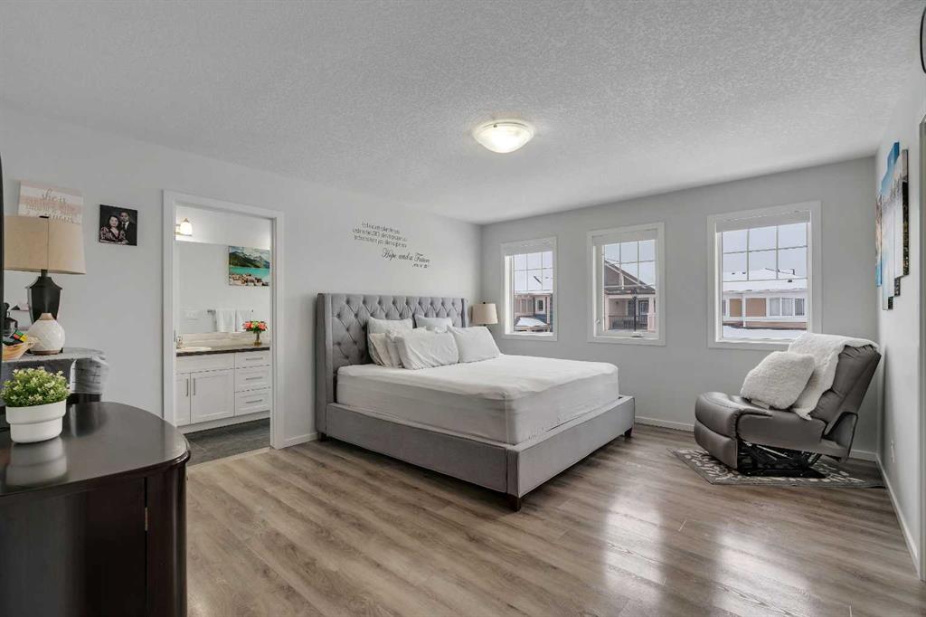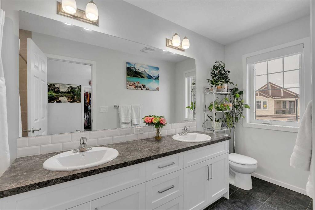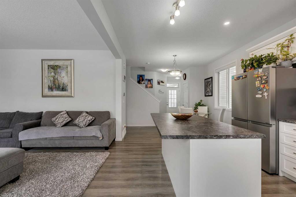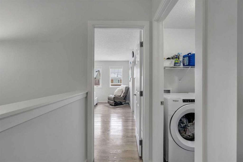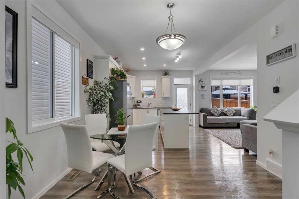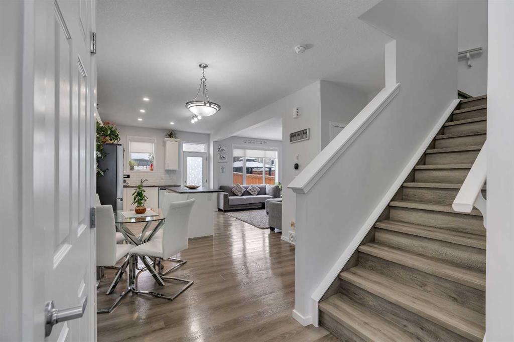 Welcome to 821 Windrow Green SW, a beautifully designed home offering modern finishes, generous living space, and exceptional functionality for today’s lifestyle. Situated on a quiet street with charming curb appeal, this home features a sun-filled south-facing backyard with upgraded landscaping, perfect for relaxing or entertaining. Step inside to an open-concept main floor designed for both everyday living and hosting guests. The stunning kitchen showcases crisp white cabinetry, stainless steel appliances, a classic white subway tile backsplash, and abundant counter space, along with a large center island with eating bar—ideal for casual meals or gathering with family and friends. The bright living room is filled with natural light from the large south-facing windows overlooking the backyard, creating a warm and inviting atmosphere. The main floor is completed with a convenient powder room, additional closet storage, and direct access to the double attached garage. Upstairs, the thoughtful layout provides privacy and comfort with a spacious bonus room separating the primary suite from the two secondary bedrooms. The expansive primary retreat features a large walk-in closet with ample shelving and hanging space, along with a luxurious 5-piece ensuite complete with dual sinks, generous counter space, and a deep soaker tub. An upper-floor laundry room adds to everyday convenience. Throughout the home you’ll appreciate hard surface flooring—including the stairs and upper level—modern vinyl plank flooring, knockdown ceilings, and transom windows above exterior doors for added natural light. Room sizes are generous, offering comfortable living for families of all sizes. Additional highlights include an oversized hot water tank ideal for larger families and partial basement development featuring a fourth bedroom, providing flexibility for guests, a home office, or growing families.