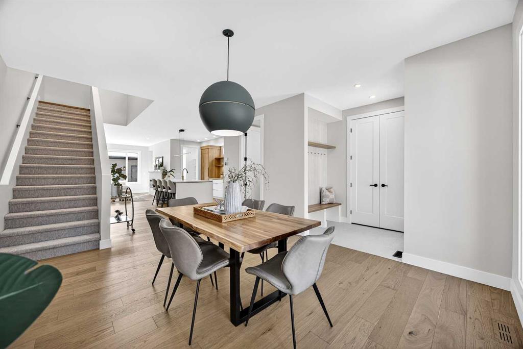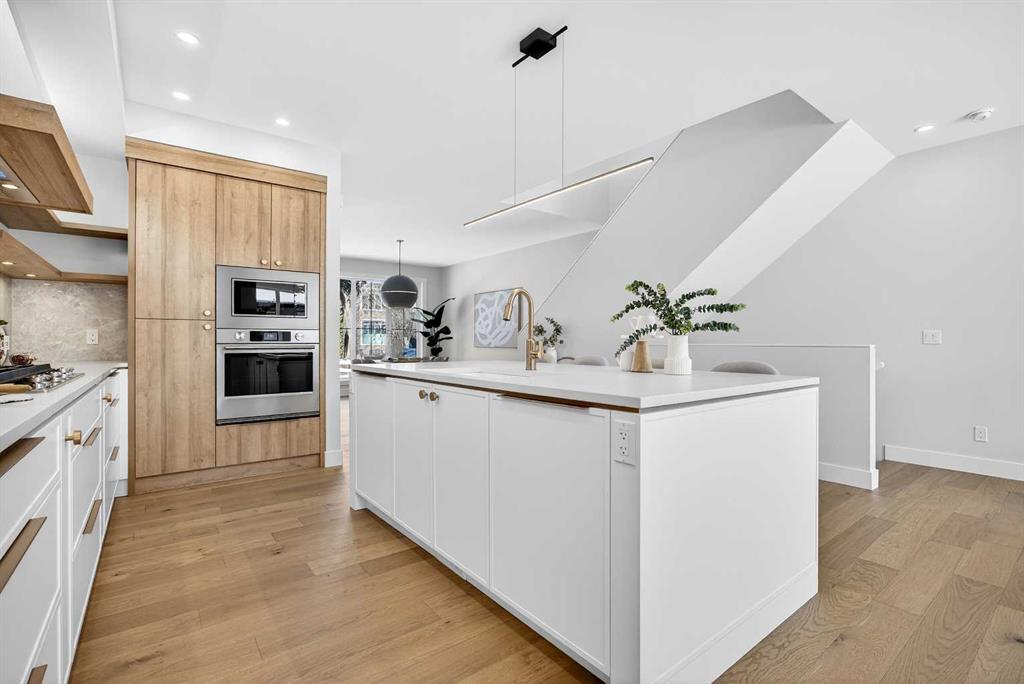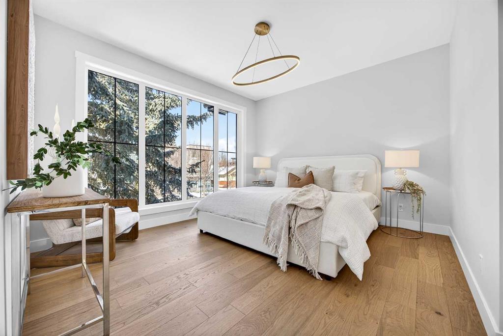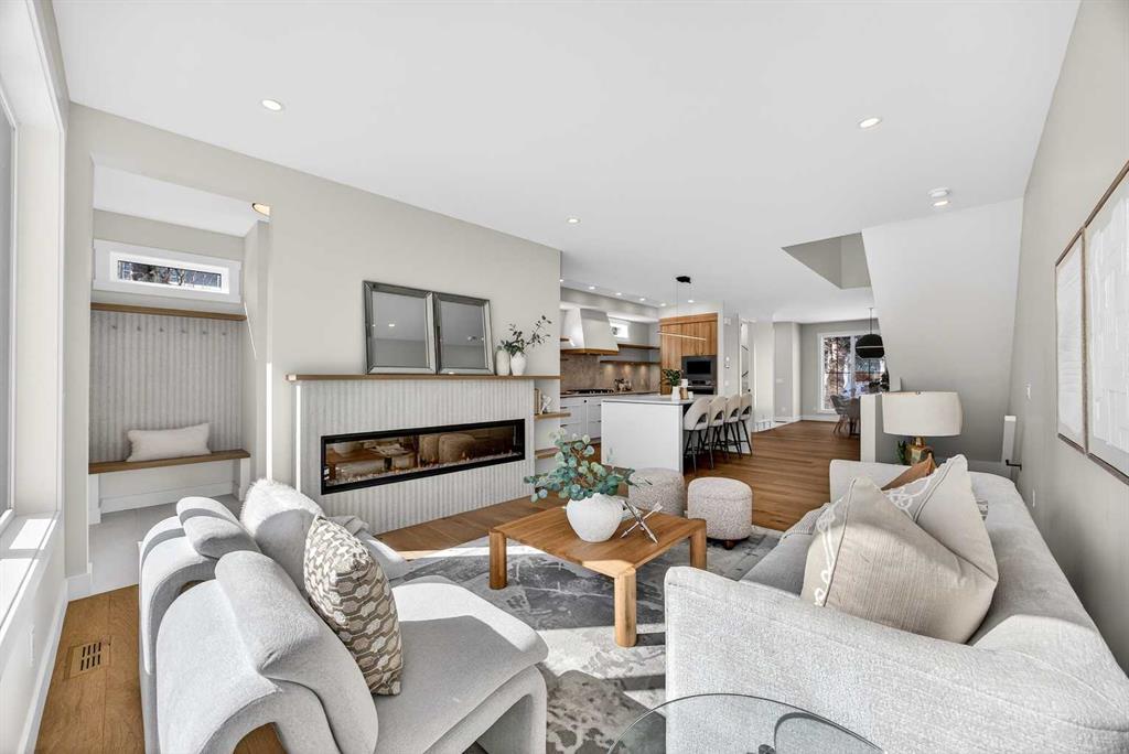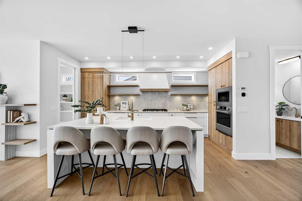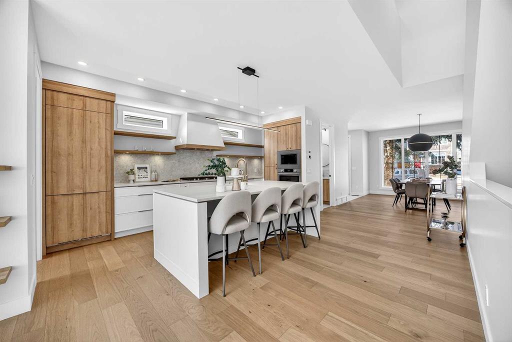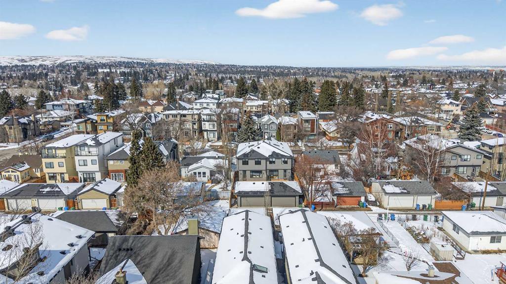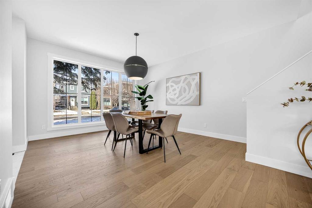 Set on a beautiful tree-lined street, this newly constructed home blends modern design with a thoughtful connection to the outdoors—and is just steps to Confederation Park’s green spaces and pathway system. Fully Developed and offering 2,900+ square feet of total space, this home offers exceptional style and functionality. Designed with the family in mind. Hardwood floors, 9’ Ceilings and large windows span the spacious Main Floor living areas flooding it with natural light. The Front Entry is inviting with built-in Bench and large Closet. The Dining Room offers an exceptional space for hosting and gathering with ease. The Kitchen offers Custom Cabinetry with wood & gold accents, open shelving, large Centre Island with Honed Quartz Countertops, Undermount Silgranit Sink, built-in Garbage and Recycling Drawer, and Appliances to include an Integrated Panel Front Refrigerator & Dishwasher, built-in Microwave, Wall Oven, and Gas Cooktop surrounded by custom Spice Rack & Utensil Storage. A Walk-Through Pantry provides food & baking storage with direct access to the Back Entry, with additional Closet & built-in Bench. Step onto the expansive, sunny South facing Back Deck spacious enough for added outdoor Living & Dining, with Gas BBQ hook-up & yard to play. Fenced & landscaped with grass, rock, and a concrete walkway leading to the Detached Double Garage. A 6’ Linear Fireplace in the Living Room with mantel & open shelving offers an inviting space to relax in conversation or watch the game. A Powder Room completes this level. Ascend to the Upper Floor where a light-filled Landing and built-in Workspace is framed by 9’ Ceilings and Hardwood Floors throughout. The Primary Suite is a true retreat, showcasing a Walk-In Closet and 5 Piece En-Suite with floating cabinetry, gorgeous Shower with custom Bench seating and a freestanding Soaker Tub, for a true spa-like experience at home. The wide Hallway leads back to Bedrooms 2 & 3. All Closets have built-in shelving. Venture downstairs to the Fully Developed Basement, also with 9′ Ceilings, to find a large REC/Family Room, completely outfitted Storage Room, Bedroom 4, another Full Bathroom & Utility Room offering even more Storage space. Air Conditioning included. Garage is insulated, drywalled & painted. Mount Pleasant is consistently recognized as one of Calgary’s most desirable inner-city communities, known for its blend of modern infills and charming homes. Attracting urban buyers with its tree-lined streets and strong sense of community, residents enjoy convenient access to local amenities like the North Mount Pleasant Arts Centre, Confederation Park, and reputable schools, along with close proximity to Downtown. Outdoor enthusiasts will appreciate the easy access to pathways, green spaces, and recreational facilities including the Mount Pleasant Sportsplex & Outdoor Swimming Pool, while everyday essentials are just moments away. Move-in ready with New Home Warranty. Booking your showing today.