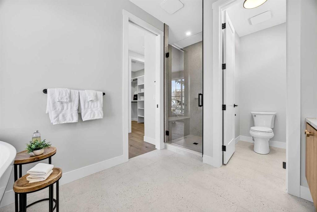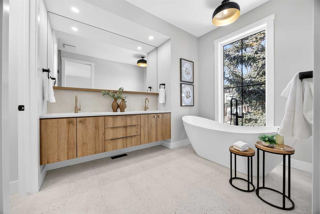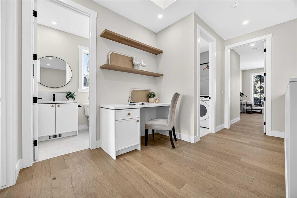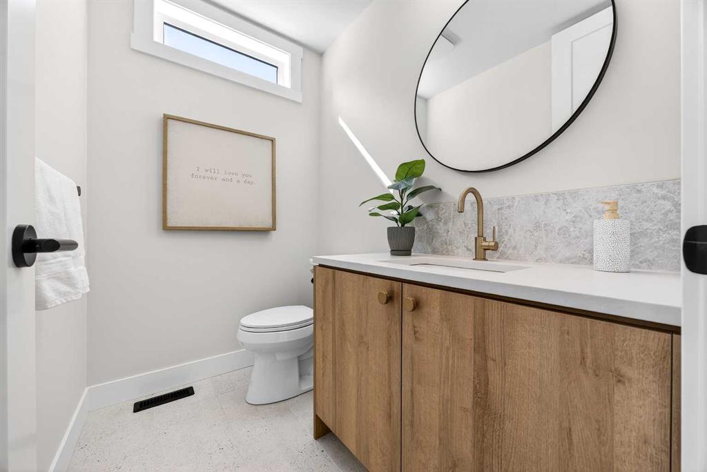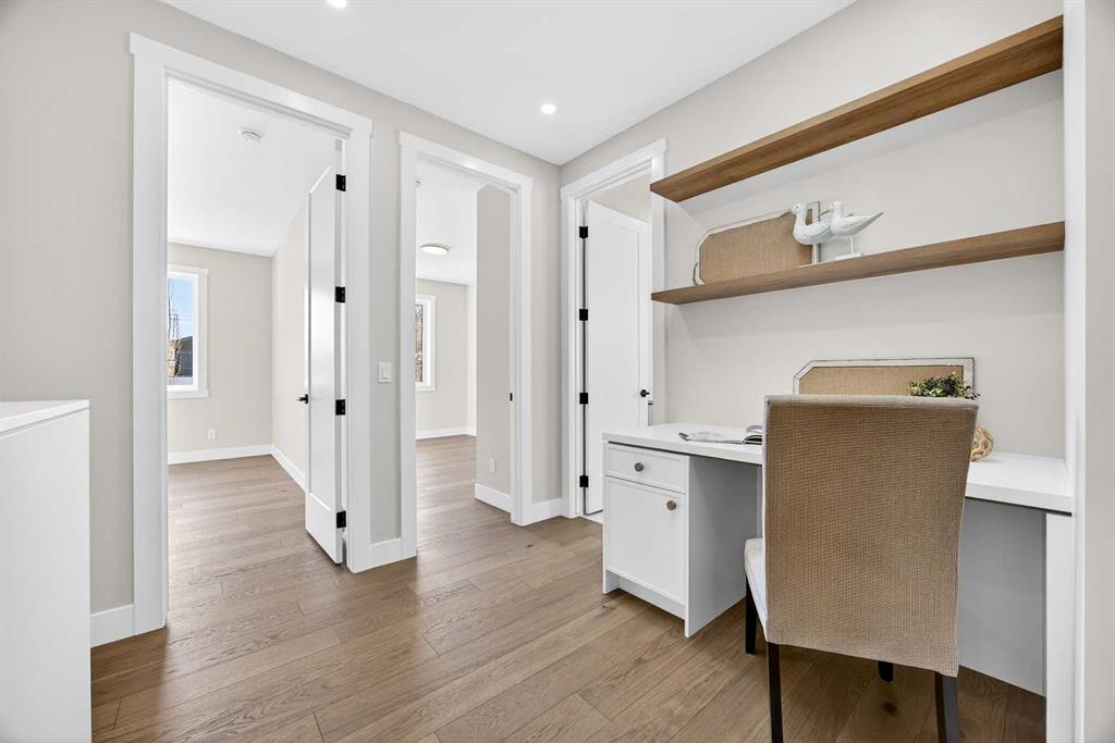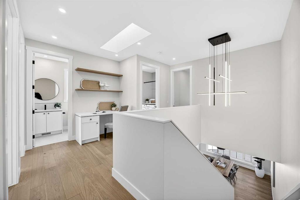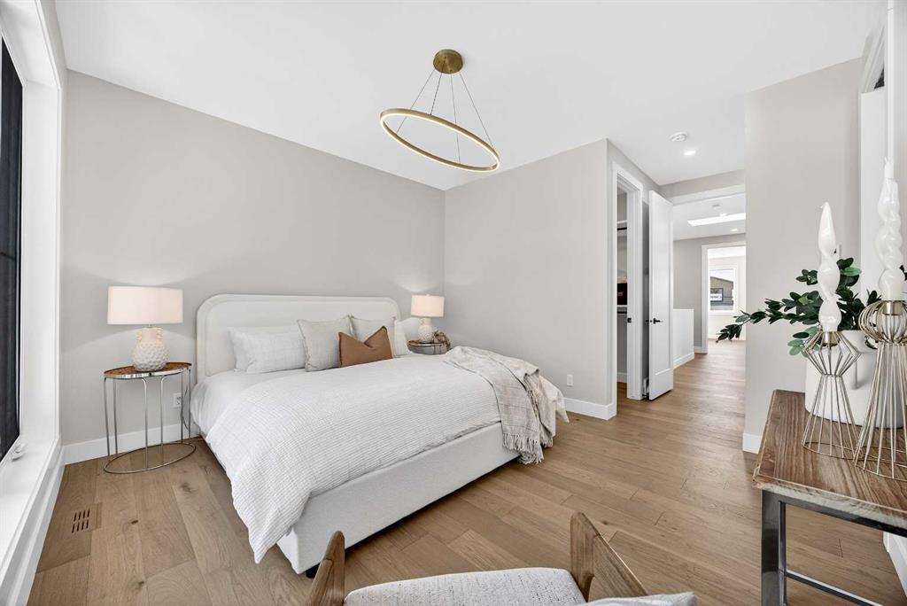 Set on a beautiful tree-lined street, this newly constructed home blends modern design with a thoughtful connection to the outdoors—and is just steps to Confederation Park’s green spaces and pathway system. Fully Developed and offering 2,900+ square feet of total space, this home offers exceptional style and functionality. Designed with the family in mind. Hardwood floors, 9’ Ceilings and large windows span the spacious Main Floor living areas flooding it with natural light. The Front Entry is inviting with built-in Bench and large Closet. The Dining Room offers an exceptional space for hosting and gathering with ease. The Kitchen offers Custom Cabinetry with wood & gold accents, open shelving, large Centre Island with Honed Quartz Countertops, Undermount Silgranit Sink, built-in Garbage and Recycling Drawer, and Appliances to include an Integrated Panel Front Refrigerator & Dishwasher, built-in Microwave, Wall Oven, and Gas Cooktop surrounded by custom Spice Rack & Utensil Storage. A Walk-Through Pantry provides food & baking storage with direct access to the Back Entry, with additional Closet & built-in Bench. Step onto the expansive, sunny South facing Back Deck spacious enough for added outdoor Living & Dining, with Gas BBQ hook-up & yard to play. Fenced & landscaped with grass, rock, and a concrete walkway leading to the Detached Double Garage. A 6’ Linear Fireplace in the Living Room with mantel & open shelving offers an inviting space to relax in conversation or watch the game. A Powder Room completes this level. Ascend to the Upper Floor where a light-filled Landing and built-in Workspace is framed by 9’ Ceilings and Hardwood Floors throughout. The Primary Suite is a true retreat, showcasing a Walk-In Closet and 5 Piece En-Suite with floating cabinetry, gorgeous Shower with custom Bench seating and a freestanding Soaker Tub, for a true spa-like experience at home. The wide Hallway leads back to Bedrooms 2 & 3. All Closets have built-in shelving. Venture downstairs to the Fully Developed Basement, also with 9′ Ceilings, to find a large REC/Family Room, completely outfitted Storage Room, Bedroom 4, another Full Bathroom & Utility Room offering even more Storage space. Air Conditioning included. Garage is insulated, drywalled & painted. Mount Pleasant is consistently recognized as one of Calgary’s most desirable inner-city communities, known for its blend of modern infills and charming homes. Attracting urban buyers with its tree-lined streets and strong sense of community, residents enjoy convenient access to local amenities like the North Mount Pleasant Arts Centre, Confederation Park, and reputable schools, along with close proximity to Downtown. Outdoor enthusiasts will appreciate the easy access to pathways, green spaces, and recreational facilities including the Mount Pleasant Sportsplex & Outdoor Swimming Pool, while everyday essentials are just moments away. Move-in ready with New Home Warranty. Booking your showing today.
