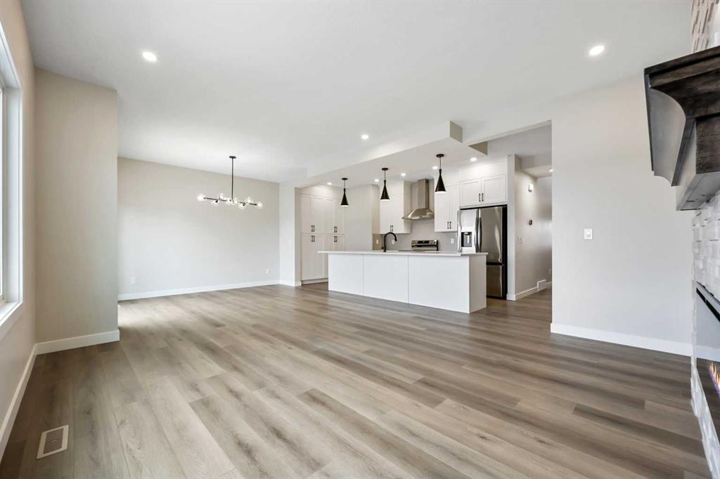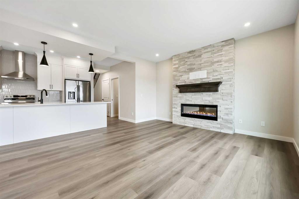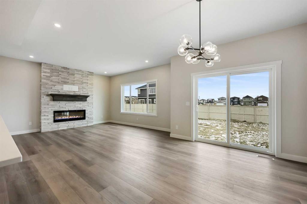 Genesis Builders presents the Primrose, a beautifully designed 2,200-plus-square-foot home offering 3 bedrooms upstairs, an additional 4th bedroom on the main floor, 3 full bathrooms, and a handy tech space! Warm tones complement the home with a stylish black hardware and lighting package. 9′ ceilings and luxury vinyl plank flooring guide you through the open-concept main floor living space. The chef’s kitchen is open to the living room and dining room, which is perfect for entertaining and offers beautifully complemented two-toned cabinetry, elegant white quartz countertops, a stylish backsplash, and an extensive kitchen island. The fourth bedroom, 4 pc bathroom, and mudroom off the double attached garage complete the main floor. Head upstairs to a spacious primary retreat with a spa-like ensuite with double sinks, a stand-alone shower, a soaker tub, and a large walk-in closet. This will be your retreat at the end of the day. The additional bedrooms are generous in size and function perfectly for the kids or guest room. This floor has a beautifully finished full guest bathroom, a laundry room, and a bonus room for the family to enjoy. The basement has access from the side entrance and is a blank canvas with upgraded 9′ ceilings. It awaits your design ideas. Situated in the desirable Bayside community, a family-friendly community that offers amenities to get you outside. You are steps from Nose Creek Elementary School, the pathways that meander the scenic canals, a brand new community playground complete with a bike park, and so much more. *Photos are of a previously build model and are representative. RMS has been applied to construction plans provided by the builder. Taxes have not been assessed.