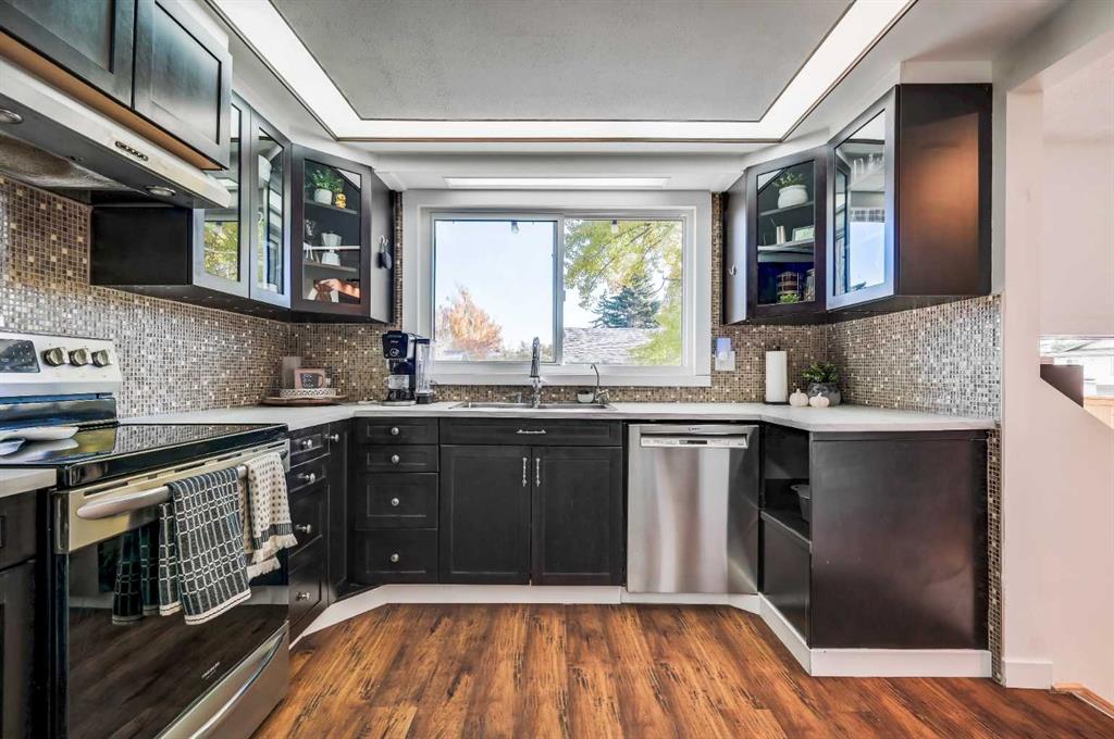 Welcome to this bright and sunny bungalow on an OVERSIZED PRIVATE BACKYARD/CORNER LOT on a tree lined street in Queensland – close to Schools, Shopping, Public Transit, Playgrounds and Parks.This home has been well cared for over the years, including a new roof (2013), attic & wall insulation (2016), windows/ siding/ doors (2016), garage door & opener (2013), hot water tank (2025), fridge (2019), stove (2021), and dishwasher (2021). The spacious 1200 sq ft main level features an updated kitchen with countertops/cupboards, tile work and newer stainless steel appliances, that is next to the sunny living room. The large master bedroom retreat has its own half bathroom while the other two bedrooms are a generous size and conveniently located next to the main floor full bathroom that has also been updated. The large sunny backyard is completed with a new fence, and has potential for RV parking, a double detached insulated garage and a massive (11’6″x7’3″) insulated storage shed. This home has prime location near both Haultain Memorial School and Wilma Hansen school, dog parks, green space, and steps to pathways and river views.