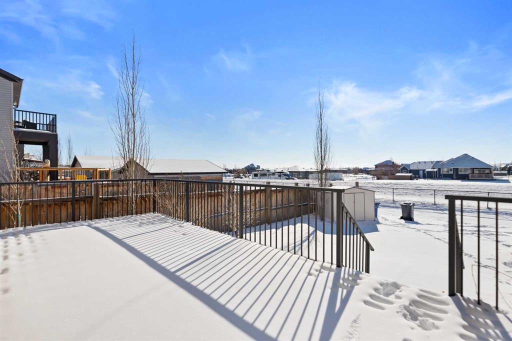 Located just 15 minutes south of Calgary in the welcoming town of Okotoks, this wonderful two-storey home sits on a desirable corner lot in the sought-after community of Drake Landing. The location offers exceptional convenience with nearby playgrounds, parks, schools, shopping, and the local golf course all just minutes away. The bright and inviting main floor features an open-concept layout designed for comfortable everyday living and entertaining. Beautiful hardwood flooring flows through the living room, dining area, and kitchen, while the living room is anchored by a cozy gas fireplace with tile surround and a classic mantle. The kitchen is filled with natural light and showcases granite countertops along with an extended counter that is perfect for breakfast seating or meal preparation. The main floor is completed with a convenient 2-piece powder room and a door leading to the ample south-facing deck that overlooks the green space of Green Haven Estates, creating a peaceful outdoor setting to relax or entertain. At the rear of the property there is a parking pad, with the option to build a garage in the future if desired. The second level features a spacious primary bedroom with large windows, a walk-in closet, and a 4-piece ensuite bathroom. A generous family room provides an excellent space for watching TV or could easily be converted into a third upstairs bedroom if needed. This level is completed with a second bedroom, another 4-piece bathroom, and a well-sized laundry room for added convenience. The developed basement adds even more living space and includes a comfortable living area with built-in cupboards and counters, a third bedroom, and a 4-piece bathroom. With its functional layout, great location, and flexible living spaces, this property is an excellent opportunity for families looking to enjoy all that Okotoks and the Drake Landing community have to offer.
