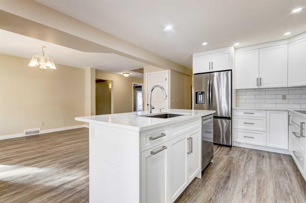 INCREDIBLE TRANSFORMATION! Welcome to this beautifully fully renovated family home including the basement(2023-2025) with over 3000 sqfeet living area located in the mature and highly desirable community of Hawkwood. This rare offering features 6 bedrooms + Den, including 5 spacious bedrooms on the upper level, making it ideal for growing families. From the moment you enter, you’ll appreciate the modern, sleek interior and thoughtful design. The main floor offers a large living room with bay window, custom built-ins, and a coffered ceiling perfect for a home office or study. The stunning white kitchen showcases a center island, quartz countertops, flat-finished ceilings, and stainless steel appliances, flowing seamlessly into the bright dining area. The cozy family room is anchored by a wood-burning fireplace with gas log lighter and enhanced by recessed mood lighting. A powder room and main-floor laundry complete this level. Upstairs, you’ll find four generously sized bedrooms, including the primary bedroom with a 4-piece ensuite and walk-in closet, plus an additional 4-piece bathroom. The fully finished basement (2024) offers exceptional flexibility, featuring a reconfigured layout, new bedroom, new kitchen, new bathroom, new flooring, and fresh paint, with its own separate entrance. The basement is currently an illegal suite with excellent potential for conversion. According to the contractor, most of the work required for a future Secondary Suite has been completed, with only an electrical panel upgrade remaining prior to City registration (Subject to City/Municipality Permitting and Approvals). This space is ideal for extended family living or future rental income. Additional upgrades include a new air conditioning system (2025), newer windows (approx. 12 years), two high-efficiency furnaces with drip humidifiers (approx. 5 years), a hot water tank(2025), and a brand-new covered deck. The front-drive, double heated garage is heated and equipped with 220V power and hot/cold water. Situated on a quiet crescent, just minutes from schools, shopping, and amenities, this newly modernized home offers outstanding value in an ideal family-friendly location. Don’t miss this exceptional opportunity—book your private showing today!