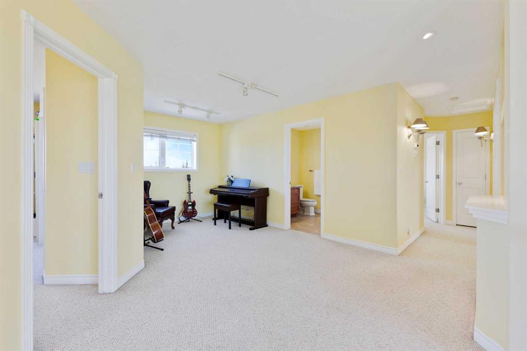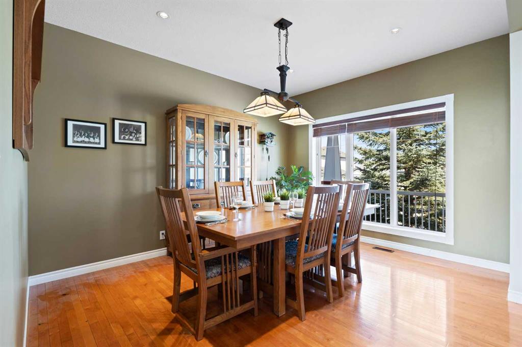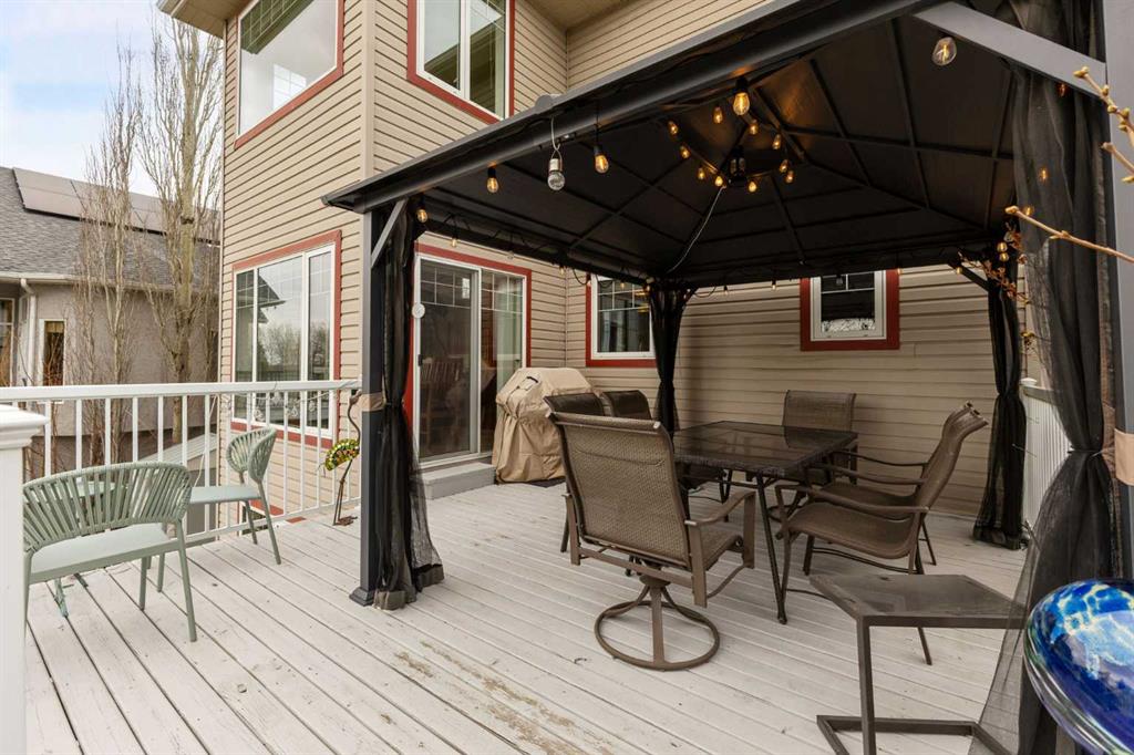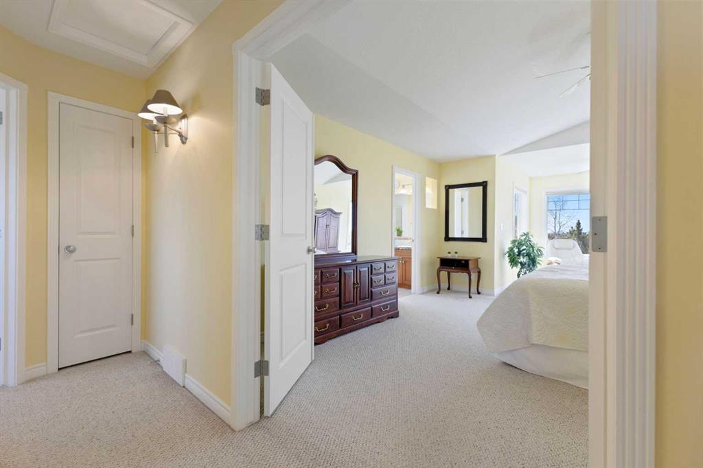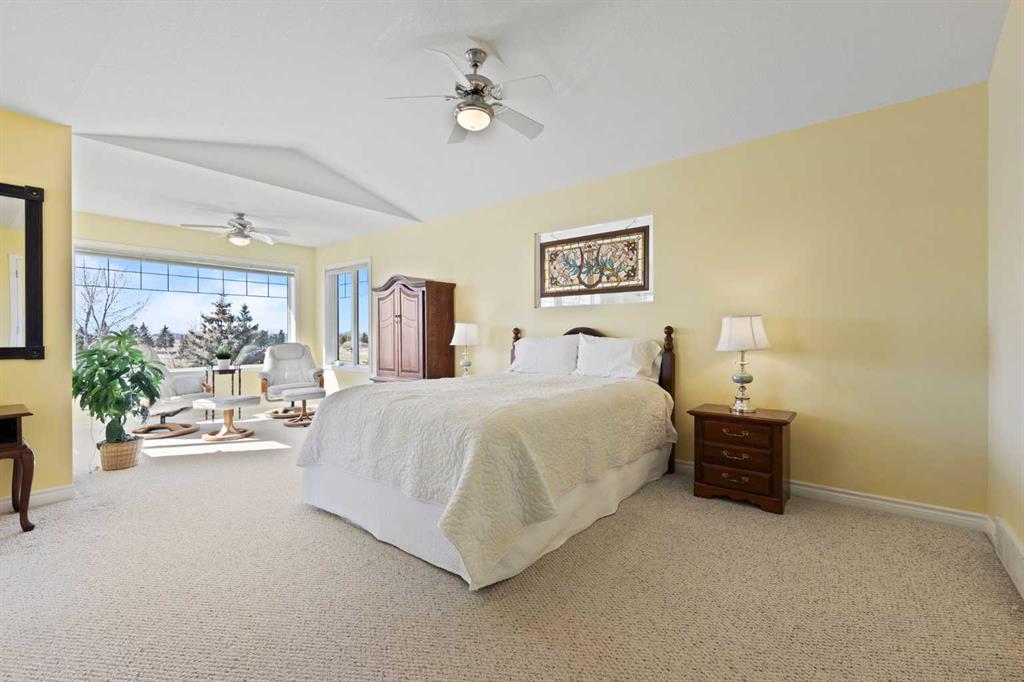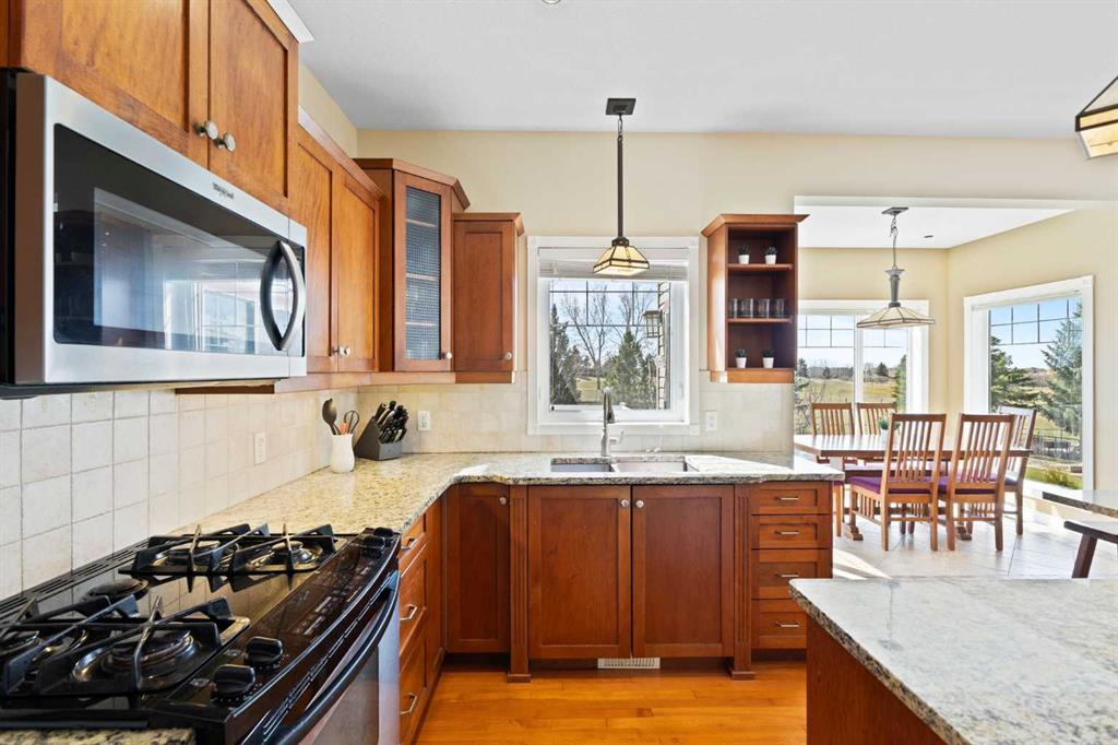 Discover refined living in this exceptional custom-built home, perfectly positioned on a sprawling lot with panoramic views of the Strathmore Golf Course. Thoughtfully designed with over 2,500 sq ft above grade and a fully developed walk-out basement, this home seamlessly blends sophistication, comfort, and practicality—ideal for both everyday living and elegant entertaining. Step inside to a breathtaking main floor where full-height vaulted ceilings and expansive windows draw in natural light and showcase the serene outdoor views. The open-concept living space is anchored by a striking rock-faced gas fireplace, while rich maple hardwood flooring and 9-foot ceilings add a touch of timeless elegance. The chef-inspired kitchen is both functional and beautiful, featuring custom maple cabinetry, a large center island with a prep sink, premium gas stove, a brand new Bosch dishwasher, and a spacious walk-in pantry. Adjacent to the kitchen, a bright breakfast nook leads to a large deck complete with a charming gazebo—an inviting space to unwind or entertain, all while overlooking the lush backyard and fairway beyond. Smart design continues throughout with main floor laundry, including a convenient laundry chute from the second floor, and abundant storage to keep your home organized with ease. Upstairs, retreat to a private primary suite boasting vaulted ceilings, a cozy sitting area with golf course views, a luxurious 5-piece ensuite, and a generous walk-in closet. Two additional bedrooms provide ample space for family or guests. The fully finished walk-out basement adds versatility with a spacious fourth bedroom, large recreation and media areas, and even more storage. Outside, the landscaped yard offers underground sprinklers, mature plantings, and plenty of space for kids, pets, or a garden oasis. To top it all off, this home is located within walking distance to the local public junior and senior high school—an unbeatable location for growing families. With brand new roof shingles and every detail meticulously maintained, this home is the total package: custom craftsmanship, an enviable setting, and thoughtful features throughout. Come experience it for yourself. Call your AWESOME REALTOR today!