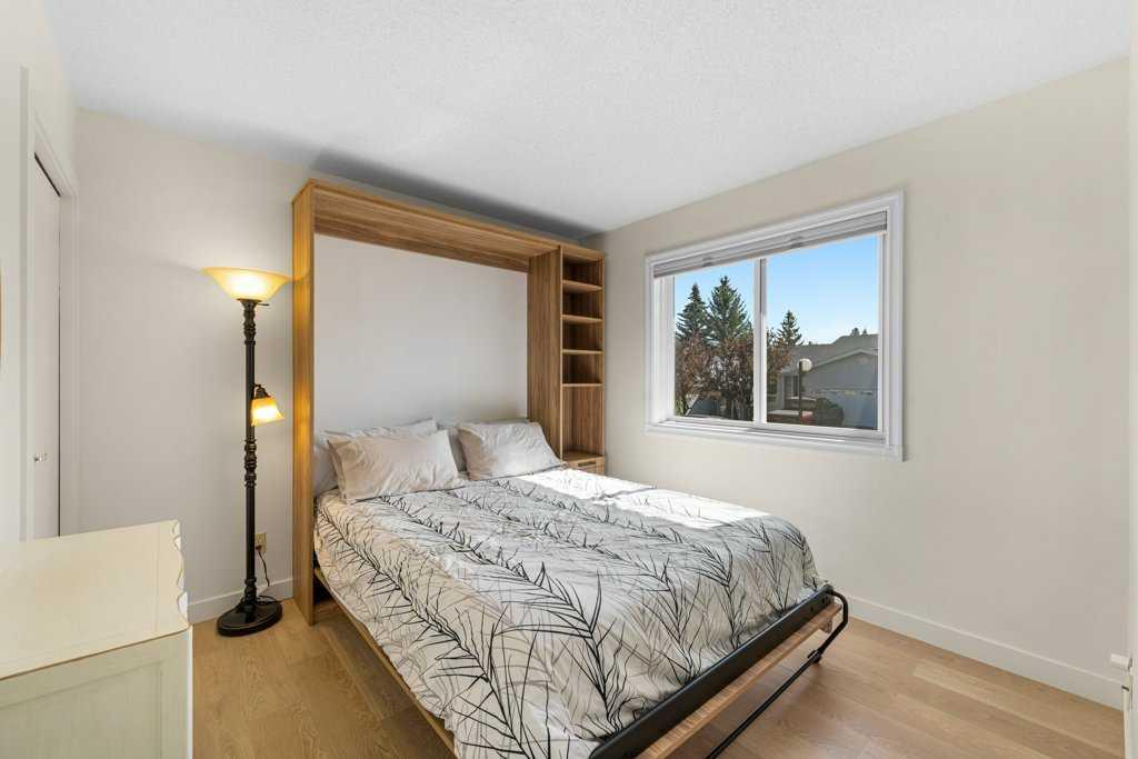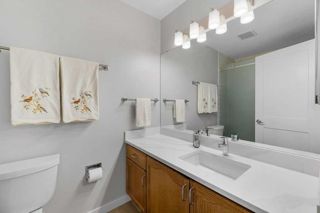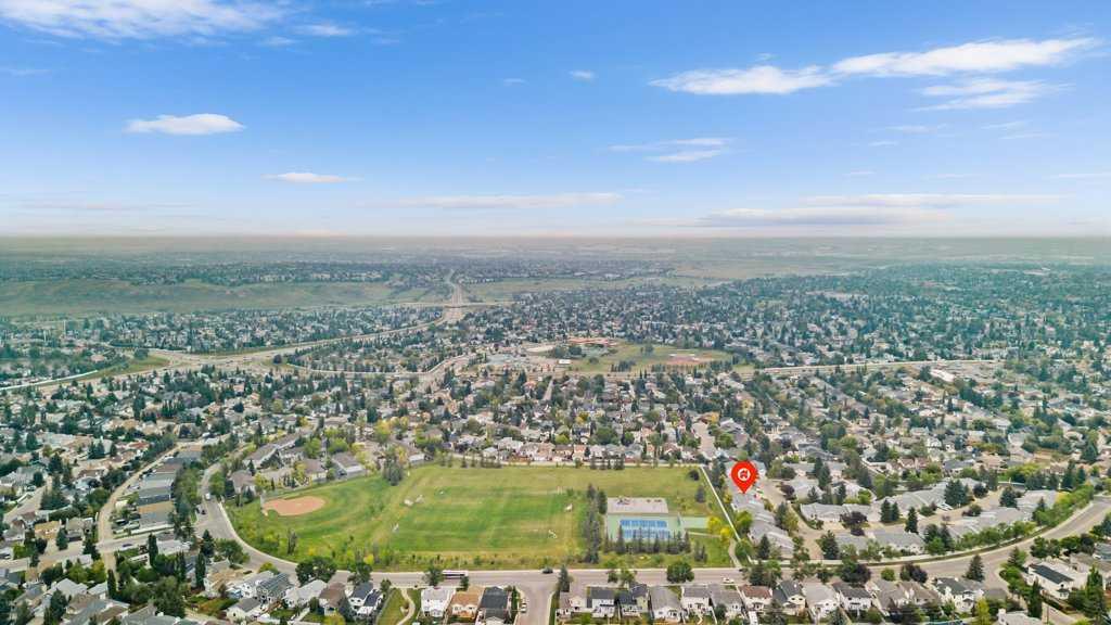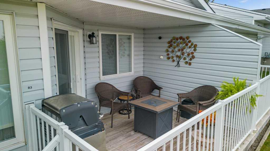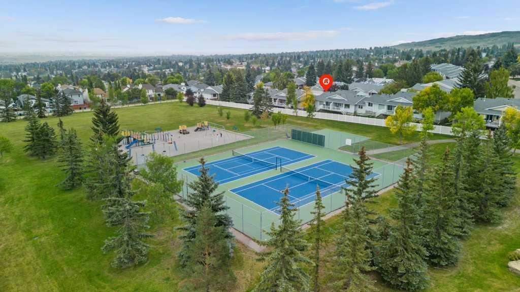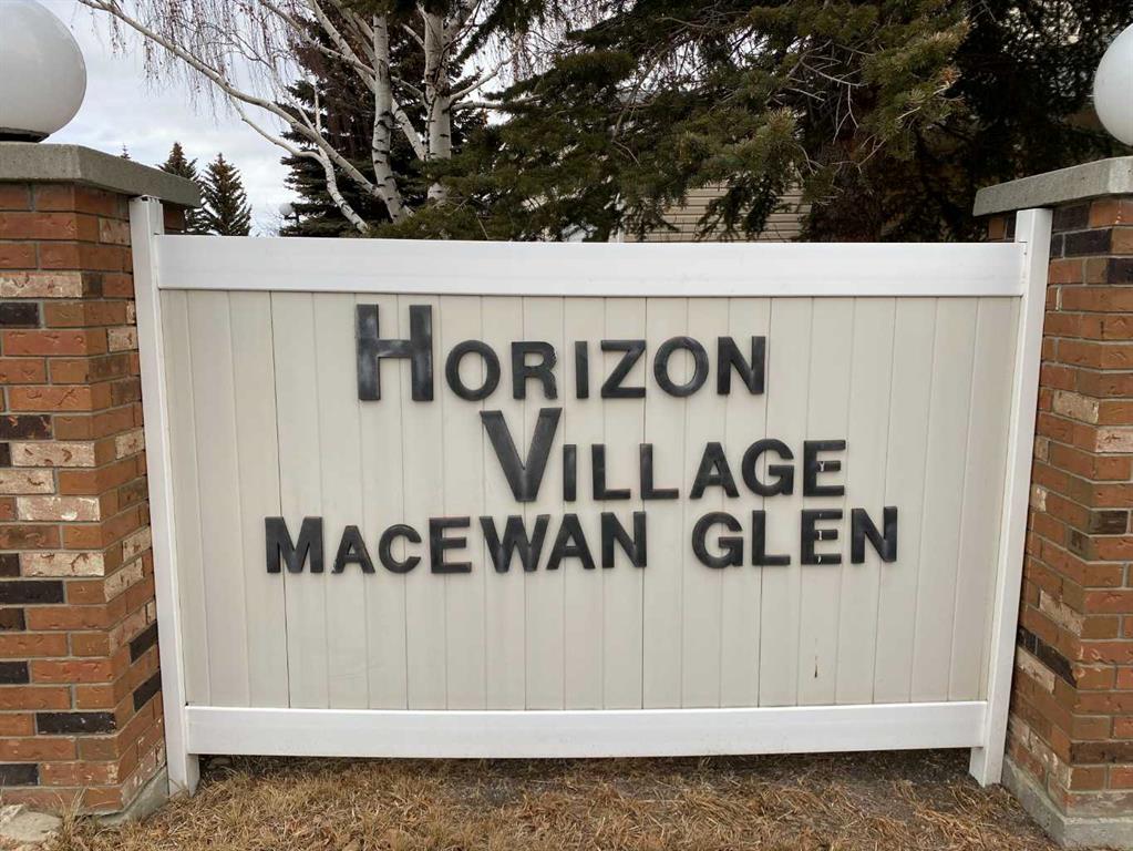 SUBSTANTIALLY RENOVATED VILLA! Are you looking for a QUIET RENOVATED BUNGALOW VILLA with no homes behind? Do you want a location where grandkids have plenty to do? Do you love TENNIS or PICKLEBALL? How about a 55+ VILLA on a LARGE GREENSPACE, with a view of TENNIS & PICKLEBALL (surrounded by mature trees), plus two open soccer fields, a ball diamond & a playground, all visible from your back deck? FANTASTIC VIEW for SEVERAL KILOMETERS!! When you move into a HORIZON VILLAGE community you gain a whole new lifestyle with plenty of new friendships centered around the COMMUNITY CLUBHOUSE for social events (both organized and spontaneous). Are you thinking of doing fewer chores and having more fun? You can THROW AWAY YOUR LAWNMOWER and your SNOW SHOVEL. Come see 83 Macewan Park Heights, an END-UNIT in a fantastic location! The front of this home is welcoming, NICE CURB APPEAL and nicely landscaped with an attractive sandstone retainer and a patio to sip your morning coffee. Step in the front door to this beautiful BUNGALOW with ATTACHED GARAGE. This villa is wide, giving lots of windows at the back of the home for PLENTY OF NATURAL LIGHT. AMAZING UPGRADES! You will love the vinyl plank flooring – durable and attractive! How about CENTRAL AIR CONDITIONING and TRIPLE PANE WINDOWS which are great for ENERGY EFFICIENCY (and QUIET). GREAT FLOOR PLAN. Two bedrooms on the main level, one with a built-in hide-a-bed so you can use the space for an office or a guest bedroom. The PRIMARY BEDROOM has an ENSUITE BATHROOM that you don’t find in many villa floor plans. The SPACIOUS U-SHAPED KITCHEN has open sight lines to the dining and living rooms, plus the outdoor deck, and the green space out back! You will love sitting on the PARTIALLY COVERED back DECK with a privacy wall, and aluminum railing with a gate at the stairs to keep the puppies or grandchildren safe. The LOWER LEVEL is FINISHED and has a SPACIOUS REC ROOM with TV area and an ATTRACTIVE CORNER GAS FIREPLACE to keep the basement cozy all year round, plus another full bathroom and a hobby room (or office area if you prefer). The main floor bathrooms have been BEAUTIFULLY RENOVATED! So many updates and upgrades! Recent improvements include: BASEMENT SURROUND SPEAKERS and CENTRAL AIR CONDITIONING in 2016. A major upgrade to TRIPLE PANE PATIO DOOR and TRIPLE PANE WINDOWS throughout the home in 2018 (plus new toilets in 2018). UPGRADED THERMOSTAT and FAN FOR THE FIREPLACE in 2019. VINYL PLANK FLOORING plus a NEW DRIVEWAY in 2020. NEW DISHWASHER and WATER HEATER in 2021. Queen-sized MURPHY BED and a NEW WASHER in 2022. The main and ensuite BATHROOMS were very NICELY RENOVATED in 2021. NEW INTERIOR DOORS, BASEBOARDS and TRIM on the main level (plus new custom HUNTER DOUGLAS BLINDS) in 2023. NEW FRONT DOOR, SCREEN and A SMART LOCK in 2024, plus a NEW ROOF in 2024! Short distance to Macewan Plaza or several major shopping locations. Walking paths connect to Nose Hill Park and more!