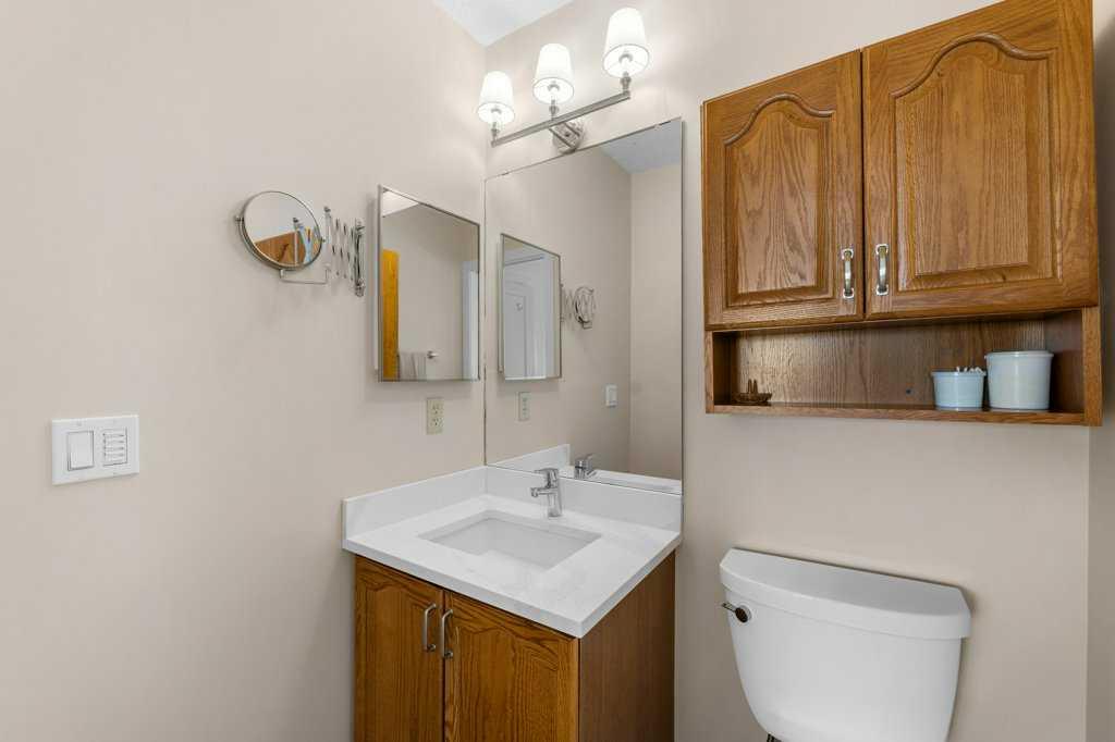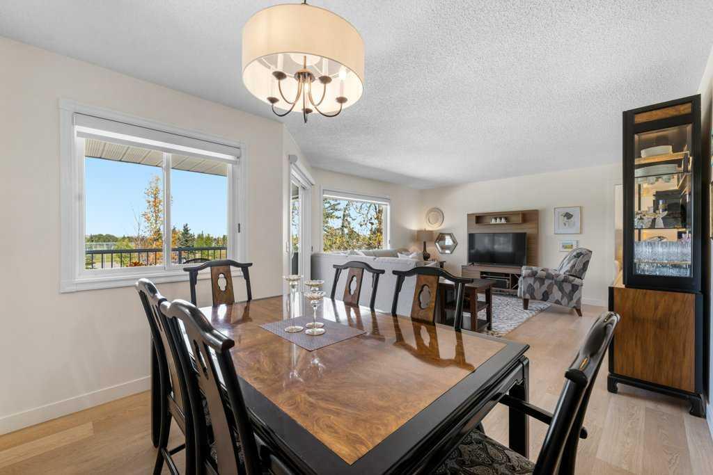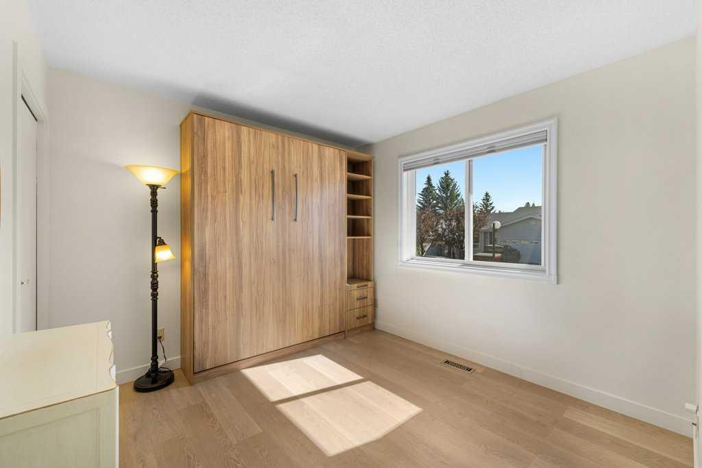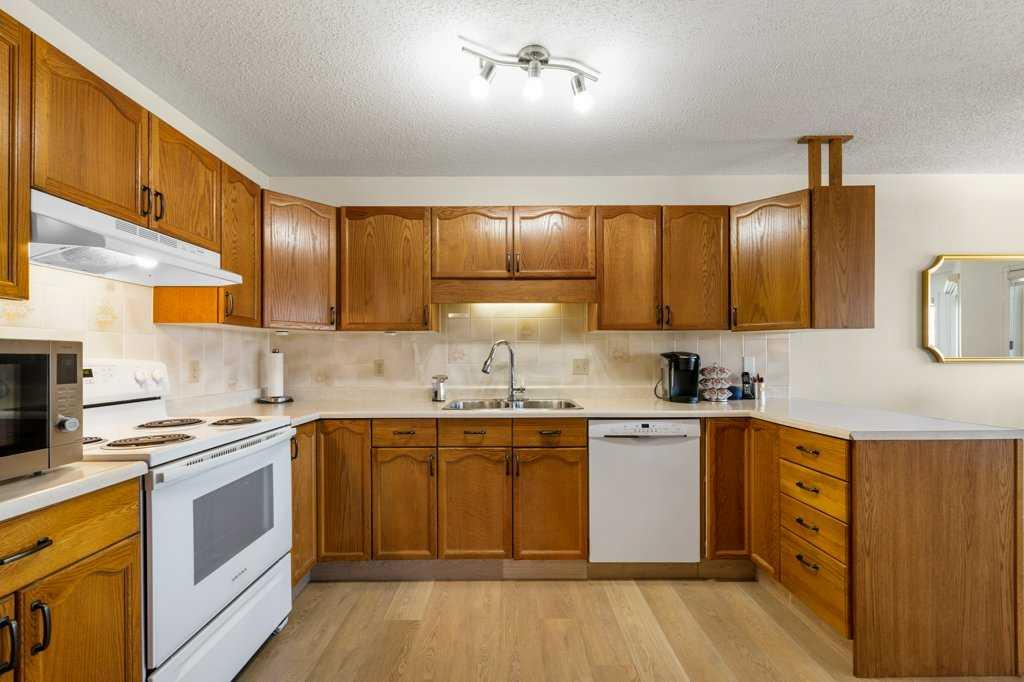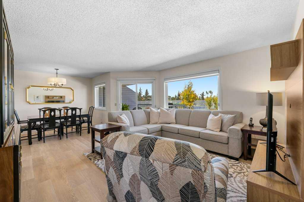 SUBSTANTIALLY RENOVATED VILLA! Are you looking for a QUIET RENOVATED BUNGALOW VILLA with no homes behind? Do you want a location where grandkids have plenty to do? Do you love TENNIS or PICKLEBALL? How about a 55+ VILLA on a LARGE GREENSPACE, with a view of TENNIS & PICKLEBALL (surrounded by mature trees), plus two open soccer fields, a ball diamond & a playground, all visible from your back deck? FANTASTIC VIEW for SEVERAL KILOMETERS!! When you move into a HORIZON VILLAGE community you gain a whole new lifestyle with plenty of new friendships centered around the COMMUNITY CLUBHOUSE for social events (both organized and spontaneous). Are you thinking of doing fewer chores and having more fun? You can THROW AWAY YOUR LAWNMOWER and your SNOW SHOVEL. Come see 83 Macewan Park Heights, an END-UNIT in a fantastic location! The front of this home is welcoming, NICE CURB APPEAL and nicely landscaped with an attractive sandstone retainer and a patio to sip your morning coffee. Step in the front door to this beautiful BUNGALOW with ATTACHED GARAGE. This villa is wide, giving lots of windows at the back of the home for PLENTY OF NATURAL LIGHT. AMAZING UPGRADES! You will love the vinyl plank flooring – durable and attractive! How about CENTRAL AIR CONDITIONING and TRIPLE PANE WINDOWS which are great for ENERGY EFFICIENCY (and QUIET). GREAT FLOOR PLAN. Two bedrooms on the main level, one with a built-in hide-a-bed so you can use the space for an office or a guest bedroom. The PRIMARY BEDROOM has an ENSUITE BATHROOM that you don’t find in many villa floor plans. The SPACIOUS U-SHAPED KITCHEN has open sight lines to the dining and living rooms, plus the outdoor deck, and the green space out back! You will love sitting on the PARTIALLY COVERED back DECK with a privacy wall, and aluminum railing with a gate at the stairs to keep the puppies or grandchildren safe. The LOWER LEVEL is FINISHED and has a SPACIOUS REC ROOM with TV area and an ATTRACTIVE CORNER GAS FIREPLACE to keep the basement cozy all year round, plus another full bathroom and a hobby room (or office area if you prefer). The main floor bathrooms have been BEAUTIFULLY RENOVATED! So many updates and upgrades! Recent improvements include: BASEMENT SURROUND SPEAKERS and CENTRAL AIR CONDITIONING in 2016. A major upgrade to TRIPLE PANE PATIO DOOR and TRIPLE PANE WINDOWS throughout the home in 2018 (plus new toilets in 2018). UPGRADED THERMOSTAT and FAN FOR THE FIREPLACE in 2019. VINYL PLANK FLOORING plus a NEW DRIVEWAY in 2020. NEW DISHWASHER and WATER HEATER in 2021. Queen-sized MURPHY BED and a NEW WASHER in 2022. The main and ensuite BATHROOMS were very NICELY RENOVATED in 2021. NEW INTERIOR DOORS, BASEBOARDS and TRIM on the main level (plus new custom HUNTER DOUGLAS BLINDS) in 2023. NEW FRONT DOOR, SCREEN and A SMART LOCK in 2024, plus a NEW ROOF in 2024! Short distance to Macewan Plaza or several major shopping locations. Walking paths connect to Nose Hill Park and more!