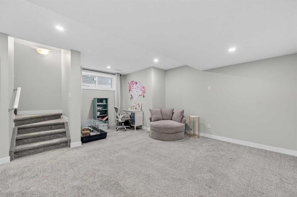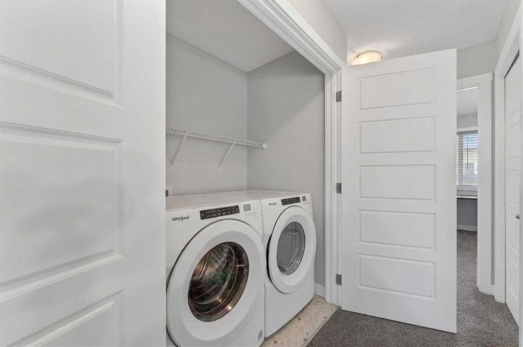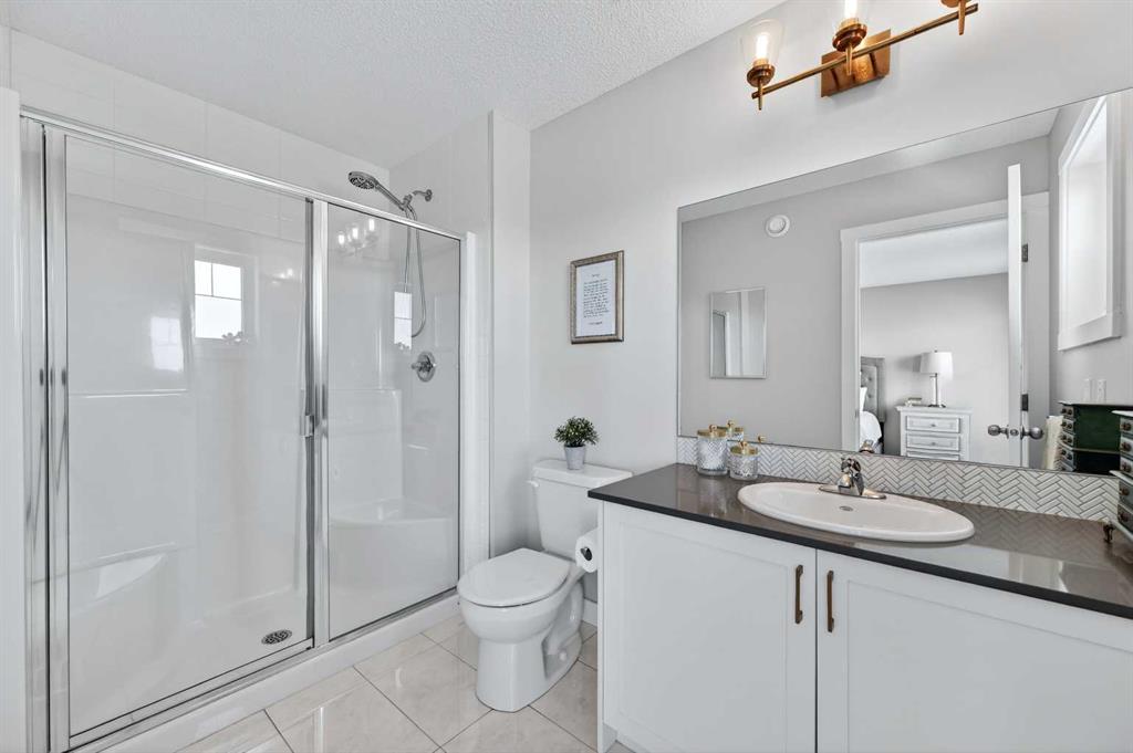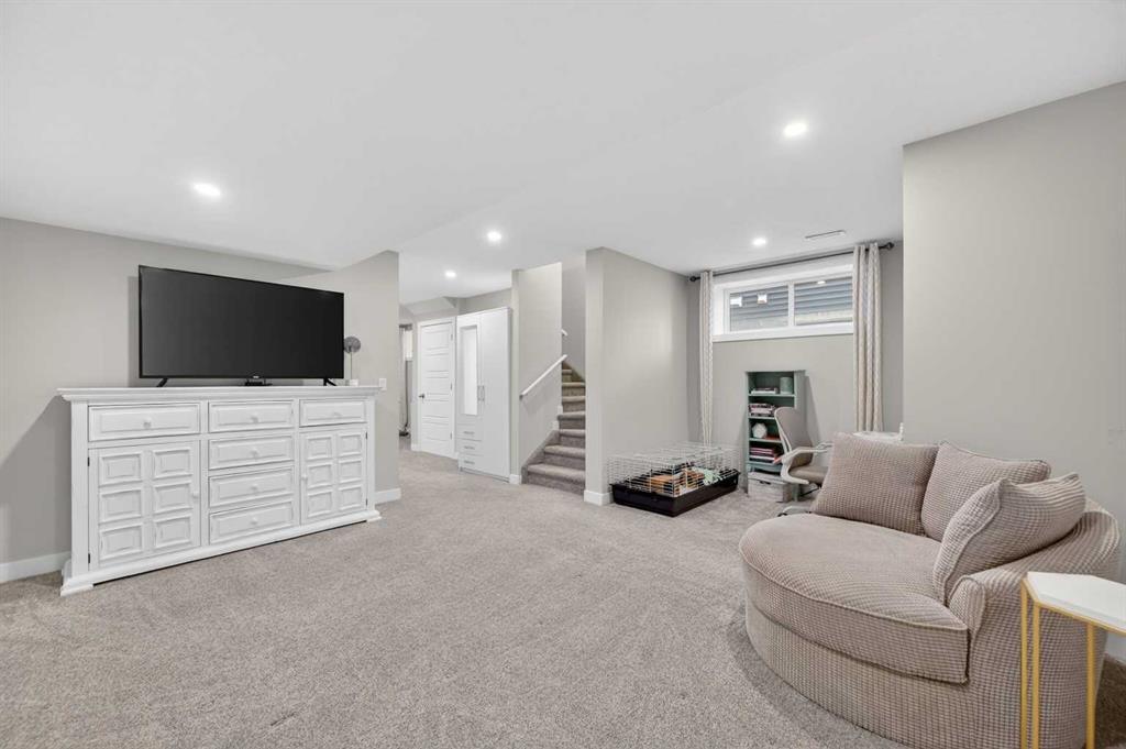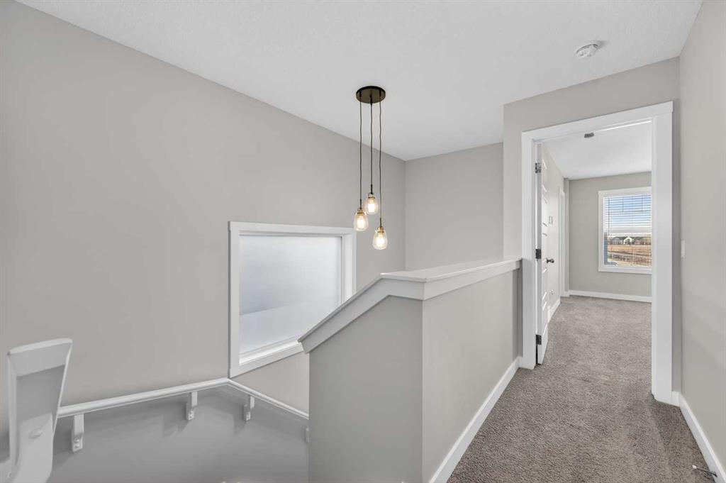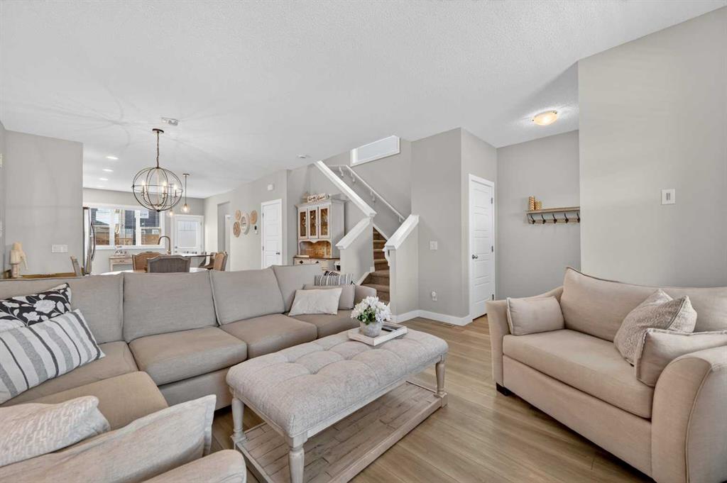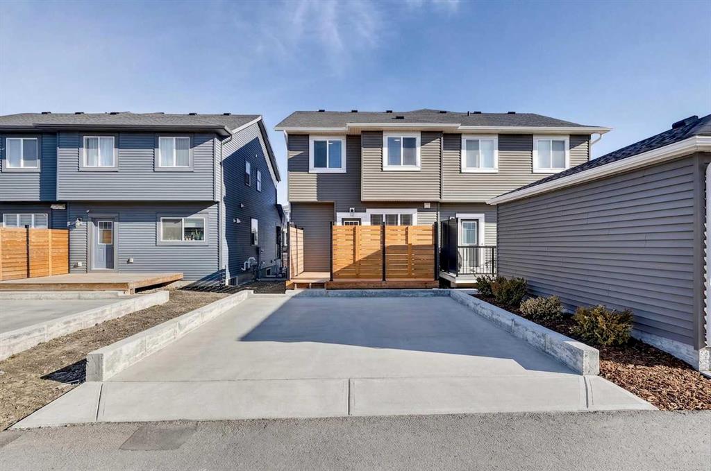 WELCOME HOME! This beautifully maintained 2021 Shane Homes duplex with more than 2,200 sq ft developed is FULLY FINISHED, affordable, and truly move-in ready! From the moment you step inside, you’ll notice the PRIDE OF OWNERSHIP with fresh paint, sparkling clean condition, and an inviting open-concept layout filled with natural light. The covered front porch is the perfect spot to relax and enjoy a shady summer afternoon. The main floor offers 9′ ceilings, a spacious living and dining area, anchored by a stunning kitchen featuring a MASSIVE ISLAND, gas range, and plenty of room for entertaining or everyday family life. Enjoy modern convenience with ceiling-mounted Google Mini speakers on the main floor and in the bedrooms—easily control music, lighting, and more with just your voice. Upstairs, you’ll find a generous primary retreat complete with a walk-in closet and private ensuite, along with two additional well-sized bedrooms, a full 4-piece bathroom, and the convenience of upper-level laundry. The professionally developed basement adds even more living space with a large rec room, 4-piece bathroom, versatile flex area, and ample storage. This could be a perfect set up for a teenager, or even extended family. Step outside to your backyard deck with privacy screens—perfect for relaxing or hosting—and a rear parking pad ready for your future dream garage. Located in the sought-after community of Midtown in Airdrie, you’ll love the proximity to scenic ponds, walking paths, canals, and nearby shopping, restaurants, and amenities. A fantastic opportunity to own a turn-key home in a vibrant, family-friendly neighbourhood!