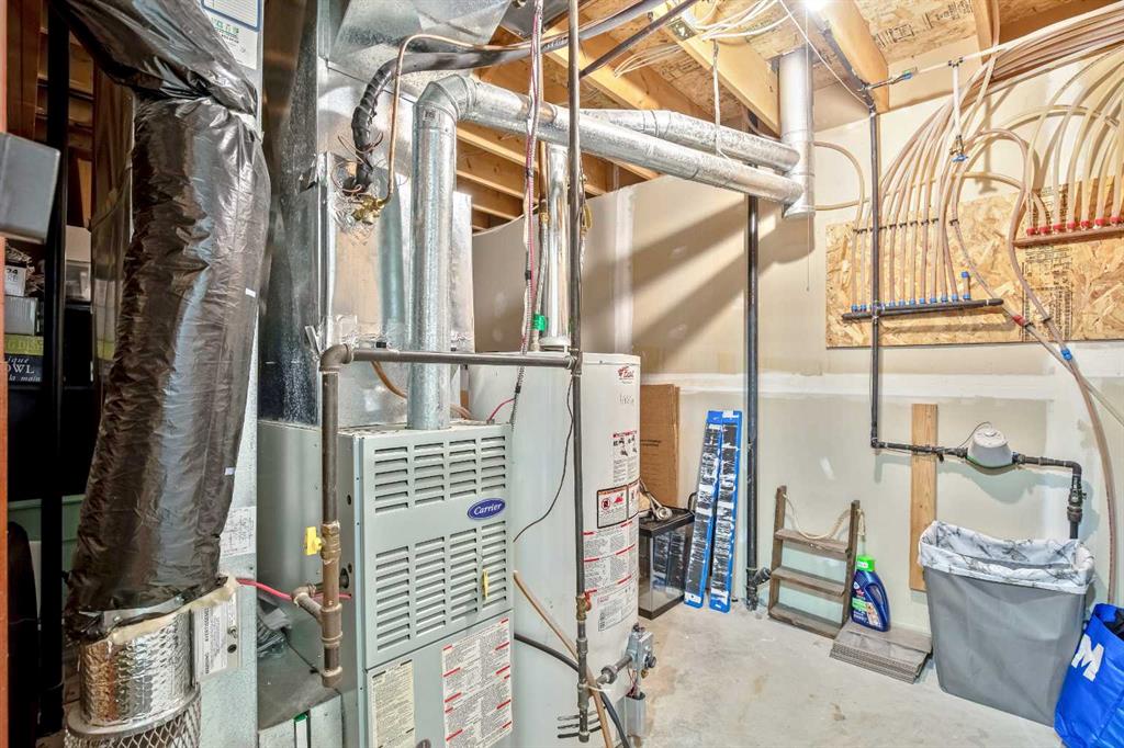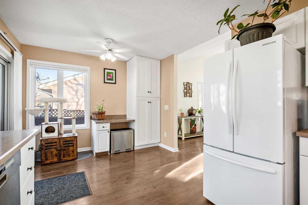 This beautiful semi detached bungalow is located in Strathmore – a growing small town community offering a very good place to live especially for families and known for its community spirit, festivals, etc. As you enter through the front door you will notice the spacious open concept living room/dining room (freshly painted) with vaulted ceilings; an abundance of natural lighting; an inviting gas fireplace and laminate flooring throughout. Nicely laid out kitchen (new dishwasher 2023) with sliding doors for access to deck/pergola and landscaped back yard. Primary bedroom is large with his and hers closets, 3 pce. en-suite bathroom. Good sized 2nd bedroom. 4 pce. bathroom. Laundry room conveniently located on main with access to oversized double attached garage. Lower level is fully developed and has been updated 2025 (newer laminate flooring and paint). Huge rec/games room; large 3rd bedroom; den/office with French glass doors; 4 pce. bathroom. Mechanical room with storage complete this level. Back lane. Central air conditioning. Wonderful location…close to all amenities, shopping, parks, walking paths, golf and easy access to highway 1.