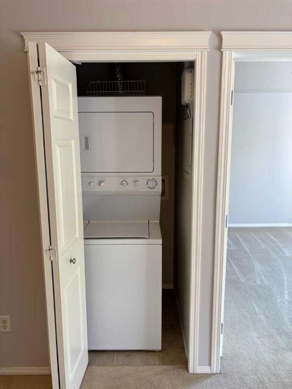 The large primary bedroom includes a generous walk-through closet that leads directly into a well-appointed 4-piece ensuite bathroom—a layout that offers both privacy and convenience. You’ll also love the in-suite laundry with stacked washer and dryer tucked away for easy access.