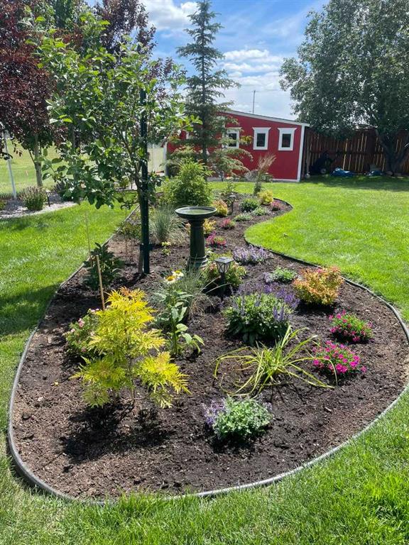 Enjoy easy living and outdoor beauty in this meticulously maintained bungalow — ideal for retirees or anyone who loves a beautiful garden and the comfort of single-level living. Set on a large, landscaped lot, this home offers lush gardens, fruit trees, berries, raised vegetable boxes, a firepit area, gazebo, and multiple outdoor living spaces including two decks and a charming pergola entrance. Inside, the open-concept layout features a gas fireplace with new mantle and feature wall (2024), an updated kitchen with new stainless steel appliances (2022), countertops, sink, faucet, cabinet hardware, two added pantries, and a coffee bar. The primary bedroom includes a full wall of closets and a renovated ensuite with soaker tub and separate shower (2023). Two additional bedrooms offer flexibility for guests or a den, plus another updated full bath. Additional upgrades include new flooring, trim, paint, lighting (interior & exterior), water heater (2023), shed with roof extension (2023), double gate to greenspace, and a hidden dog run. The heated double garage (23’2” x 21’2”) provides ample workspace and storage. A commercial-grade HVAC system ensures year-round comfort, and the firepit, and garden setup make this truly turnkey. Friendly neighbors and inviting outdoor spaces complete this welcoming, move-in ready home. Call your favourite Local Real Estate Agent for a private tour.