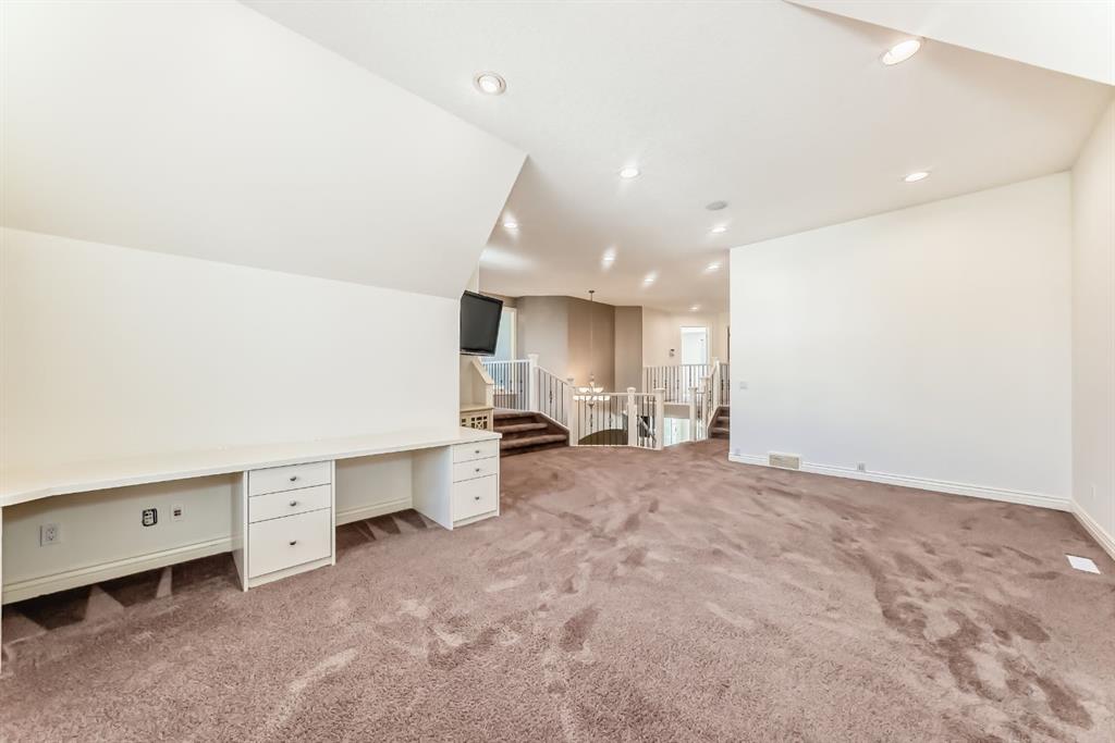 Elegance! This Evergreen Estates home features numerous upgrades and backing onto green space, pathway, mature trees and privacy. Stately curb appeal welcomes you inside. Executive air conditioned 2 storey, bonus room and a functionally developed walkout on a quiet cul-de-sac. Extensive upgrades, many built-ins, speakers and plantation shutters throughout. MAIN FLOOR: Hardwood and tile with 9′ ceilings. Office or den. Large dining room. Fully renovated gourmet kitchen with cherry wood cabinets, breakfast bar, granite countertops, stainless steel appliances, sink in large island with eating area open to an inviting family room, fireplace and custom built in shelving on the feature wall. French door leading out to deck with metal railings & glass panels in south facing back. The deck has stairs leading to the backyard. Laundry and mudroom with custom closet lockers and a two piece powder room. UPSTAIRS: The staircase with painted railings and iron rod spindles lead up to a very large bonus room with some built ins and charming window seat. Enjoy the large primary bedroom with a five piece ensuite bath, and a spacious walk-in closet. There are also two generous sized bedrooms and a 4pc main bath. Another den or office with a cozy balcony overlooking the front of the home. Den could easily be used as a guest bedroom. DEVELOPED DOWN: Walk out with bright large windows leading to a covered patio and a professionally landscaped, private yard. In-floor heating. Large recreation room, bedroom, 3 piece bathroom and very large storage room. Excellent space for a mature child or mother-in-law. Underground sprinklers, mature trees, gazebo and privacy hot tub. Oversized double garage with good storage space and raised ceiling. From the back gate walk or bike to our amazing Fish Creek Provincial Park (approximately 500 steps away)! This is one of the most coveted areas in the city, with local amenities and excellent schools nearby. Transit accessible and a short drive to the Shawnessy shopping area. Great proximity to Macleod Trail and Stoney Trail put the rest of the city in easy driving distance, and the location provides easy access to the Rocky Mountains! All major amenities are only minutes away.