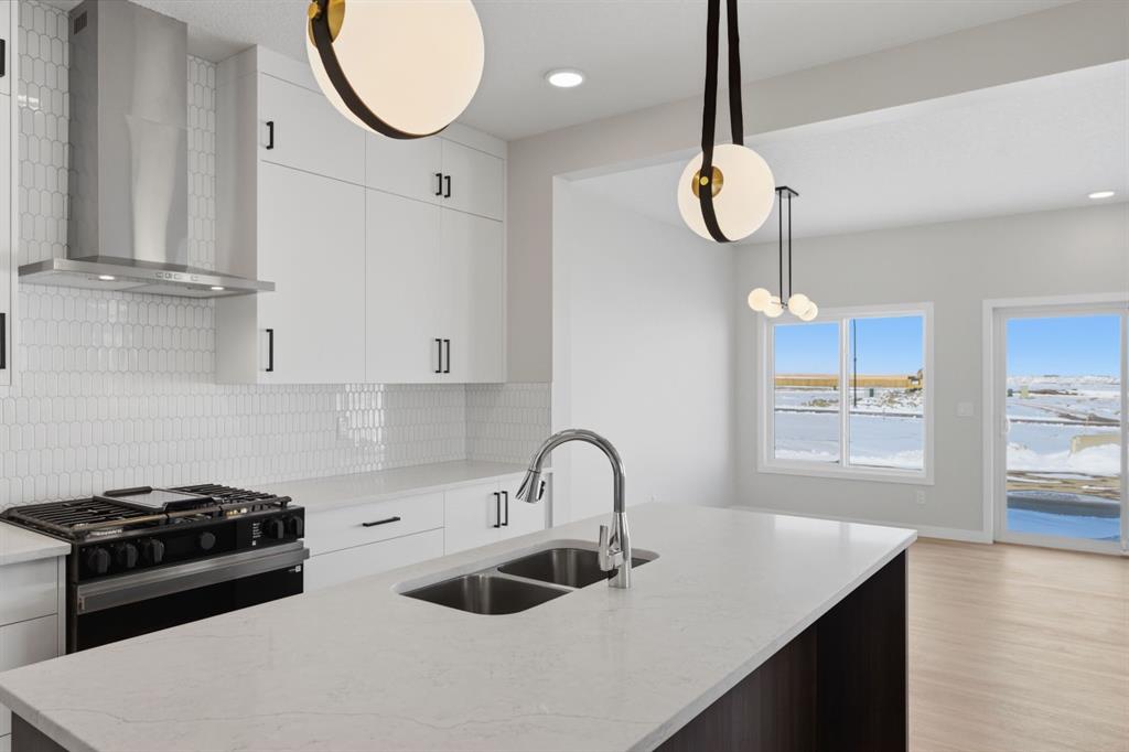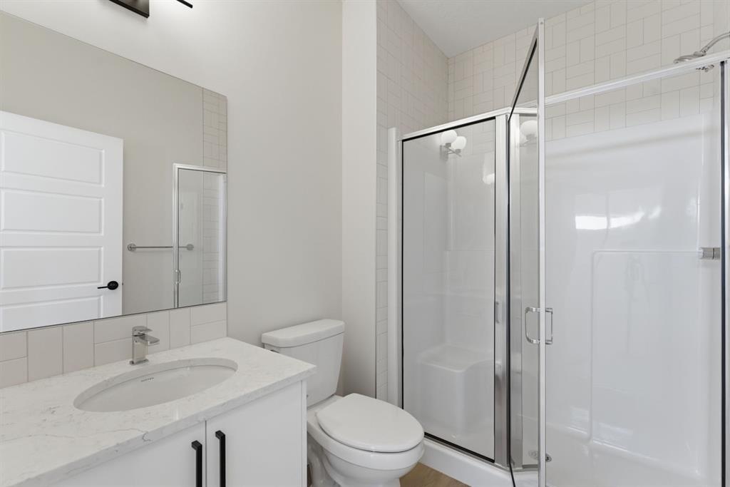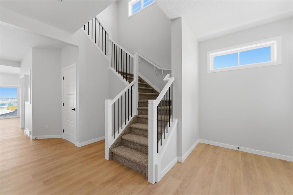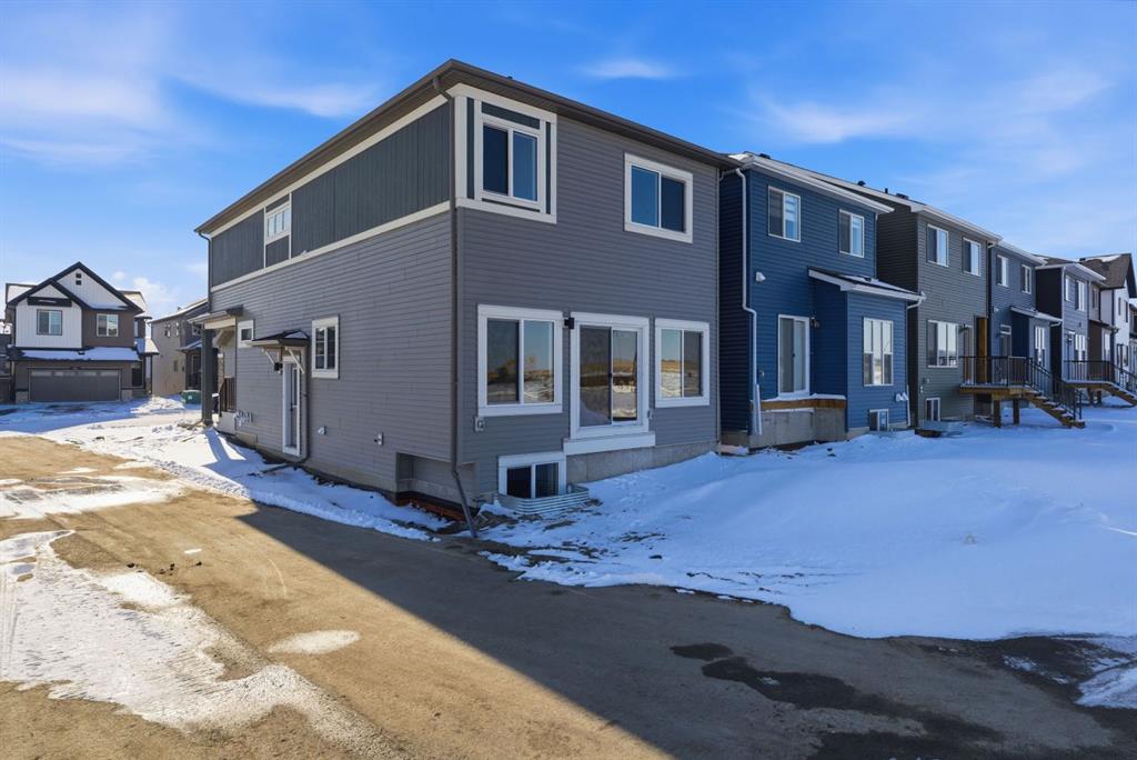 Nestled on a desirable corner lot just steps away from the park, this stunning two-storey home delivers the kind of refined, functional layout. From the moment you step inside, the attention to detail is undeniable. Elegant open railings on both the main and upper floor staircases create a sense of openness and architectural flair that immediately sets the tone for what’s to come. The main floor impresses with soaring ceiling-height cabinetry in the chef-inspired kitchen, anchored by a gas range and sleek chimney hood fan — a true entertainer’s centrepiece. A built-in microwave keeps countertops clutter-free, while the adjacent spice kitchen is a game-changer for those who love to cook without compromise. The warm glow of an electric fireplace creates an inviting focal point in the living room, perfect for Calgary’s cozy evenings. A main-floor den and a full bathroom, complete with a standing shower, add flexibility for guests, a home office, or multigenerational living. Head upstairs and discover a layout designed for real families. The upper floor bonus room, crowned with an elegant tray ceiling, offers the perfect retreat for movie nights or a kids’ playroom. The primary bedroom is a sanctuary unto itself, featuring a luxurious 5-piece ensuite where every detail has been considered. Two additional well-appointed bedrooms share a beautifully finished main bathroom — and throughout every bathroom in the home, tile extends to ceiling height, delivering a spa-like sophistication that sets this home apart. The basement is where the smart money is. Featuring a separate side entrance, soaring 9-foot ceilings, and full future-suite rough-ins already in place, this lower level is primed and ready for a future development.