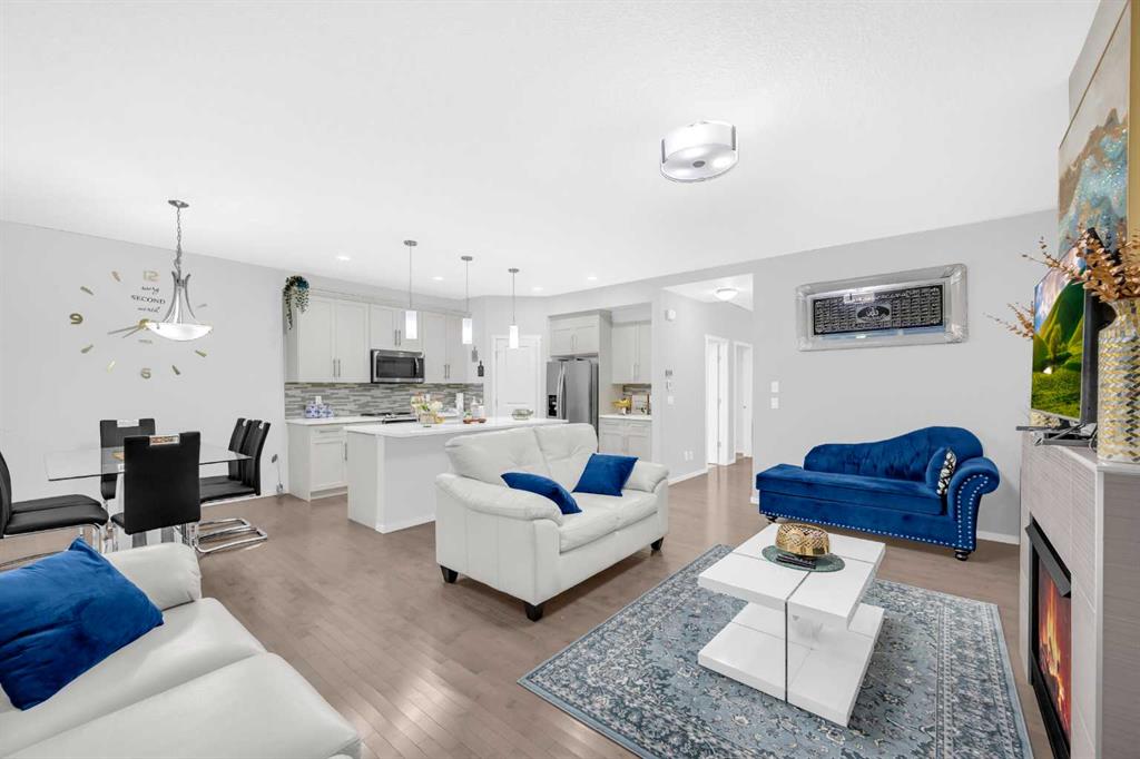 Welcome to this exceptionally crafted, custom-built home by Avi, nestled in the prestigious and family-friendly community of Nolan Hill NW Calgary. Impeccably maintained this exquisite residence offers over 2,039 sq ft of thoughtfully designed living space across two levels, featuring 4 bedrooms, 3 full bathrooms, a spacious upper bonus room, and an unspoiled basement ready for your personal touch. From the moment you arrive, you’ll be captivated by the elegant curb appeal, inviting entryway, and the sense of quality that flows throughout the home. Step inside to discover a warm and welcoming open-concept main floor designed with both functionality and sophistication in mind. Rich dark hardwood floors, 9-foot ceilings, and designer-neutral tones create an atmosphere of understated luxury. The living room offers a serene retreat with a beautiful gas fireplace, perfect for cozy evenings, while the adjacent dining area seamlessly opens onto a large outdoor deck—ideal for summer entertaining or relaxed family meals. At the heart of the home lies the gourmet chef’s kitchen, expertly appointed with polished quartz countertops, premium stainless steel appliances**, a large central island with seating, and an abundance of cabinet space, including a corner walk-in pantry—perfect for those who love to cook or entertain. Whether you’re hosting a dinner party or preparing a quiet family meal, this kitchen is sure to impress. One of the unique highlights of the main floor is the private bedroom with a full ensuite bathroom—a rare and thoughtful feature ideal for aging parents, guests, or a home office. Oversized triple-pane windows throughout the home fill every room with natural light while offering enhanced energy efficiency and quiet comfort year-round. Upstairs, you’ll find three generously sized bedrooms, including the luxurious primary suite, which serves as your own private retreat. This beautifully appointed room features a walk-in closet and a spa-inspired ensuite bathroom complete with a deep soaker tub, separate glass-enclosed shower, and dual vanities. The upper level also includes a large bonus room, perfect for family movie nights, a kids’ playroom, or a stylish home office, as well as a convenient laundry room with a modern washer and dryer. The unfinished basement offers an additional 846 sq ft of space, already roughed-in for a bathroom and central vacuum, providing the perfect canvas for future development—whether you envision a home theatre, gym, recreation area, or guest suite.Additional luxury features include a whole-home water softener system that protects your appliances and keeps your skin and hair feeling soft, double attached front garage, and extra parking on both the driveway and the street for added convenience.