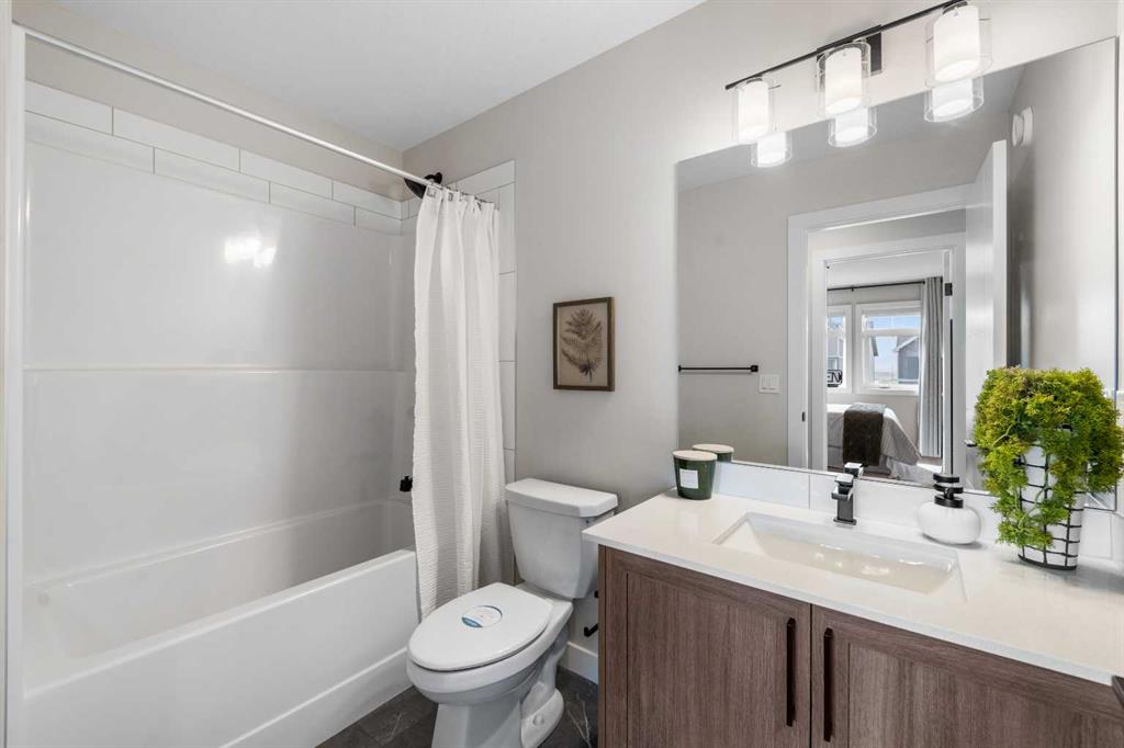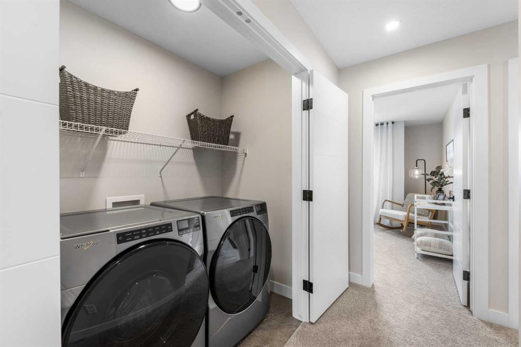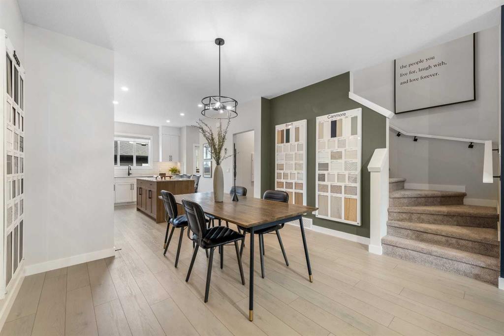 Welcome to the former Edward model showhome by Partners Homes, located in the southeast Calgary community of Logan Landing. This fully finished home offers a well-planned layout, thoughtful finishes, and the added peace of mind of builder’s new home warranty. Additional highlights include central air conditioning and a detached garage that is insulated, drywalled, and heated. The main floor features a welcoming entry with a large front closet, a convenient powder room, and a flexible front room suitable for a home office or additional living space. The kitchen is bright and practical, with a central island, window over the sink, two-tone cabinetry extended to the ceiling, and a walk-in pantry. Open dining and living areas flow comfortably together, while the rear mudroom provides everyday organization. Upstairs, the primary bedroom includes a walk-in closet and a four-piece ensuite with dual sinks and a fully tiled shower. A central bonus room separates the primary bedroom from two additional bedrooms, offering privacy and flexibility. A full bathroom and side-by-side laundry complete this level. The fully developed basement with a separate side entrance adds valuable living space and versatility. This level includes a large open recreation area with a built-in bar, beverage fridge, and shelving, along with an additional bedroom, a full bathroom, and ample storage. Logan Landing offers access to the Bow River, ponds, parks, playgrounds, and an extensive pathway network. The community is minutes from the Seton Urban District with shopping, schools, healthcare, and entertainment, and provides convenient access to Deerfoot Trail. This former showhome presents a rare opportunity to own a fully finished, move-in-ready home in one of Calgary’s newest southeast communities.