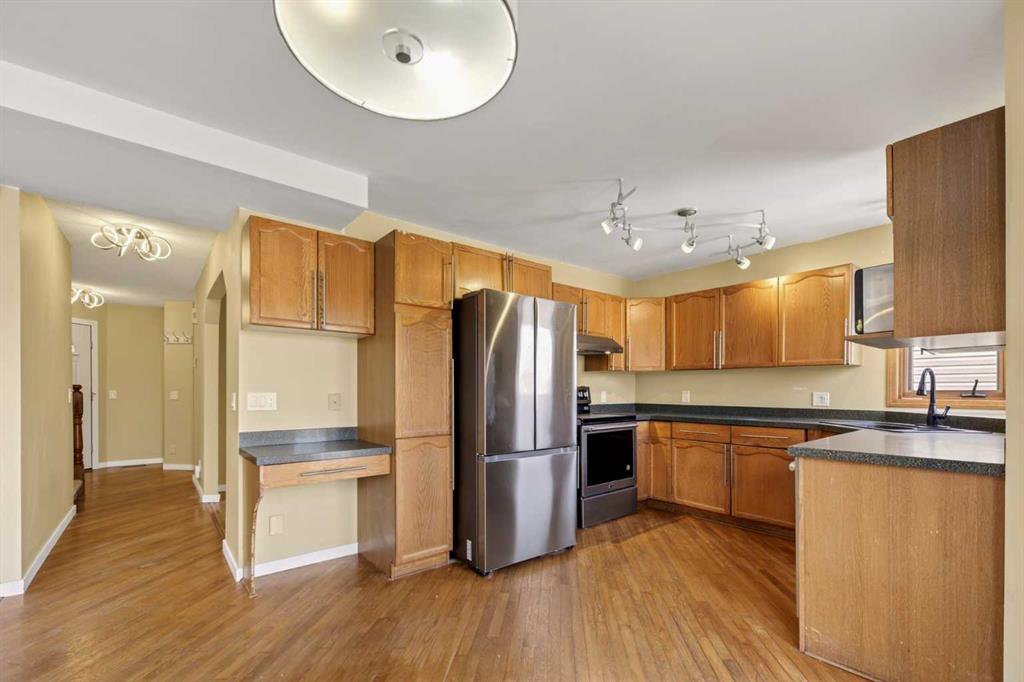 Ready to step into Calgary’s serene neighbourhood of Riverbend? Look no further than this stunning home, nestled by green spaces, upgraded for peace of mind, and prepared for your unique touch. Stepping into the home from the upgraded front porch you are greeted by a large entry foyer, living room, and hallway access to your storage closets + laundry room, half bathroom, and side entrance/exit. Passing the separate dining space you enter the heart if the home, with a modern equipped kitchen and family room bolstered with a real wood burning fireplace for those cozy winter evenings! Several large NE facing windows allow natural light to brighten the space further while also inviting you to step out onto your elevated balcony and soak in nature. Moving to the upper level this home is equipped with 2 full bedrooms their corresponding 4 piece bathroom, as well as your primary bedroom and attached walk-in closet + 4 piece ensuite bathroom. All of that combined with a finished walkout basement that includes a storage/utility room, oversized rec room + wet bar, and another 4 piece bathroom… you have access to over 2536 sq/ft of useable living space! Outside the sliding basement doors you have a large backyard plus a fully built separate patio for all your summer hosting needs. The private fence gate allows you to freely walk the green space and walking/bike paths adjacent to your backyard, and connects your property to open parks + playgrounds! Additional features in this home include the large double garage, fenced in dog-run by your side entrance/exit, and of course… NO POLY B PIPING! Not only does this home include modern touches, but it also provides peace of mind through its numerous upgrades that include: an upgraded porch/balcony/patio in 2022, new roof and gutters in 2023, FULL Poly B replacement in 2024, new fridge + washer/dryer in 2025, and a brand new boiler for 2026. Need further peace of mind? The upgrades are logged with receipts and big ticket items include a transferable warranty!! Don’t miss out on this amazing home! Schedule a showing today to see it for yourself!