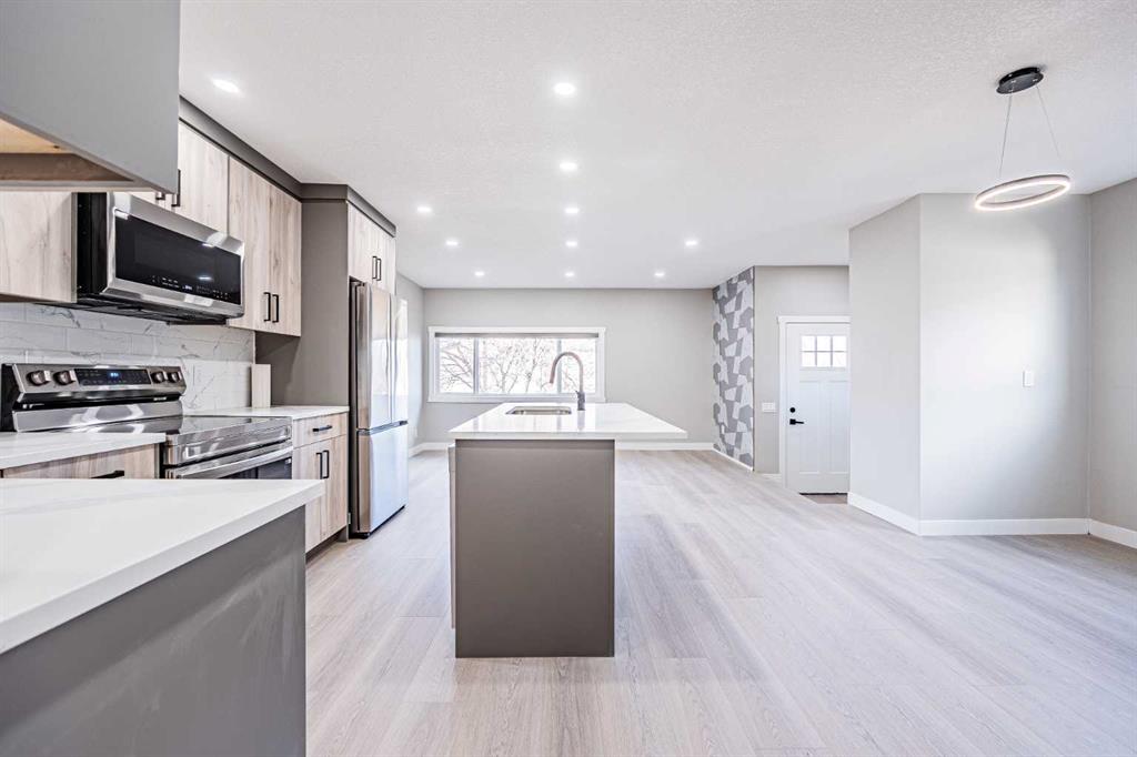 Welcome to this modern, fully updated duplex offering the perfect balance of design, comfort and functionality. Featuring two self-contained living spaces, this property is ideal for families, multi-generational living, or generating rental income. The main floor showcases a bright open-concept living and dining area, a chef’s kitchen with quartz countertops and new appliances, and three spacious bedrooms including a generous primary suite. You will also enjoy two stylish full bathrooms, new flooring, lighting, and fresh paint throughout. The lower-level (illegal) suite offers two bedrooms, a full bathroom, private entrance, its own kitchen and laundry, making it perfect for extended family or tenants. Additional highlights include ample parking, a private backyard, *new windows, and * New electrical and *plumbing fixtures. Whether you are looking to live upstairs and rent the basement or invest in a turnkey income property, this beautifully renovated duplex is an incredible opportunity. Book your private Tour now!