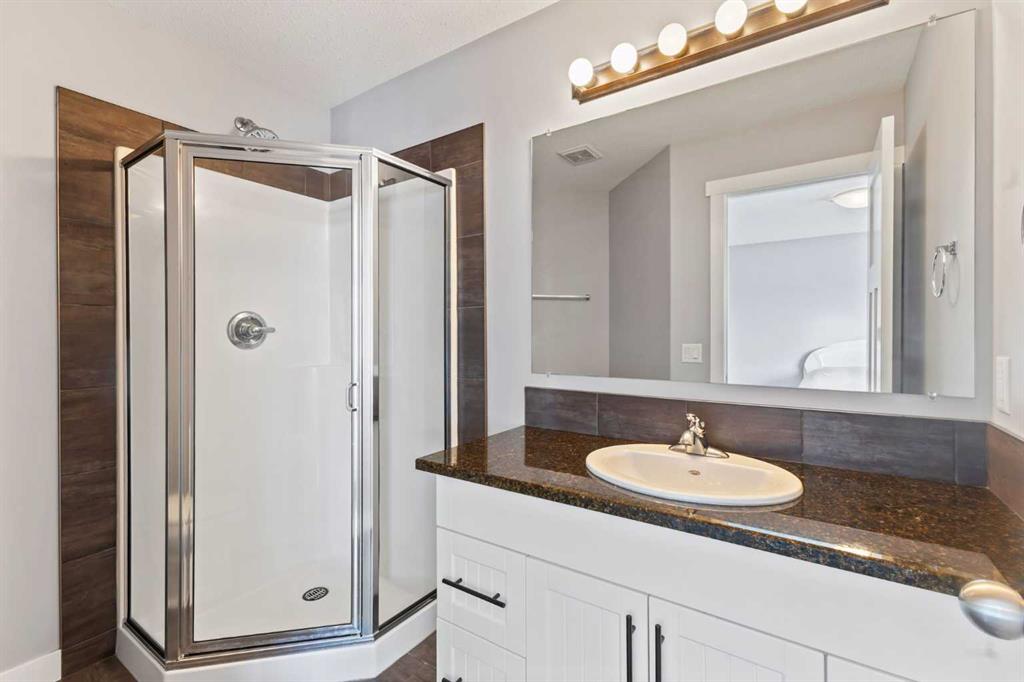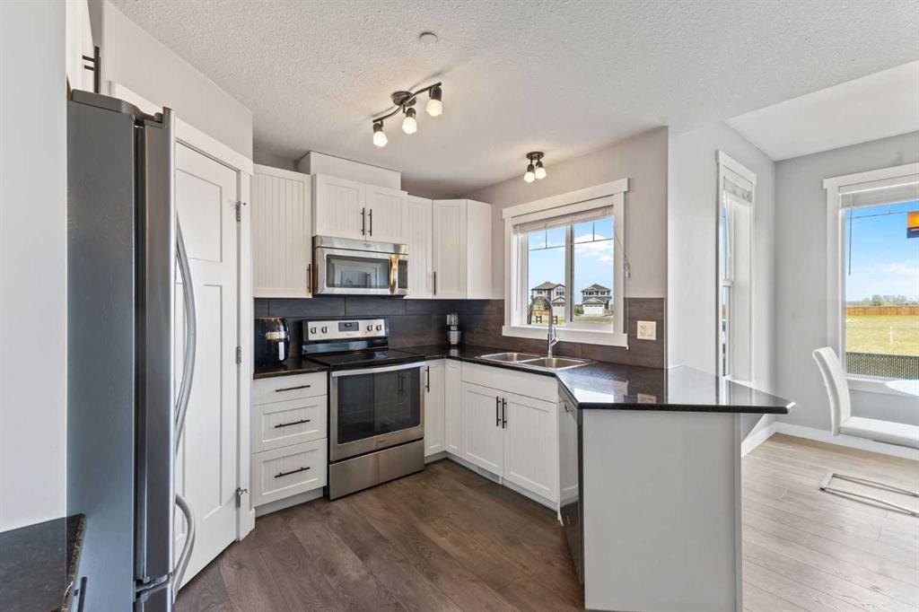 Welcome to this wonderful two-storey home located in the heart of the highly sought-after, family-friendly community of Lakewood. Designed with modern elegance and comfort in mind, this beautiful home features stylish contemporary décor and a bright, open-concept layout perfect for both daily living and entertaining. Step into the main floor and be greeted by a gleaming high ceilings. The white chef’s kitchen complete with granite countertops, ample cabinetry, and stainless steel appliances. Natural light floods the space through large windows, creating a warm and inviting atmosphere throughout the dining area and spacious living room, where a cozy gas fireplace serves as the perfect focal point. Upstairs, you’ll find three generously sized bedrooms, including a primary bedroom featuring a private 3-piece ensuite and ample closet space. The upper level provides a peaceful retreat for the whole family. The fully finished basement adds even more functional living space, offering a large recreation room ideal for movie nights, and a modern 3-piece bathroom, Outside, the private backyard is a true oasis, featuring low-maintenance landscaping and plenty of space for children and pets to play. Beautiful stonework which continues to a centre patio area of the backyard, is a focal feature of this outdoor space. Whether you’re hosting summer BBQs or enjoying quiet evenings under the stars, this outdoor area is ready for it all.