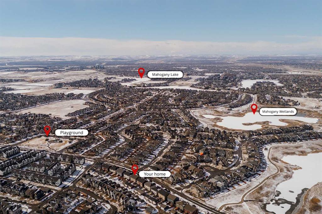 overlooking the open floor plan. On the main floor, there’s even space to add a bar or a work desk beside the stairs, giving you versatility and customization options. Walking upstairs, you’ll notice 3 spacious bedrooms, stacked laundry, storage, and 2 bathrooms. The airy master bedroom easily fits a king-size bed and has its own ensuite with a standing shower and a walk-in closet. 2 other bedrooms overlooking your backyard and a shared full bathroom complete this level. Your undeveloped basement is awaiting your creative ideas. Your sun-filled south backyard with a wider deck is a treat for your kids and would serve as a perfect spot for a gathering. The detached HEATED DOUBLE CARGARAGE serves as a bonus among many others. Minutes away from Mahogany School, Divine Mercy Catholic School, Mahogany Beach Club, restaurants, bars, cafes, and easy access to the stoney trail! Check out the 3D tour and book a showing today.