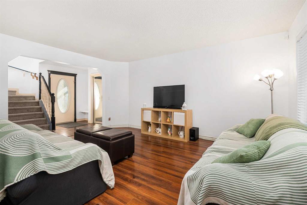 Step into a spacious entryway with a large front closet, leading into an open-concept layout with excellent sight lines throughout. Expansive windows fill the home with natural light, creating a bright and welcoming atmosphere. The kitchen features abundant cabinetry, a peninsula island with an eating bar and stainless steel appliances—including a fridge with ice and water dispenser. Enjoy views of the sunny west-facing backyard from the kitchen or dining area, complete with a 12×24 deck—perfect for entertaining, BBQs, or a kids’ play area. Convenient main floor laundry includes additional storage cabinets. Upstairs, two generously sized bedrooms share a full bathroom, while the spacious primary suite easily accommodates a king-sized bed and dressers. The primary suite also offers a walk-in closet and a full ensuite with a corner soaker tub and separate shower. The finished basement boasts a large recreation/projector TV room, a fourth bedroom, and a newer 3pce bathroom with walk in shower. Additional highlights include excellent storage, brand new carpet and paint. A full-width front driveway, and a double attached heated garage. This air-conditioned home is waiting for the new owners and perfect for families! close to Schools, Shopping and Transit