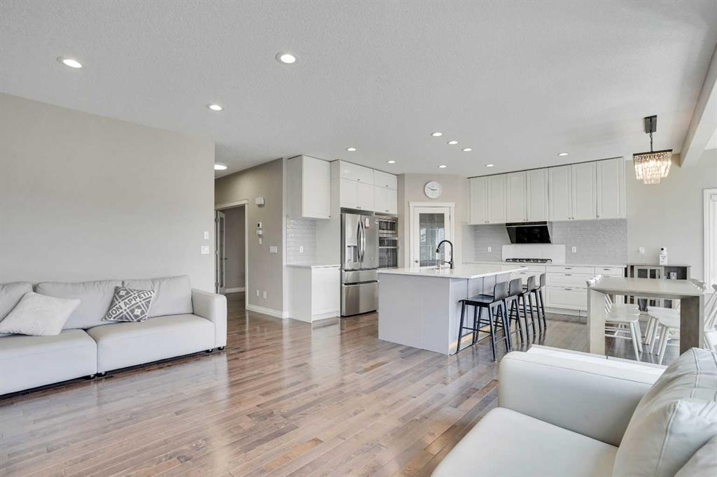 Great cozy home backing into a greenspace/park,custom built home with tons of upgrade is sure to impress!!You will be amazed by this fully finished 2-storey walkout (3931sft total living space) home which offers 4 beds, 4 baths & some of the best views of NW Calgary. Upgrades inclde: New roof/siding/gutter in 2025,new kitchen cabinet in 2023,new dishwasher,new dryer/washer, new microwave/gas stove and hood fan,new carpets in upper floor,new water softer system. The main floor offers 9 ft. knock down ceiling, hardwood flooring throughout, an office, great room and dinning area that opens up into your own sunny urban paradise. The chef-inspired kitchen is equipped with stainless steel appliances, quartz kitchen countertop that’s all about functionality, while still providing space to set out drinks and appetizers at the eating bar for your friends and family. The extra-large windows allow in bright natural light during the daytime and enough room for everyone to nestled up by the fireplace at night. Upper floor features the uniquely designed stairs, sunny bonus room and three spacious bedrooms. The master bedroom has more than enough room to easily fit a king-sized bed, bedside tables and a dresser and still have enough room to do your morning stretches, also has a walk-in closet and 5-piece ensuite includes quartz countertop, shower, large soaker tub and dual sinks. Fully finished walkout basement features a huge recreation room, another bedroom and a full bathroom. Fully fenced and landscaped, this home backs onto a green space so you can safety watch your kids play at park. Only few minutes walk to school. Close to established amenities, transit, shopping and major roads, this home provides the perfect environment for your family to grow.This is a 10/10 house you must see on the market now! call your favorite realtor to have a showing now!!!