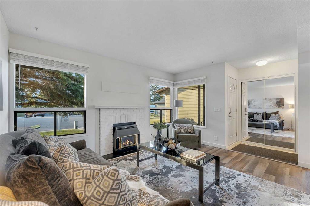 Tucked away on a peaceful cul-de-sac, this adorable duplex offers the perfect blend of privacy, charm, and location. Backing directly onto the pond, you can relax out back and enjoy the sound of the fountains while taking in the lush, mature trees that only a well-established neighbourhood can provide. The long, paved driveway offers ample parking and the potential to build a garage with the proper city permits, adding to the home’s value and functionality. Step inside to find fresh vinyl plank flooring, new carpet, and modern paint throughout. The cozy living room is anchored by a whitewashed brick gas fireplace, surrounded by corner windows that fill the space with natural light. A versatile nook provides the perfect space for a formal dining area or home office, while the eat-in kitchen is ideal for gathering, dining, and admiring the serene green space out back. And if you have kids or four-legged family members, you’ll love being just steps from community walking paths that wind through the neighbourhood. Upstairs, you’ll find two generously sized bedrooms and a spacious primary suite complete with a walk-in closet. A full bathroom on the second floor and a powder room on the main floor add to the convenience of this home, and the unfinished basement is ready for your equity-building ideas, offering endless potential to make this home truly your own. With its quiet location, scenic views, and thoughtful updates, this property is as functional as it is full of charm. This one won’t disappoint!