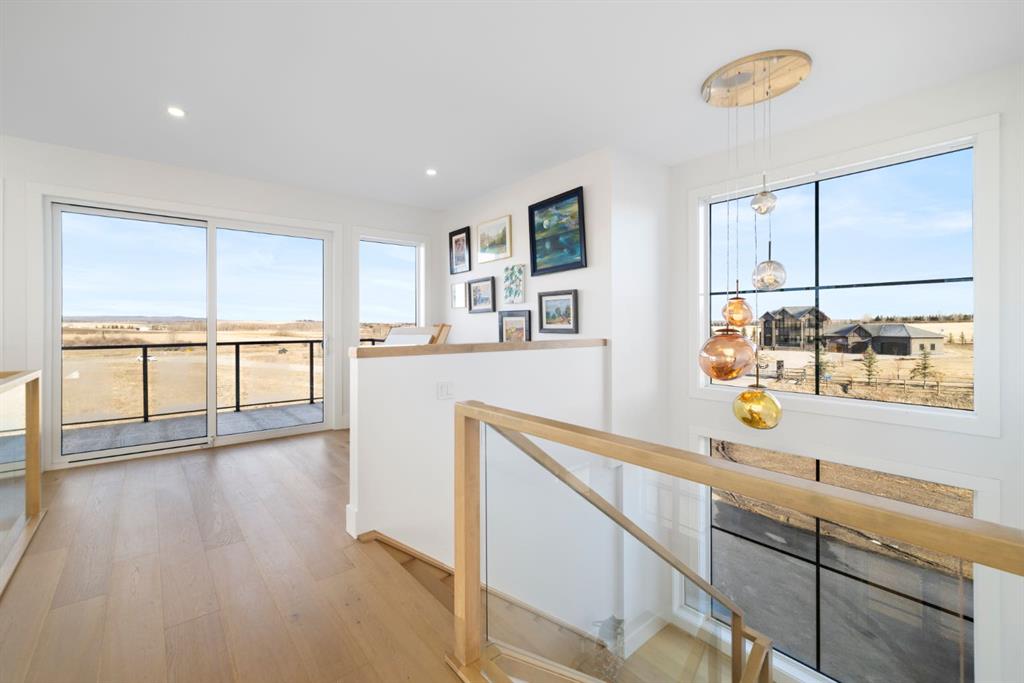 Experience the perfect balance of peaceful country living and city convenience with this stunning 2024-built home, ideally located just minutes outside Calgary’s city limits off 22X on the way to Priddis. Set on 2 acres in the rolling landscape of Foothills County, this property offers 3,804 sq ft of total developed living space across three levels, including a fully developed walkout basement suite, making it an exceptional opportunity for those seeking flexibility, multi-generational living, or rental potential. Designed to capture breathtaking 360-degree views from every room, the home showcases sweeping vistas of the surrounding hills and distant mountains, creating a true retreat-like setting.