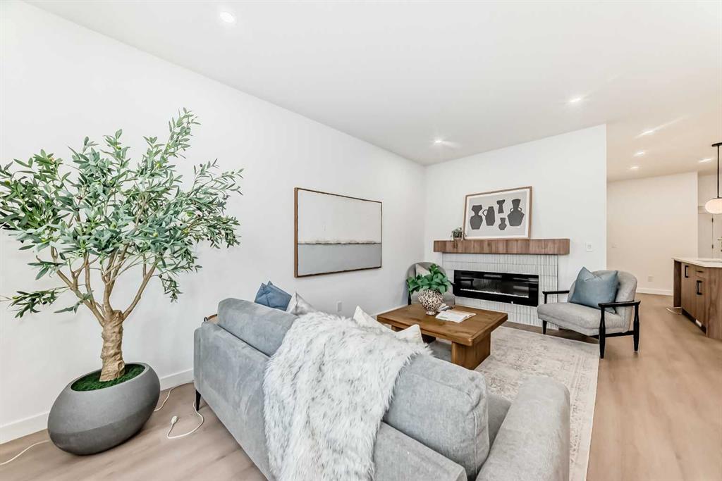 The open-concept main living area is bright and welcoming, featuring quartz countertops, modern finishes, and a cozy electric fireplace with mantel, creating the perfect space for family gatherings. Step outside to the private balcony, offering a comfortable outdoor space to enjoy the amazing Calgary summer nights.