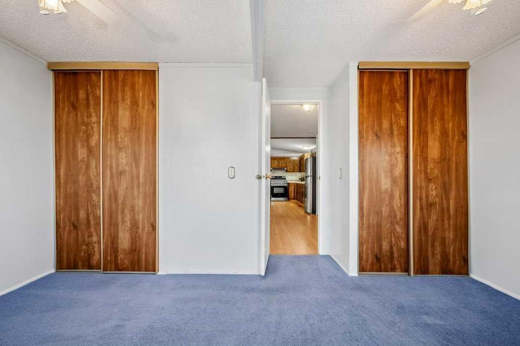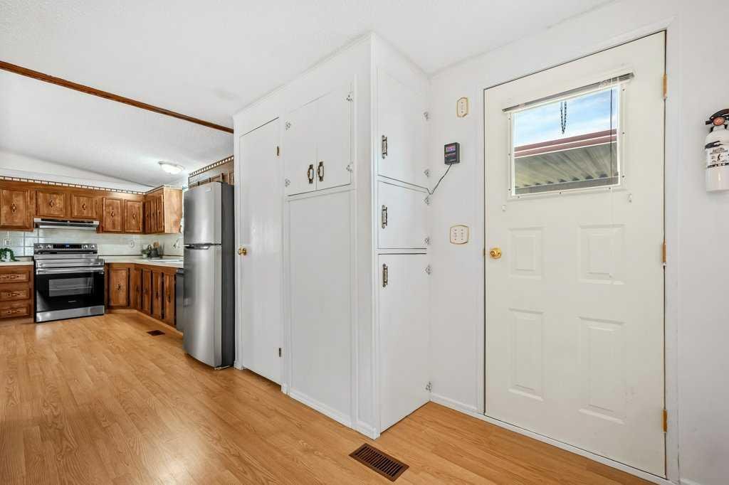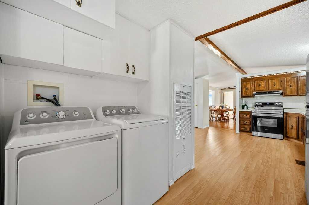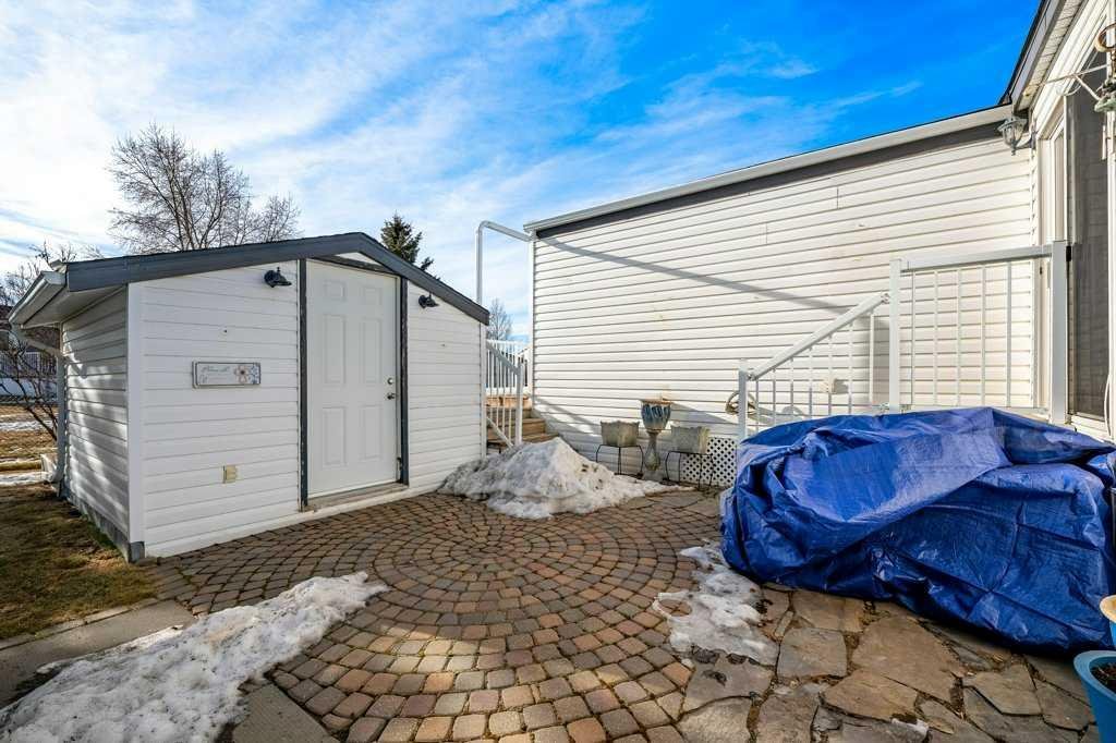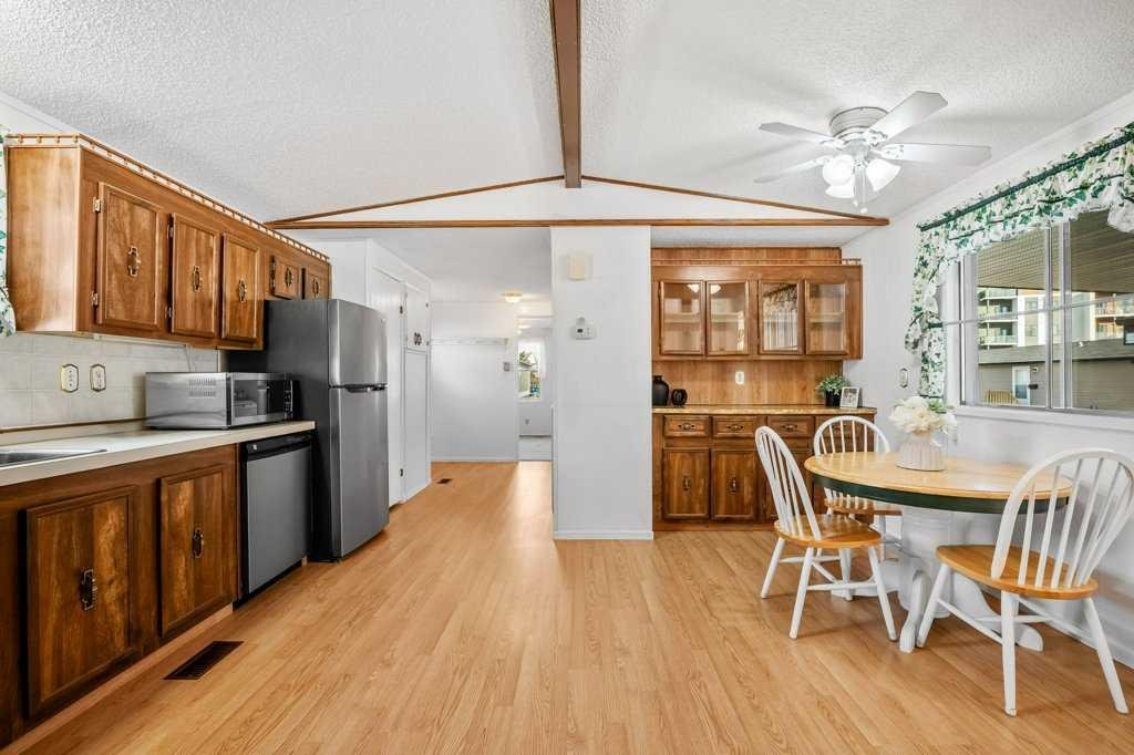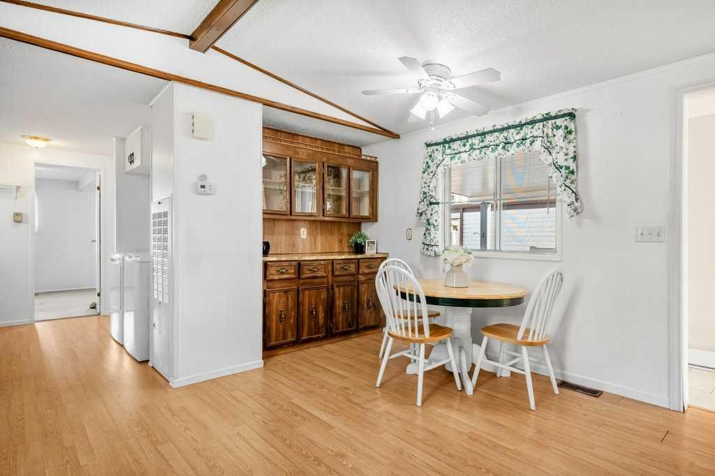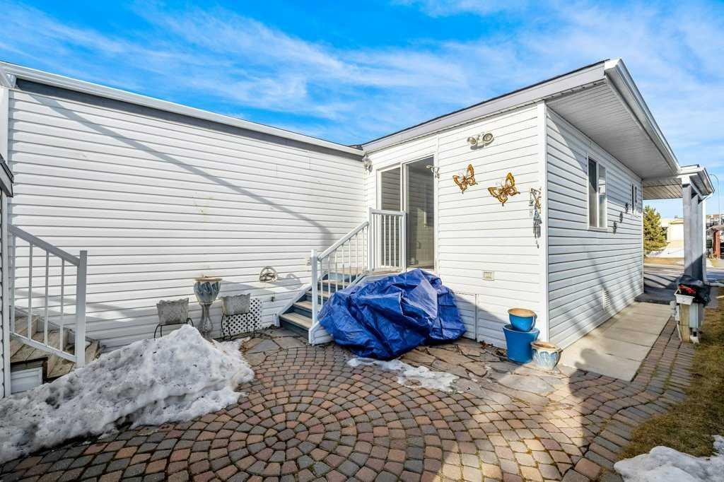 Welcome to this beautifully maintained and thoughtfully designed mobile home located in the highly desirable Westgrove Mobile Home Park, offering a true sense of pride of ownership in one of Northwest Calgary’s most established communities. This spacious home features 2 bedrooms and 2 bathrooms, including a private ensuite with a walk-in shower and patio access to the South facing back deck. An exceptionally functional layout with two large living rooms and two separate dining areas—perfect for both everyday living and entertaining. A dedicated storage/wine room/den adds even more versatility. The large addition expands the living space to make the total open living space over 1400 square feet and includes brand-new temperature-regulating baseboard heaters and a cozy electric fireplace with adjustable temperature control to set your comfort level without worry creating a comfortable retreat year-round. The home has been meticulously cared for and shows beautifully. Step outside to enjoy the sun-filled south-facing backyard, accessible from two separate doors, featuring a solid wood deck and a lower stone patio—ideal for relaxing, entertaining, or enjoying warm summer evenings. The large storage shed includes an additional refrigerator, perfect for beverages and entertaining. Parking is effortless with a covered carport and additional driveway space for two more vehicles. Significant recent upgrades include a brand-new roof and all new plumbing beneath the home, complete with a self-regulating heat tape system and dedicated system, offering peace of mind and protection from freezing—no winter worries here. Located just two doors from the clubhouse, residents enjoy convenient access to the pool, games room, and community amenities, enhancing the lifestyle appeal of this welcoming neighbourhood.