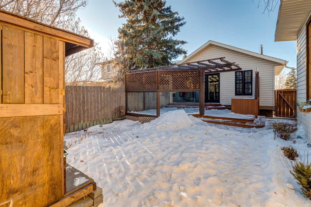 Fully developed bi-level perfectly situated in one of Airdrie’s most established communities, backing onto a green belt leading to a large park. This Bi-Level offers 1,850 SF of developed living space with 3 bedrooms, 1.5 bathrooms and is awaiting your personal touch. Greeted into a large foyer, the bright main floor features hardwood and tile flooring throughout, a well equipped kitchen with concrete countertops spacious, solid wood oak shelving, mosaic tile backsplash while opening to the spacious living and dining area. The over-sized primary bedroom showcases a walk in closet and gorgeous wood frame patio doors leading to your private yard with expansive deck and shed. A 5 piece bathroom completes this level. The basement is finished with a family room, two additional bedrooms, 2 piece bathroom, den, laundry room and an abundance of storage. Don’t overlook the off street parking in the front driveway with space to accommodate 2 vehicles. Nicely located in central Airdrie with easy access to shopping and an array of amenities as well as walking distance to numerous parks/playgrounds and Muriel Clayton Middle School. Don’t miss out on this incredible opportunity!