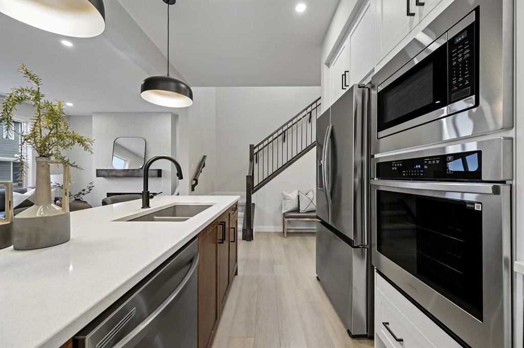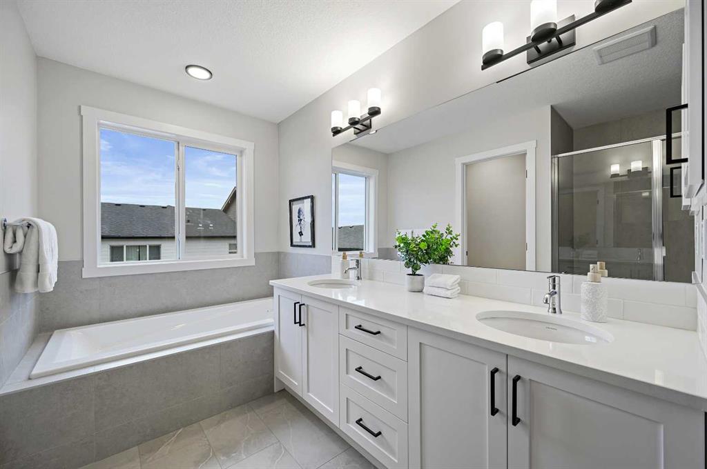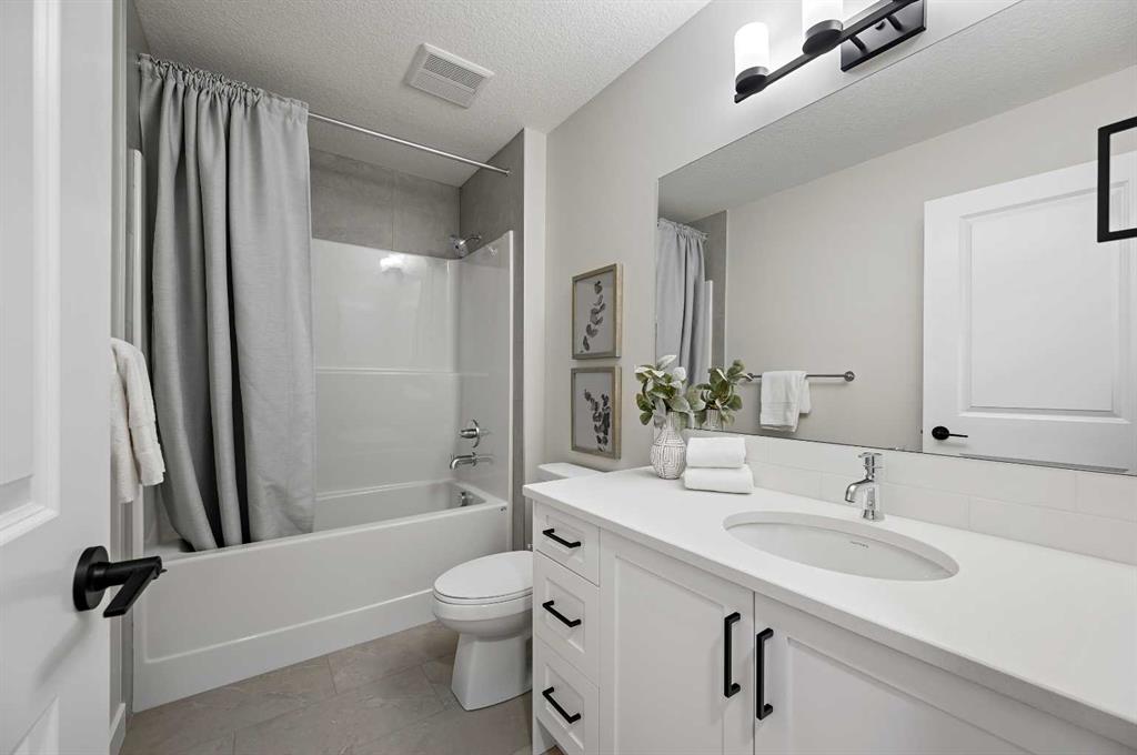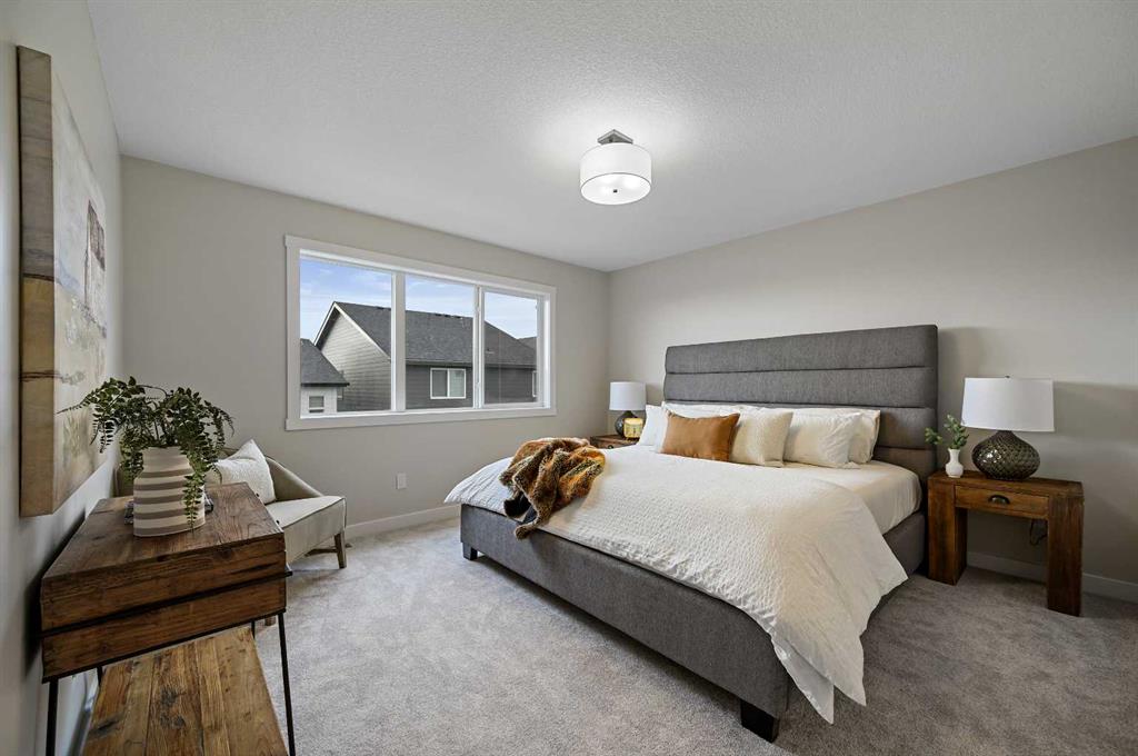 ** Genesis Builders Group presents the Leo II **| Brand New Home | 1,999 SqFt | 4 Bedrooms | 2.5 Bathrooms | Incredible Open Floor Plan | High Ceilings | Sparkling Kitchen | Full Height Cabinets | Stainless Steel Appliances | Gas Cooktop | Built-in Oven & Microwave | Kitchen Island with Barstool Seating Area | Walk-Through Pantry to Mudroom | Electric Fireplace | Recessed Lighting | Large Windows | Upper Level Bonus Room | Upper Level Laundry | Unfinished Basement | Separate Side Entry | Expansive Backyard | Pie Shaped Lot | Double Front Attached Garage | Smart Home. Welcome home to the Leo II built by Genesis Builders Group in the sought after new community of Vermilion Hill SW. This home is vast with living space, high ceilings and great natural light. The front door opens to a foyer with closet storage for a tidy space. The open floor plan kitchen, dining and living rooms makes this the premier home for entertaining friends and family. The fully loaded kitchen is outfitted with full height cabinets, sparkling countertops, stainless steel appliances, a gas cooktop, built-in microwave & oven, and a large centre island with barsool steaing space. The walk-through pantry connects your mud room off the interior garage door to the kitchen making grocery drops easy! Both the dining and living rooms are loaded with natural light as they’re framed with large windows. The door to the backyard is here too making indoor/outdoor living easy in the warm summer months! The main level is complete with a 2pc powder room. Upstairs holds 4 bedrooms, a bonus family room and walk-in laundry. The primary bedroom is a personal oasis with a spacious 5pc ensuite that leads into your walk-in closet. The ensuite has dual vanities, a deep soaking tub, walk-in shower and private washing closet. Bedrooms 2, 3 & 4 share the main 4pc bath with a tub/shower combo and extended single vanity with great storage below. The bonus family room is central on the upper level providing a plush and comfortable common area for the family to unwind in the evenings. The laundry room located upstairs is every home owner’s dream as its located near all the bedrooms! Downstairs, the unfinished basement is a blank canvas with a separate side entrance providing you with great future development opportunities! Additional highlights include 9 ft basement ceilings and rough-ins for added convenience. Located in the scenic community of Vermilion Hill, this home provides easy access to parks, pathways, green spaces, and major routes, offering the perfect balance of comfort, style, and connectivity. Quick possession is available, making this beautiful new home move-in ready for you to enjoy. Genesis Builders Group follows the First-Time Home Buyer GST/HST Rebate to eliminate the 5% GST on qualifying new homes (up to $1 million) for qualifying first time home buyers. Hurry and book your showing at this gorgeous Genesis home today!