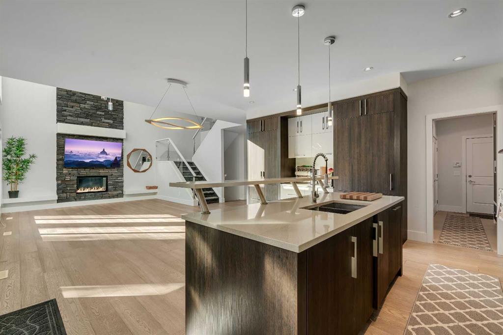 TRIPLE HEATED GARAGE | FULLY DEVELOPED BASEMENT | SOUTH BACKYARD WITH 100K LANDSCAPING PACKAGE | AIR CONDITIONING | CUL-DE-SAC | Welcome to this stunning Truman-built luxury home in the heart of West Springs, showcasing over 3,800 sq. ft. of beautifully designed living space with soaring ceilings, wide plank hardwood, and exceptional natural light throughout. The main level features a grand entryway that opens to an impressive living area with 18-foot ceilings and full-height south-facing windows anchored by a stone fireplace, creating a warm and inviting atmosphere year-round. The contemporary kitchen offers a perfect blend of function and style with quartz countertops, custom cabinetry, Bosch stainless steel appliances including a gas cooktop and built-in wall oven, a large island with wine fridge, and a spacious walk-in pantry connected to the mudroom with built-in lockers and direct access to the triple attached garage. A private office and stylish powder room complete this level, ideal for anyone needing a dedicated home workspace. Upstairs, glass railings and vaulted ceilings enhance the open feel, leading to a large bonus room ideal for a home theatre, studio, or kids play area. The primary suite features a five-piece spa-inspired ensuite with dual vanities, a freestanding soaker tub, a custom tiled shower with built-in bench, and a massive walk-in closet with direct access to the sizable laundry room with sink. Two additional bedrooms, each with vaulted ceilings and ample closet space, share a well-appointed five-piece bathroom. The fully developed lower level adds a beautiful extension of the home with a dedicated gym space, a spacious theatre and recreation room, a wet bar with beverage fridge, a bedroom, and a full bathroom. Additional highlights include air conditioning, full CAT5e wiring, irrigation, exposed aggregate driveway and patios, and a finished heated garage with epoxy floors. Tired of three-putting for bogey? Want to impress your friends and family? This is the yard for you. Featuring a custom putting green that lets you work on your game year-round, the south-facing backyard offers a private retreat with an aggregate patio, professional landscaping, and a massive three-season covered patio with built-in hot tub and space to host gatherings with friends and family. Truly a one-of-a-kind backyard that will make you the envy of the neighbourhood. Situated in a quiet cul-de-sac and within walking distance to parks, pathways, Calgary’s top-rated schools, public transit, and the shops and restaurants of West 85th, this home combines elegance, comfort, and convenience in one of Calgary’s most sought-after communities. Please reach out today for a private showing.