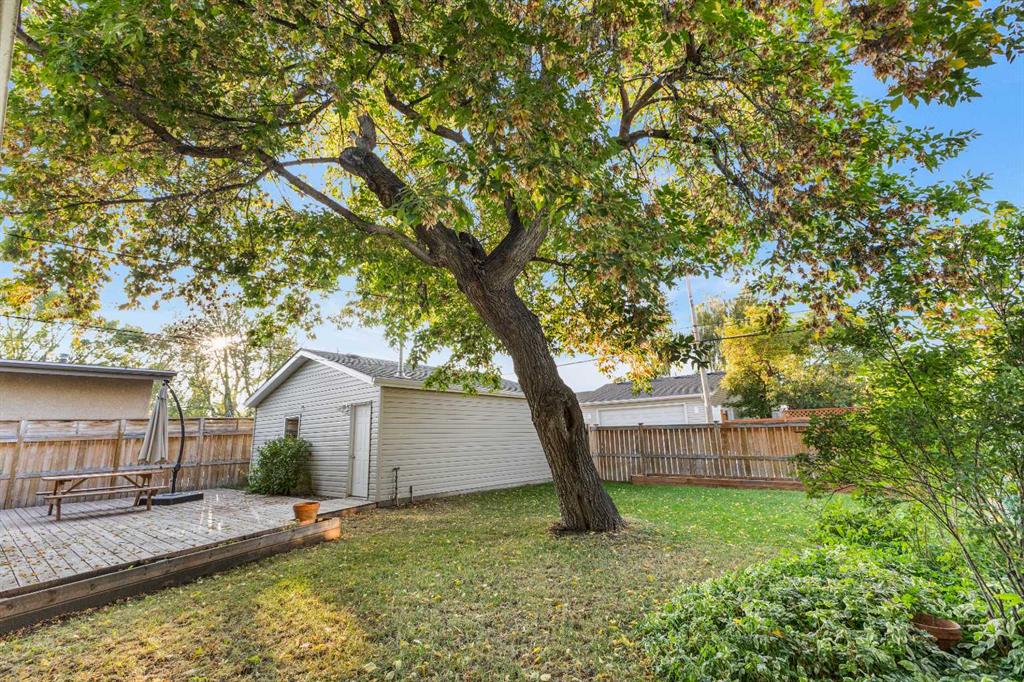 Outside, the large sunny backyard offers a great deck, mature trees, and access to the heated, oversized double detached garage — a dream setup for hobbyists or car lovers. Additional perks include newer central A/C and thoughtful updates throughout.