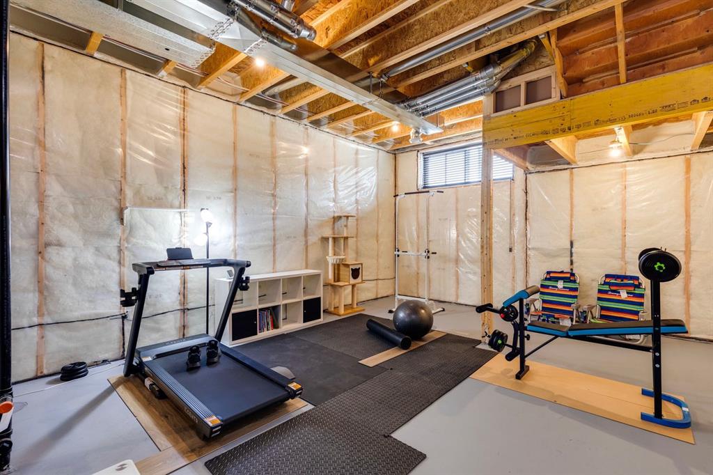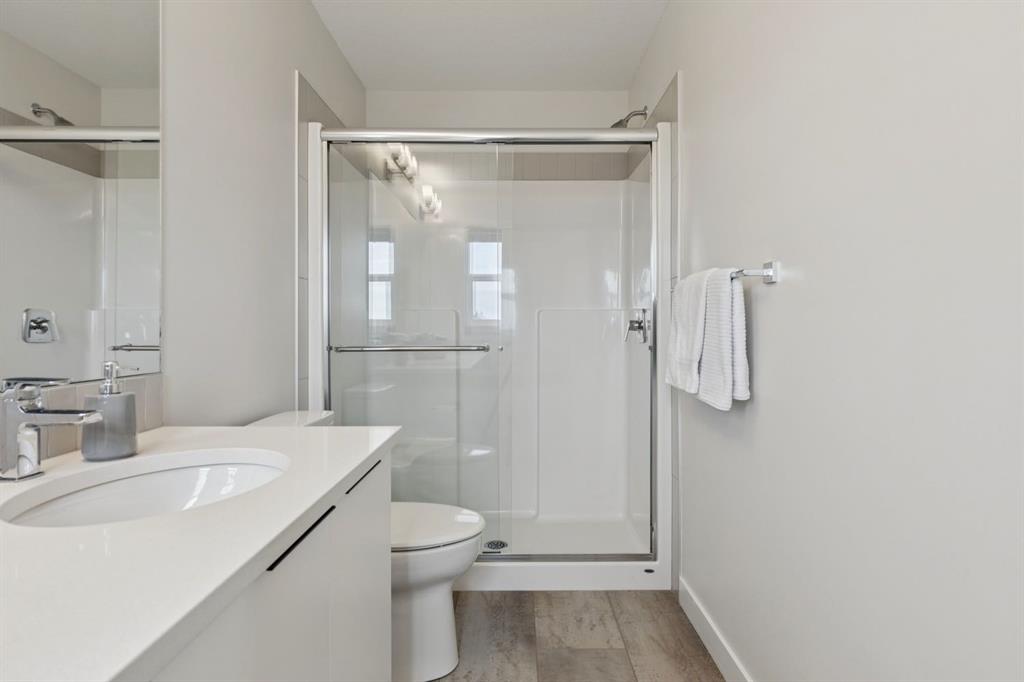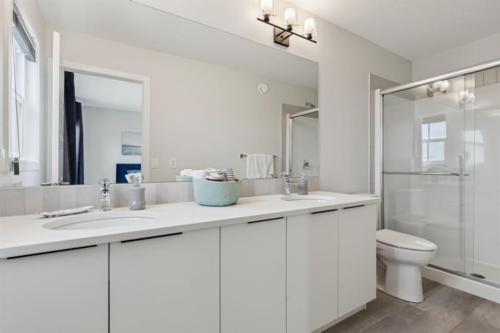 four-piece ensuite—all finished with quartz countertops. The basement also