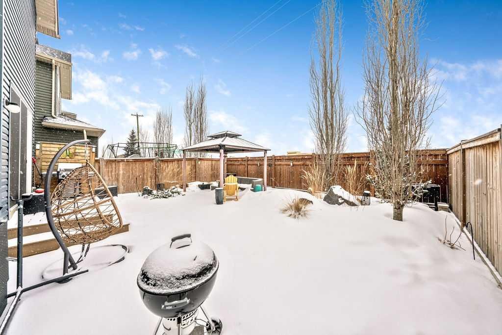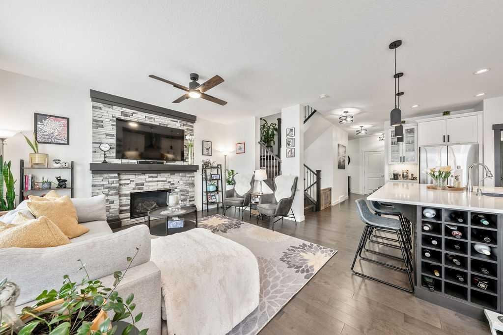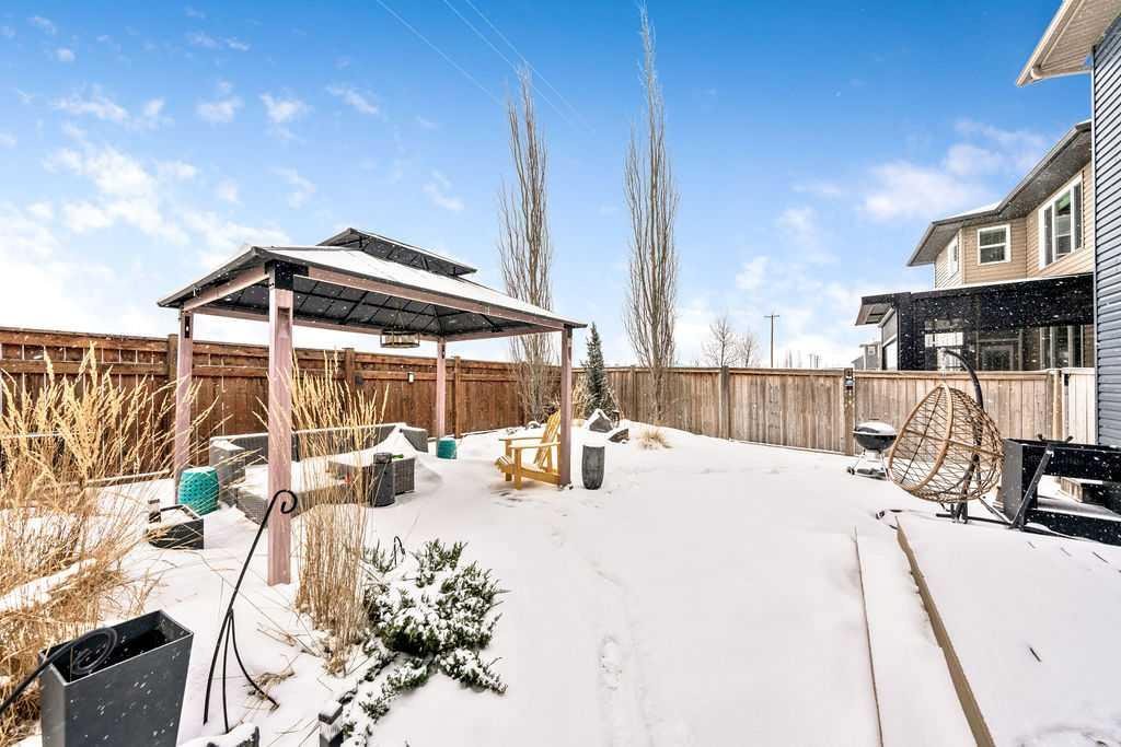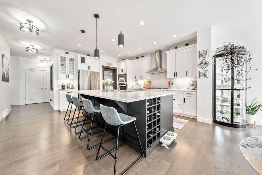 What an amazing opportunity to get into this beautifully upgraded Sterling Homes 5 bedroom home offering over 2,400 sq ft above grade plus a professionally developed basement, all set on a thoughtfully landscaped and fully fenced lot. From the moment you enter, you’ll appreciate the spacious front foyer with ceramic tile flooring transitioning into rich hardwood throughout the main level. The open-concept design features a stunning white executive kitchen complete with quartz countertops, a large central island with beverage fridge, built-in oven and microwave, gas cooktop, under-cabinet lighting, newer refrigerator with beverage center (replaced 2 years ago), and dishwasher (replaced 3 years ago), flowing seamlessly into the dining area with dimmer lighting and the inviting great room anchored by a floor-to-ceiling stone gas fireplace. A main floor den provides the perfect home office or flex space. Upstairs offers four generous bedrooms and a spacious vaulted bonus room, along with the convenience of an upper-level laundry room. The primary retreat features a huge wrap-around walk-in closet with motion-sensor lighting and a luxurious 5-piece ensuite complete with a tile shower and dual vanities, while an additional 5-piece main bath comfortably serves the remaining bedrooms. The professionally developed basement expands the living space with a spacious family room, additional bedroom, 4-piece bathroom, and a large storage room with barn door detail, plus a puppy/child gate at the top of the stairs for added convenience. Additional upgrades include air conditioning, water softener, motion-sensor lighting in the garage, mudroom, powder room, laundry room and primary closet, and permanent trim light exterior lighting for year-round curb appeal. The backyard is designed for both relaxation and entertaining, featuring a large deck, permanent gazebo with seating area, mature trees, ornamental grasses, rock accents, and multiple defined outdoor living spaces that offer privacy and charm in every season. A truly move-in-ready home in one of Okotoks’ most desirable communities. Summer photos of backyard included. Please be sure to check out the tour for a virtual walk through of this amazing home!