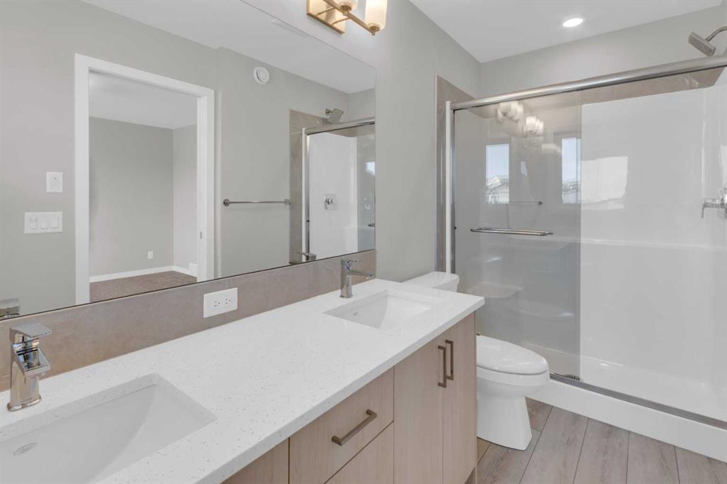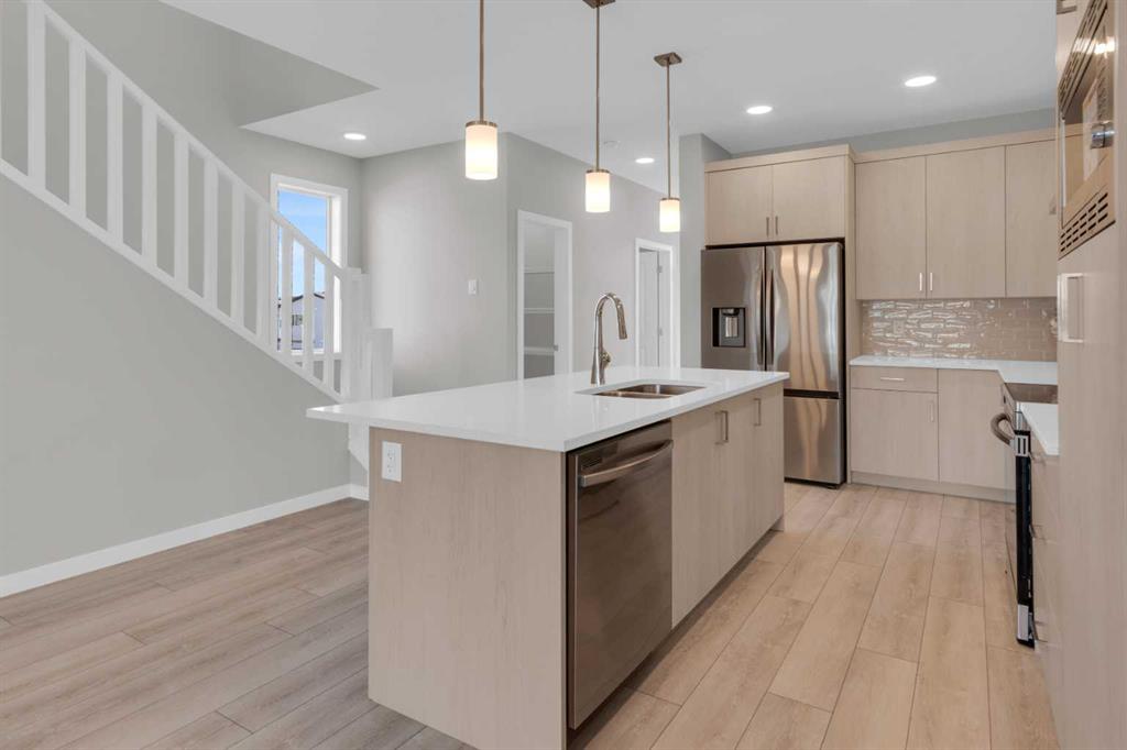 Introducing the COHEN: an amazing, BRAND NEW attached home by EXCEL HOMES offering 1748 SF above grade with a FULLY DEVELOPED, LEGAL SUITE, W/SEPARATE ENTRANCE, TWO BEDROOMS, TWO BATHROOMS AND FULL KITCHEN. Nestled in the vibrant Northeast community of Livingston. Step into a life of luxury and convenience with this stunning residence, where every detail has been meticulously crafted for comfort and style. Enjoy the benefits of living in an established neighborhood that brings a plethora of amenities right to your doorstep, along with swift access to major highways. The COHEN offers a sprawling 1748 square feet of thoughtfully designed living space, perfect for both families and entertaining. The open floor plan, complemented by neutral designer tones, creates a welcoming atmosphere that is both elegant and comfortable. The chef-quality kitchen stands as the heart of the home, equipped with ceiling-height cabinets, two banks of pot/pan drawers, and upgraded stainless steel appliances, including chimney fan, and built-in microwave. The expansive engineered stone countertops, a large island with seating, and a convenient pantry make it a dream kitchen for those who love to cook and entertain. The main floor also features versatile luxury vinyl plank flooring On the main floor you’ll also find a FLEX ROOM that can be used as a home office, guest bedroom or playroom. and half bath for convenience.. Ascend to the second level where leisure meets luxury in the large central bonus room featuring vaulted ceilings & pot lighting — ideal for movie nights and family gatherings. The primary bedroom is a true retreat, boasting a walk-in closet and a spa-like 4 Pce ensuite with dual sinks, double wide shower & stone vanity tops. Additionally, two more generously sized bedrooms provide ample space and easy access to the main bathroom. The convenience continues with a laundry room strategically located on the same floor. The possibilities extend into the FULLY DEVELOPED basement – SEPERATE SIDE ENTRY to your LEGAL TWO BEDROOM / TWO BATHROOM BASEMENT SUITE WITH FULL APPLANCE PACKAGE. Your suite is built to upstairs standards & offers TWO bedrooms, TWO FULL BATHS, full kitchen w/lots of storage cabinets, SS appliances, PRIVATE LAUNDRY, vinyl plank flooring. Step outside to a southeast-facing backyard that’s perfect for relaxation and outdoor activities & your deck is already built. Don’t miss the chance to own this never-lived-in gem with quick possession available. Experience the blend of luxury, comfort, and convenience in Livingston—welcome to your new dream home at the COHEN. This home will include front & back yard sod and a 20×20 gravel parking pad. Also includes complete interior sprinkler system to main and upper floors! There is also a gas line to the bbq at the rear. With over 35 years of experience, more than 15,000 homes built, and 75 awards for design and industry excellence, Excel Homes continues to deliver quality, innovation, and peace of mind