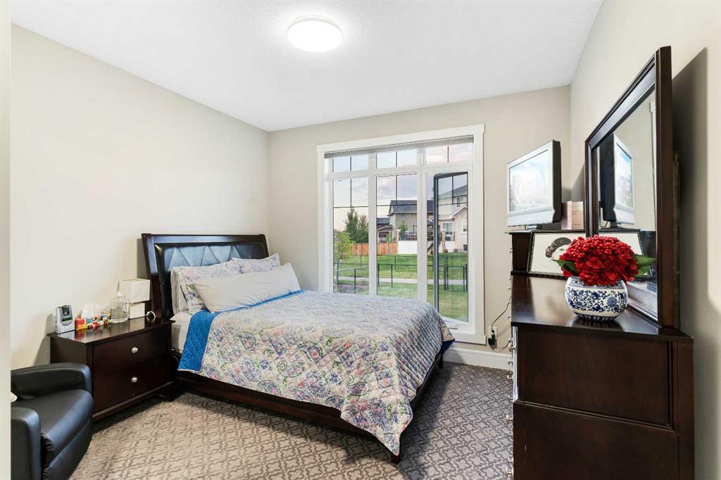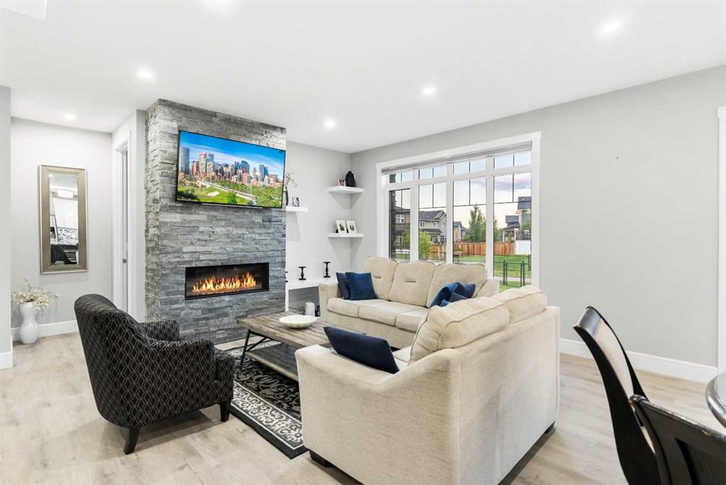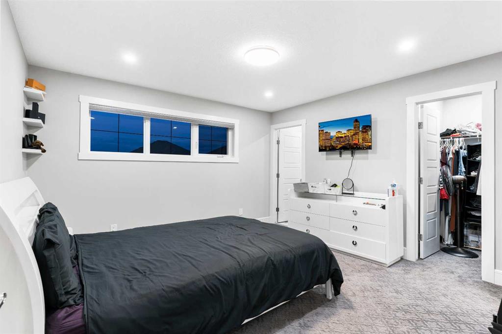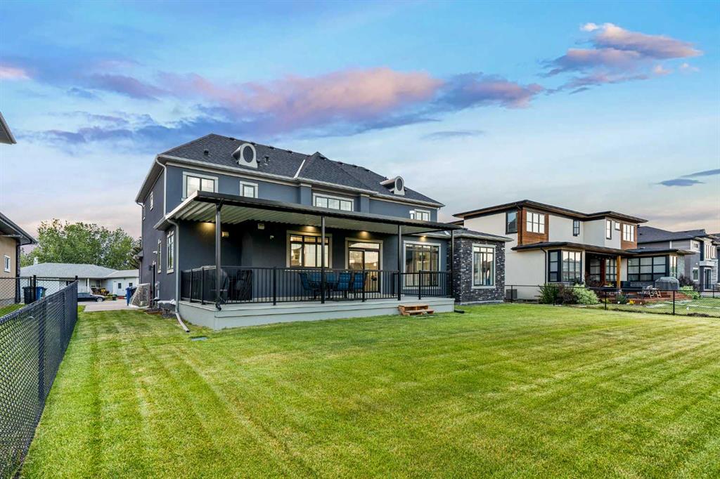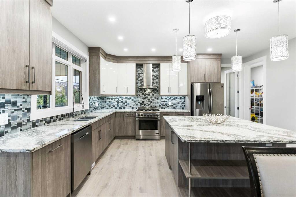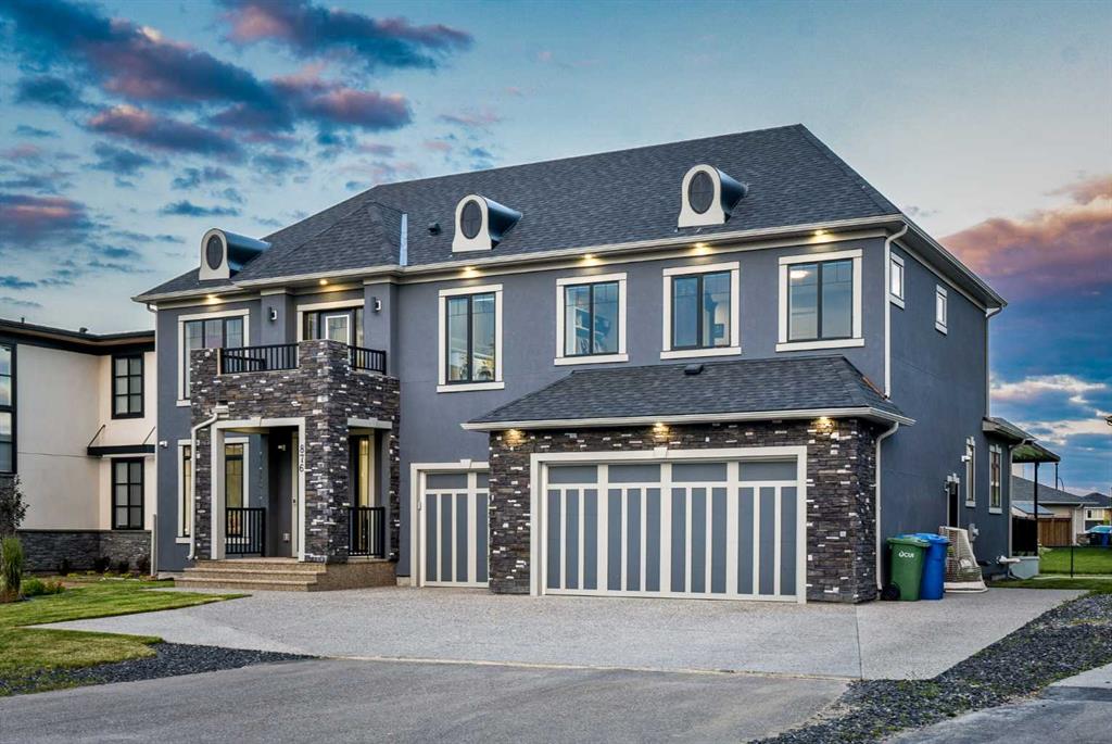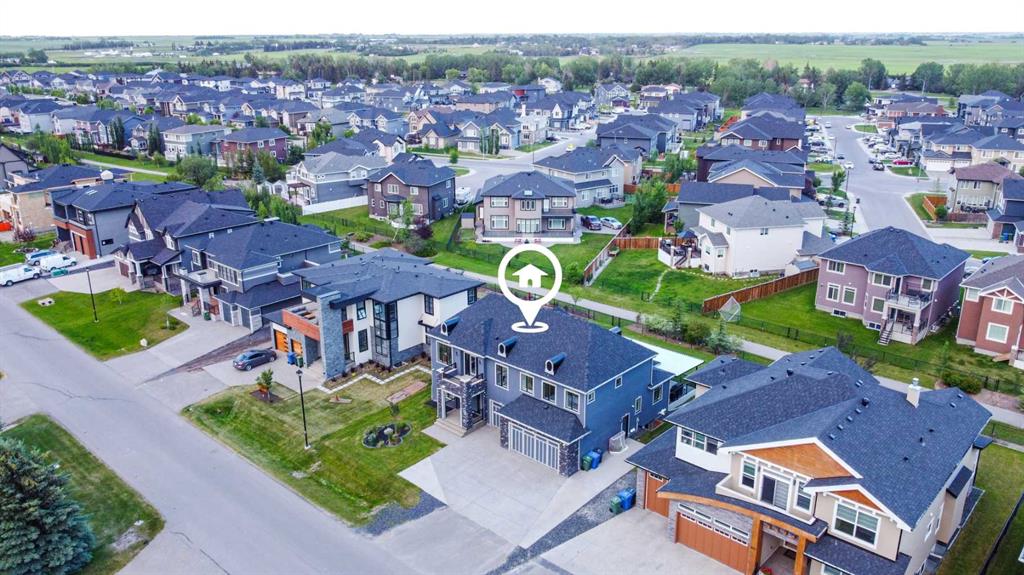 LOCATED on A MASSIVE ESTATE LOT (75ft x 122 ft)! 5 ENSUITES! BEDROOM AND FULL BATH ON MAIN LEVEL! EVERY BEDROOM HAS A W.I.C! COVERED DECK! GORGEOUS BACKYARD! BALCONY WITH LAKE VIEWS! EXTENDED DRIVEWAY! This modern marvel stands out with its combination of dark stone and greyish blue stucco exterior! Offering just under 5100 SQ FT of Quality Luxurious Living Space with 7 Bedrooms, 7 Baths (6 FULL bath and 1 half bath) and Attached Triple Garage! Spacious and functional Open Floorplan Concept. The main floor offers a living room, dining, family room with fireplace, breakfast nook with access to your COVERED DECK and half bath. The kitchen is chef’s dream; fully equipped with Quartz Countertops, Stainless Steel Appliances, Kitchen Island, Huge Pantry and SPICE KITCHEN! Another awesome feature on the main level is the BEDROOM WITH ITS OWN ENSUITE! Perfect for families with older individuals. Now make your way to the upper level, featuring a bonus room, FULL bath and 4 bedrooms. Of the 4 bedrooms, 2 are masters with their own ensuites. The grand master however boasts a 5 PC ensuite and a W.I.C fit for a King and Queen! You can access your BALCONY WITH LAKE VIEWS from the bonus room. The laundry feature is conveniently located on the upper level. This home still has more to offer. The FULLY FINISHED BASEMENT WITH SEPARATE ENTRANCE is an amazing place to chill and hangout. Featuring a rec room with WET BAR and 2 bedrooms with ensuites! In addition to this, the basement is roughed-in and setup to be an illegal suite! Moving on to the exterior of the home, you have an extended driveway as well as a large backyard that is spacious and gorgeous! Low maintenance landscape as well! This home is just a stone’s throw from Chestermere Lake and has easy access to all the amenities you need! GREAT VALUE! AMAZING LOCATION! HUGE LOT! QUALITY BUILD!