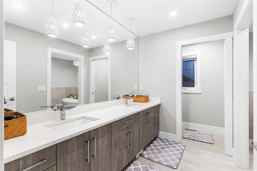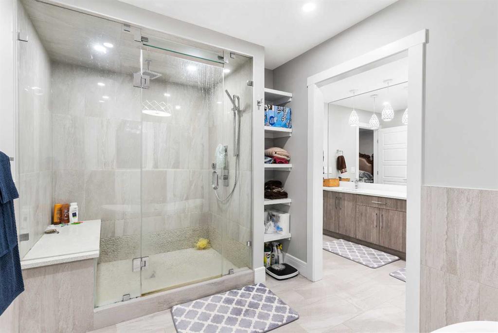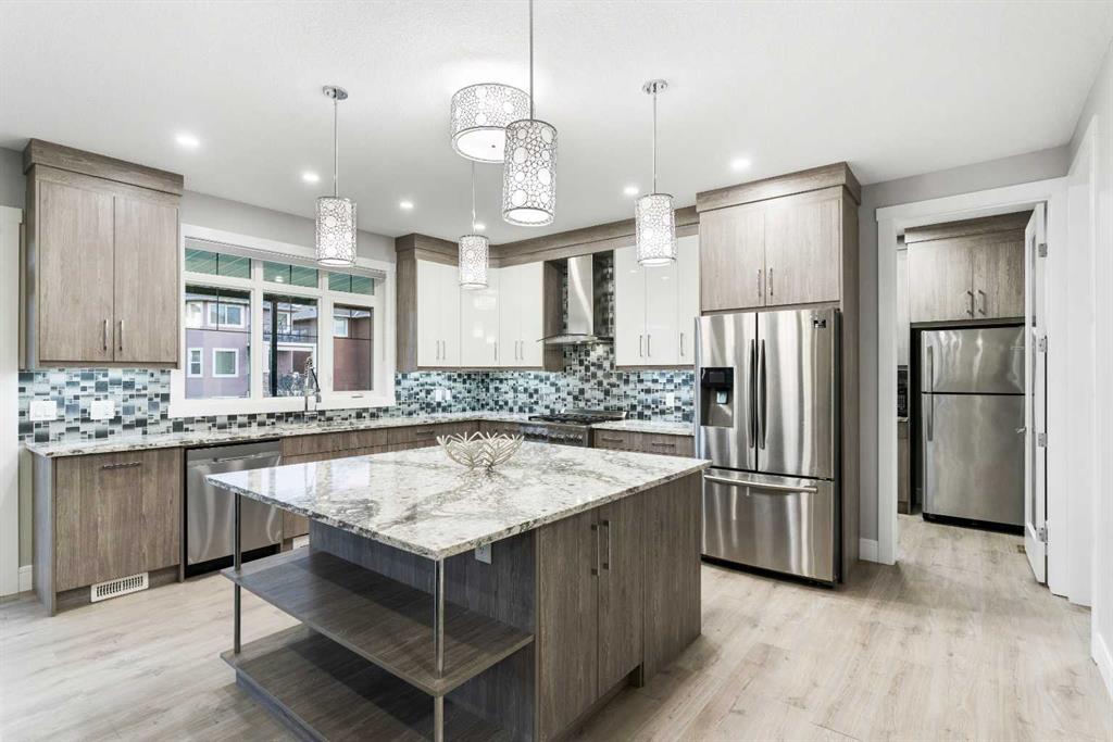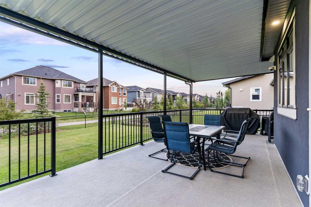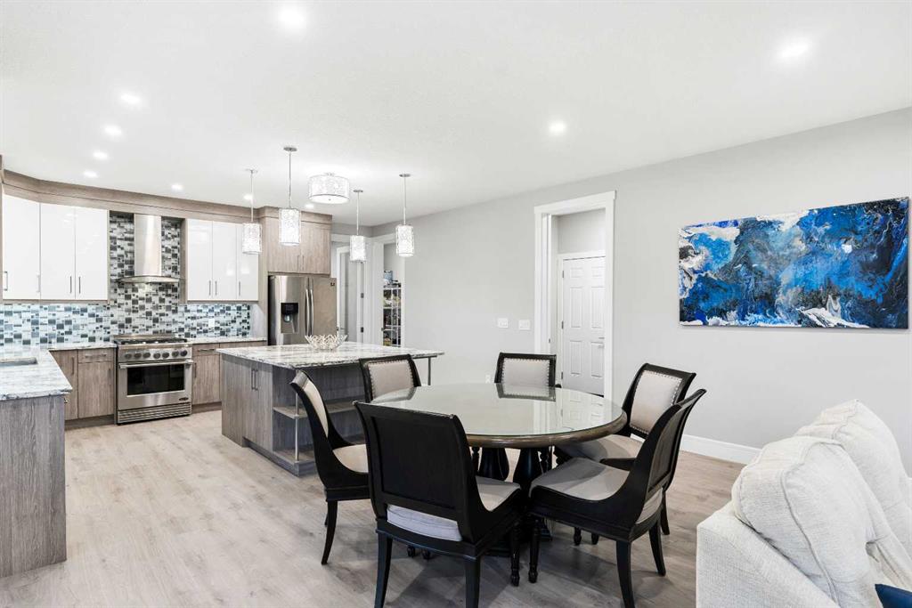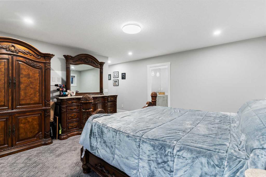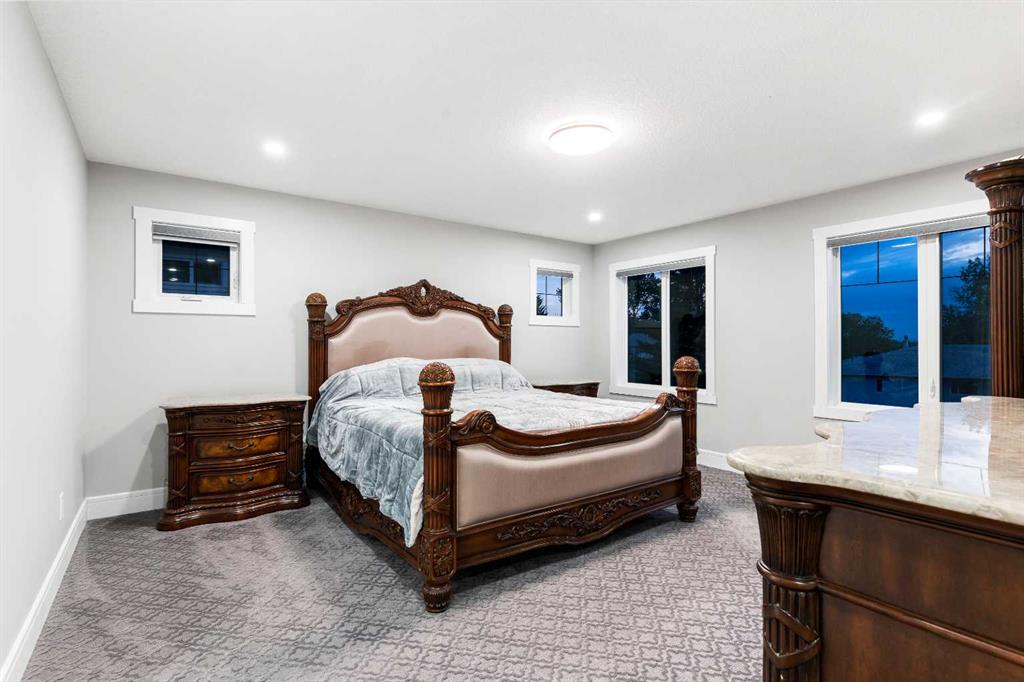 LOCATED on A MASSIVE ESTATE LOT (75ft x 122 ft)! 5 ENSUITES! BEDROOM AND FULL BATH ON MAIN LEVEL! EVERY BEDROOM HAS A W.I.C! COVERED DECK! GORGEOUS BACKYARD! BALCONY WITH LAKE VIEWS! EXTENDED DRIVEWAY! This modern marvel stands out with its combination of dark stone and greyish blue stucco exterior! Offering just under 5100 SQ FT of Quality Luxurious Living Space with 7 Bedrooms, 7 Baths (6 FULL bath and 1 half bath) and Attached Triple Garage! Spacious and functional Open Floorplan Concept. The main floor offers a living room, dining, family room with fireplace, breakfast nook with access to your COVERED DECK and half bath. The kitchen is chef’s dream; fully equipped with Quartz Countertops, Stainless Steel Appliances, Kitchen Island, Huge Pantry and SPICE KITCHEN! Another awesome feature on the main level is the BEDROOM WITH ITS OWN ENSUITE! Perfect for families with older individuals. Now make your way to the upper level, featuring a bonus room, FULL bath and 4 bedrooms. Of the 4 bedrooms, 2 are masters with their own ensuites. The grand master however boasts a 5 PC ensuite and a W.I.C fit for a King and Queen! You can access your BALCONY WITH LAKE VIEWS from the bonus room. The laundry feature is conveniently located on the upper level. This home still has more to offer. The FULLY FINISHED BASEMENT WITH SEPARATE ENTRANCE is an amazing place to chill and hangout. Featuring a rec room with WET BAR and 2 bedrooms with ensuites! In addition to this, the basement is roughed-in and setup to be an illegal suite! Moving on to the exterior of the home, you have an extended driveway as well as a large backyard that is spacious and gorgeous! Low maintenance landscape as well! This home is just a stone’s throw from Chestermere Lake and has easy access to all the amenities you need! GREAT VALUE! AMAZING LOCATION! HUGE LOT! QUALITY BUILD!