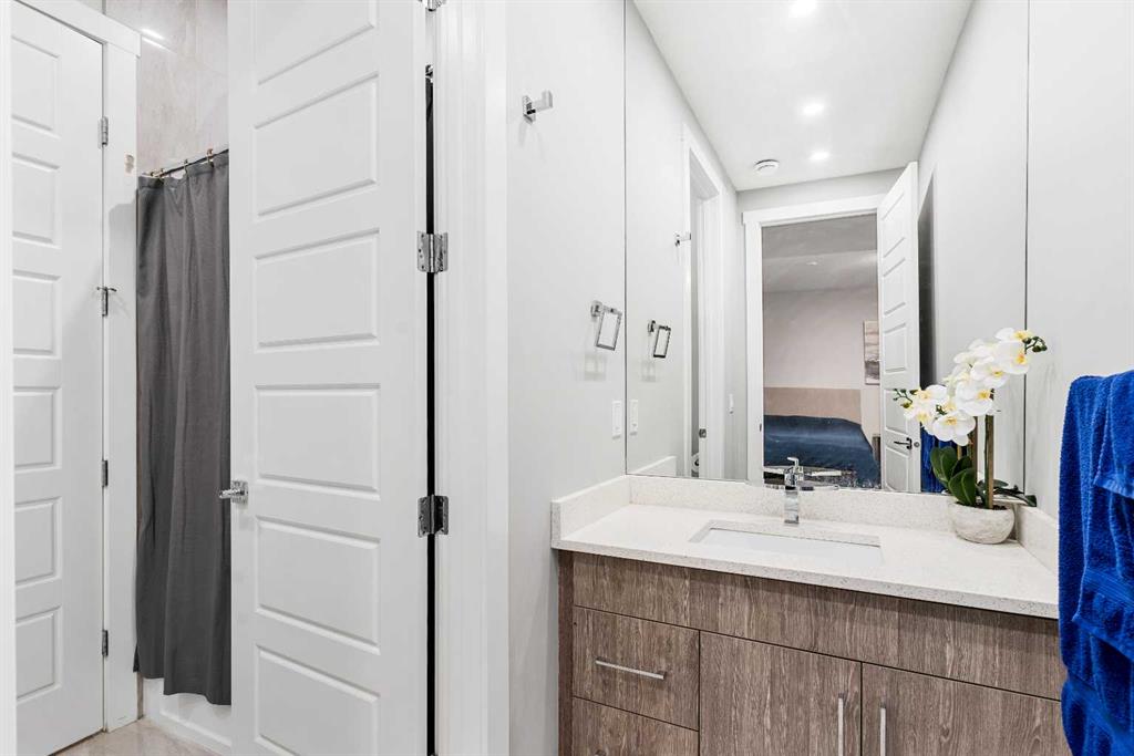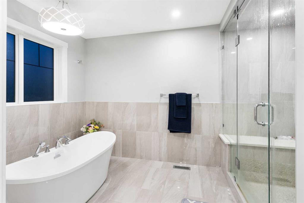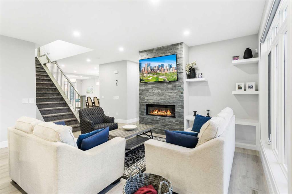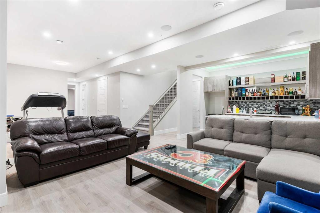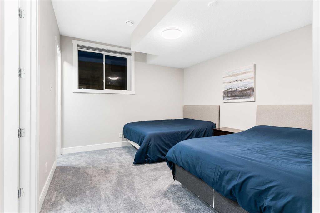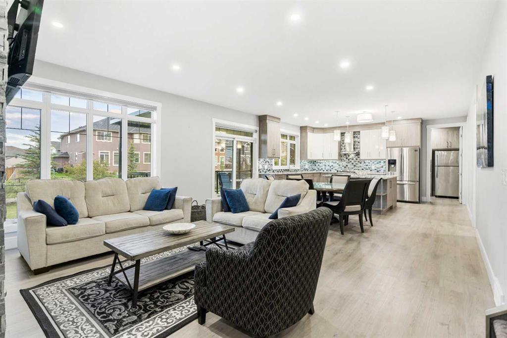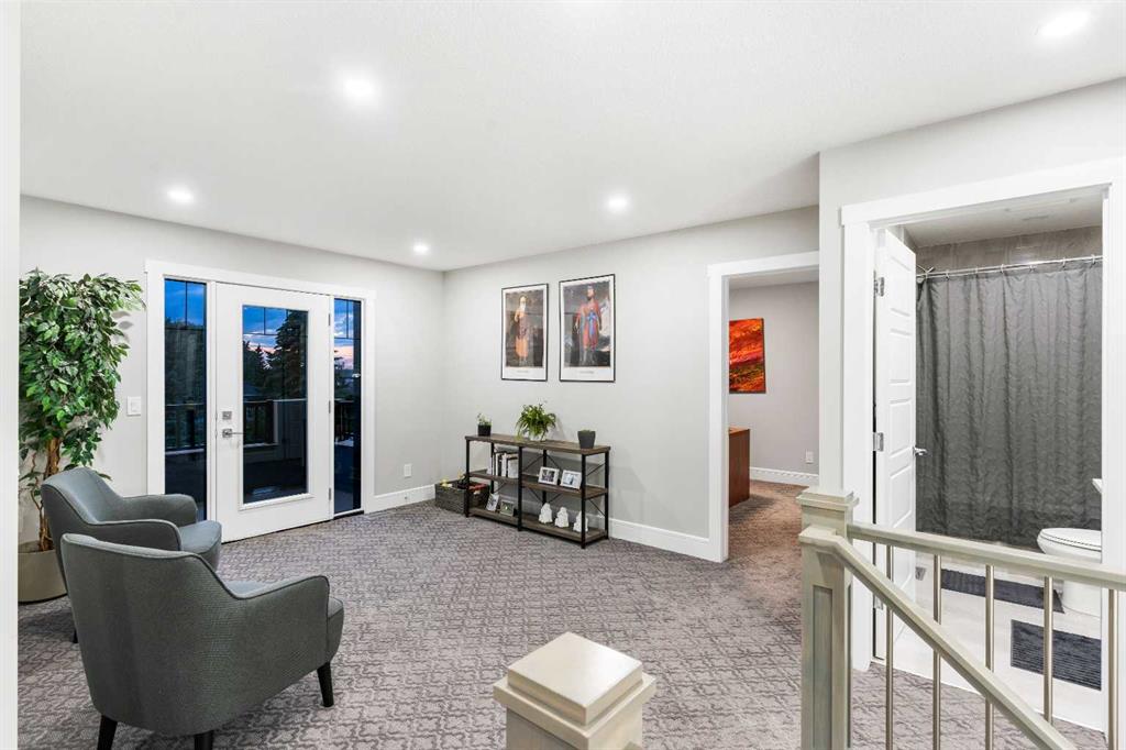 LOCATED on A MASSIVE ESTATE LOT (75ft x 122 ft)! 5 ENSUITES! BEDROOM AND FULL BATH ON MAIN LEVEL! EVERY BEDROOM HAS A W.I.C! COVERED DECK! GORGEOUS BACKYARD! BALCONY WITH LAKE VIEWS! EXTENDED DRIVEWAY! This modern marvel stands out with its combination of dark stone and greyish blue stucco exterior! Offering just under 5100 SQ FT of Quality Luxurious Living Space with 7 Bedrooms, 7 Baths (6 FULL bath and 1 half bath) and Attached Triple Garage! Spacious and functional Open Floorplan Concept. The main floor offers a living room, dining, family room with fireplace, breakfast nook with access to your COVERED DECK and half bath. The kitchen is chef’s dream; fully equipped with Quartz Countertops, Stainless Steel Appliances, Kitchen Island, Huge Pantry and SPICE KITCHEN! Another awesome feature on the main level is the BEDROOM WITH ITS OWN ENSUITE! Perfect for families with older individuals. Now make your way to the upper level, featuring a bonus room, FULL bath and 4 bedrooms. Of the 4 bedrooms, 2 are masters with their own ensuites. The grand master however boasts a 5 PC ensuite and a W.I.C fit for a King and Queen! You can access your BALCONY WITH LAKE VIEWS from the bonus room. The laundry feature is conveniently located on the upper level. This home still has more to offer. The FULLY FINISHED BASEMENT WITH SEPARATE ENTRANCE is an amazing place to chill and hangout. Featuring a rec room with WET BAR and 2 bedrooms with ensuites! In addition to this, the basement is roughed-in and setup to be an illegal suite! Moving on to the exterior of the home, you have an extended driveway as well as a large backyard that is spacious and gorgeous! Low maintenance landscape as well! This home is just a stone’s throw from Chestermere Lake and has easy access to all the amenities you need! GREAT VALUE! AMAZING LOCATION! HUGE LOT! QUALITY BUILD!