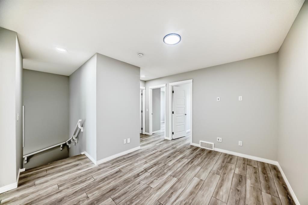 chef-inspired kitchen with a stunning center island, stainless steel appliances, and a large pantry. Beautiful cabinetry with clean, modern look. Stainless steel appliances for a stylish touch. Large pantry for all your storage needs Bright, wide window flooding the space with natural light. Upper-Level Comfort- 3 spacious bedrooms + a versatile bonus room, Primary room with a 3-piece ensuite & walk-in closet. Additional common bath for convenience. Unfinished Basement – Endless Potential! 9-ft ceilings for a spacious feel, Separate exterior entrance. Two egress-sized windows for natural light & safety. Rough-ins for a future bathroom – customize to your needs. Prime Location & Unbeatable Convenience! Steps from playgrounds, shopping & the new Chalo FreshCo Plaza. 5 minutes to CrossIron Mills Mall. 10 minutes to Calgary International Airport. Quick access to Deerfoot & Stoney Trail – easy commuting! This gem won’t last long! Book your private showing today!